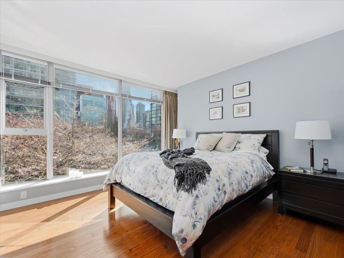 Set among Japanese maple and flowering cherry trees, this rarely available air-conditioned NE corner '02' residence offers Coal Harbour marina and mountain views, along with an oversized 144 sq ft balcony. Floor-to-ceiling windows fill the home with natural light, creating a bright and inviting space. Exceptionally maintained and tastefully updated with engineered hardwood flooring, designer paint, smart-home features, and premium Miele appliances including cooktop, oven, and dishwasher. Located in the cove...