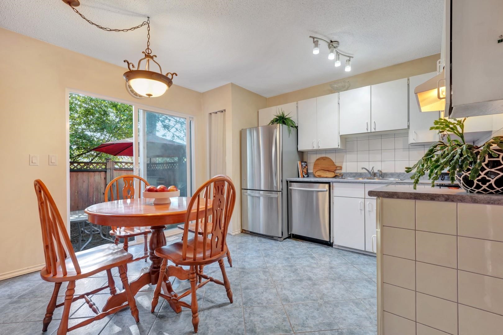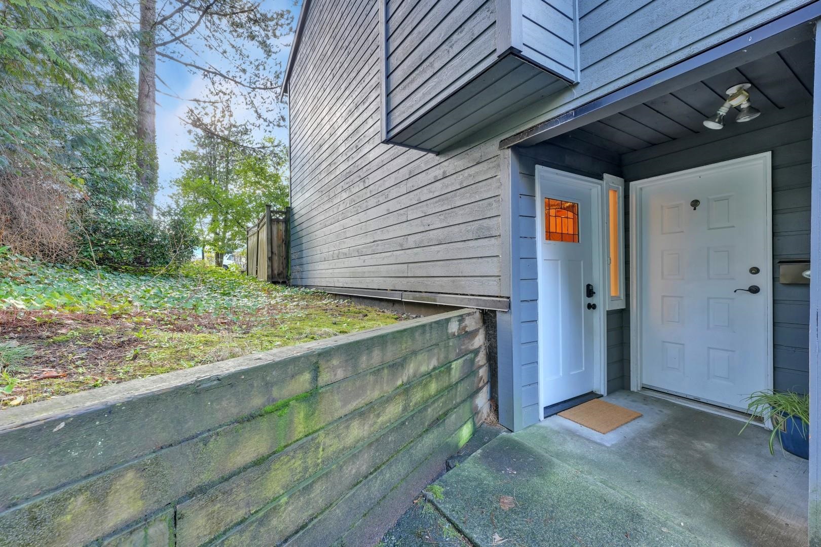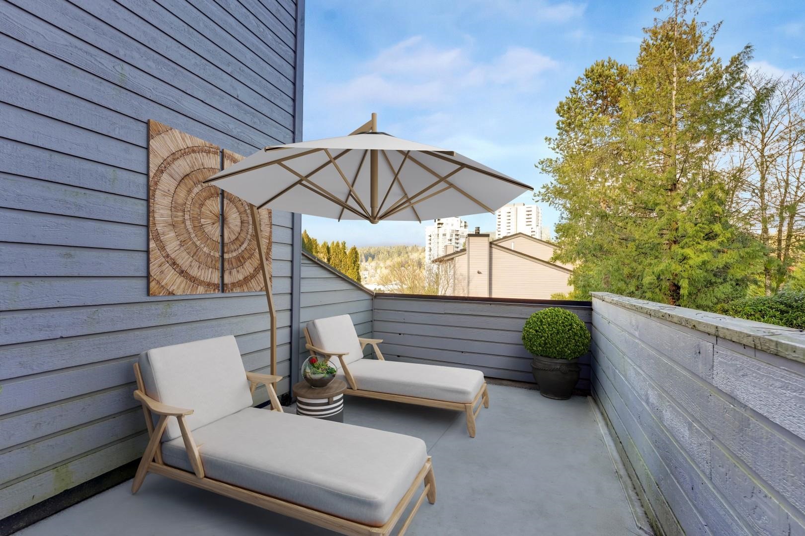 Beautiful END UNIT Townhouse with separate entrance for the office! Well maintained 2 bedroom & 2 bathroom + DEN home is ready for you to move in! Offers BOTH balcony and sunny large back patio off of the kitchen. Inside, you'll find wood fireplace, large kitchen with eating area. Lots of storage with additional 140SF Crawl space (not included in SF)+ SHED! Prime location: short walk to Skytrain, Newport Village, Sutter Brook Village, Rocky Point Park, Breweries, Restaurants, City Hall, Recreation Center/Li...