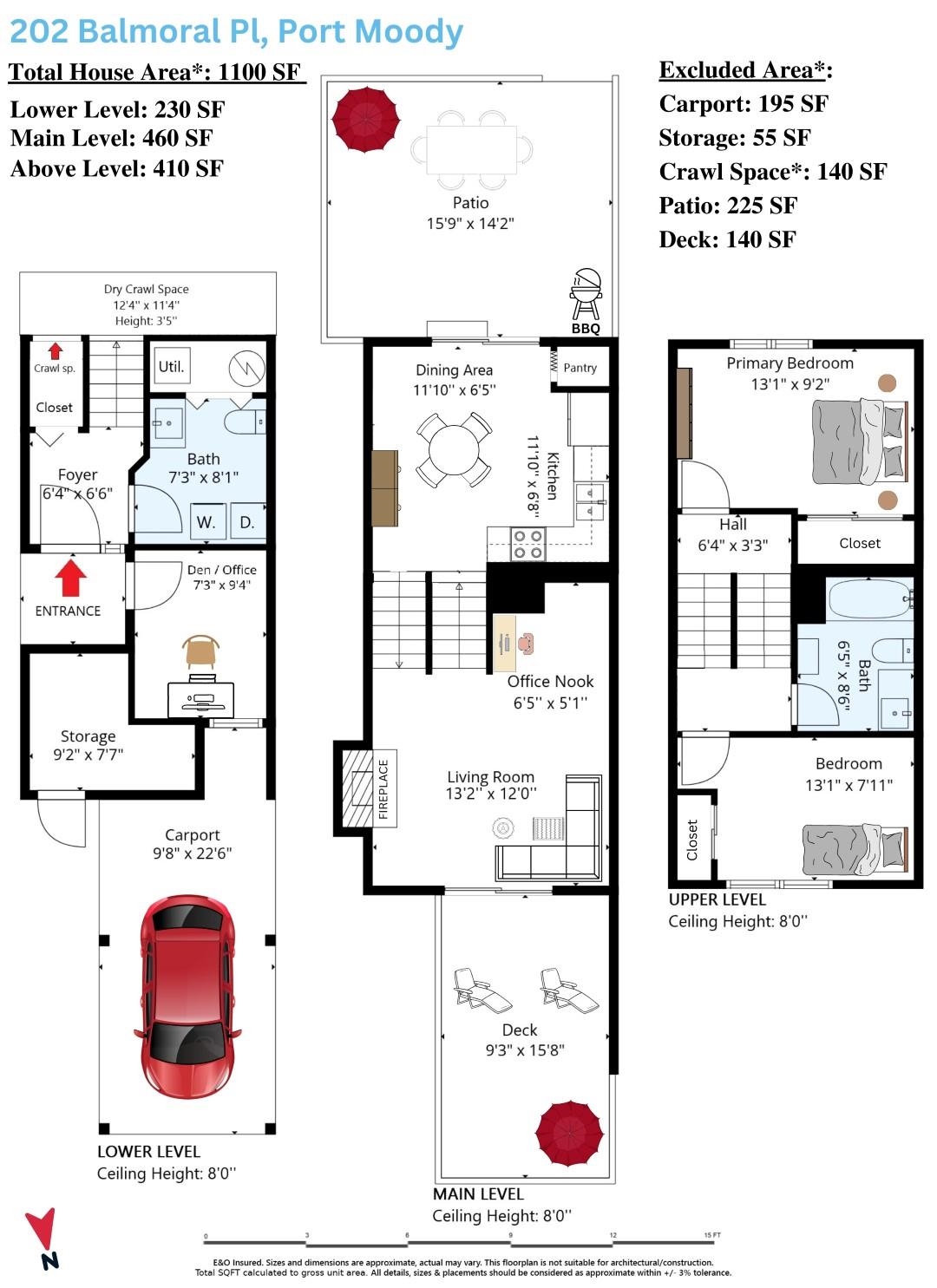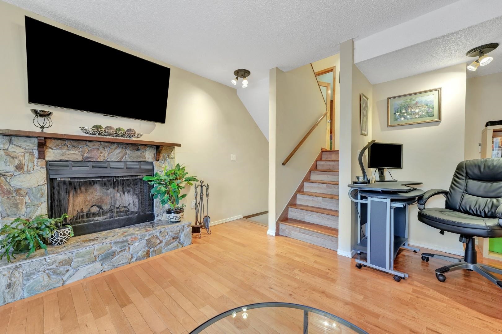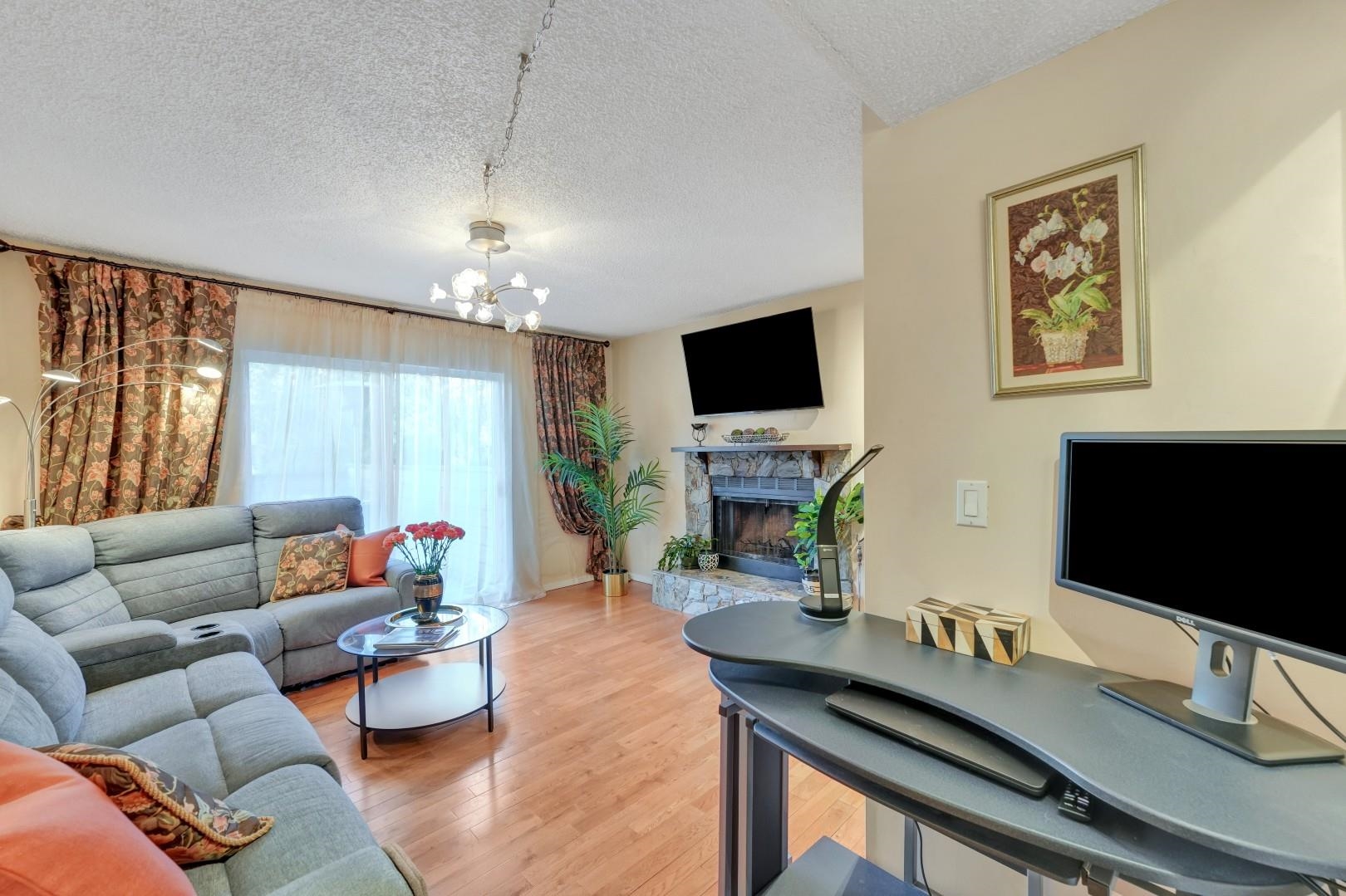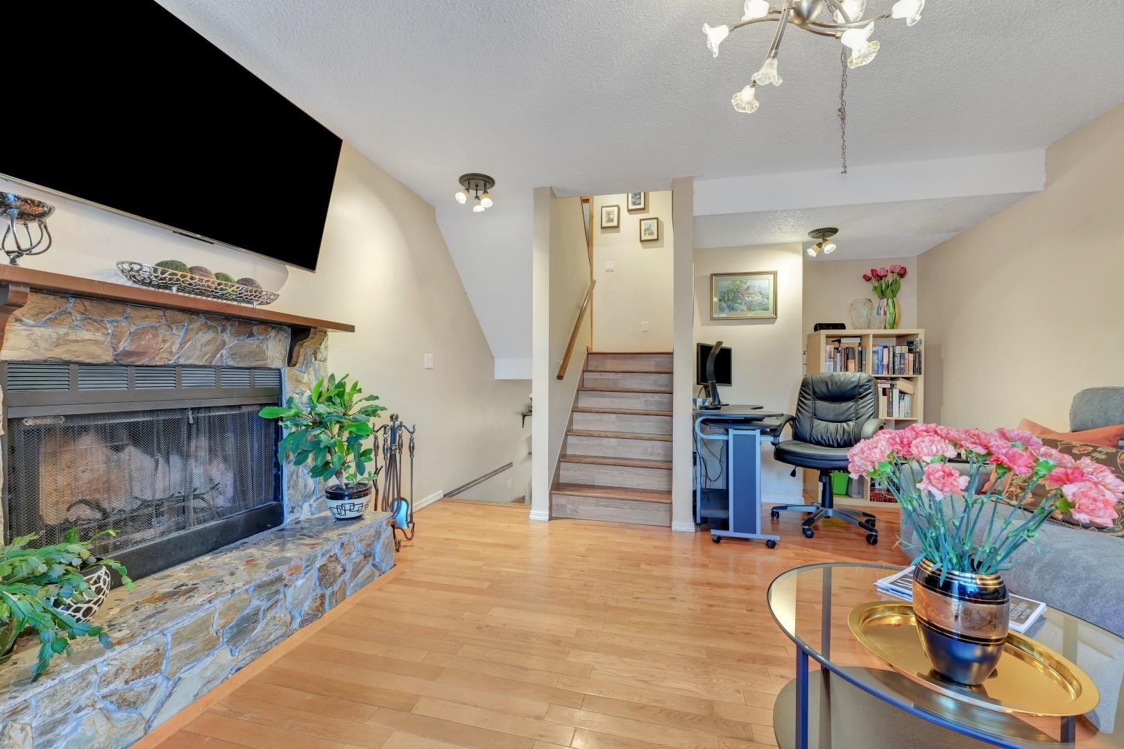Beautiful END UNIT Townhouse with separate entrance for the office! Well maintained 2 bedroom & 2 bathroom + DEN home is ready for you to move in! Offers BOTH balcony and sunny large back patio off of the kitchen. Inside, you'll find wood fireplace, large kitchen with eating area. Lots of storage with additional 140SF Crawl space (not included in SF)+ SHED! Prime location: short walk to Skytrain, Newport Village, Sutter Brook Village, Rocky Point Park, Breweries, Restaurants, City Hall, Recreation Center/Li...