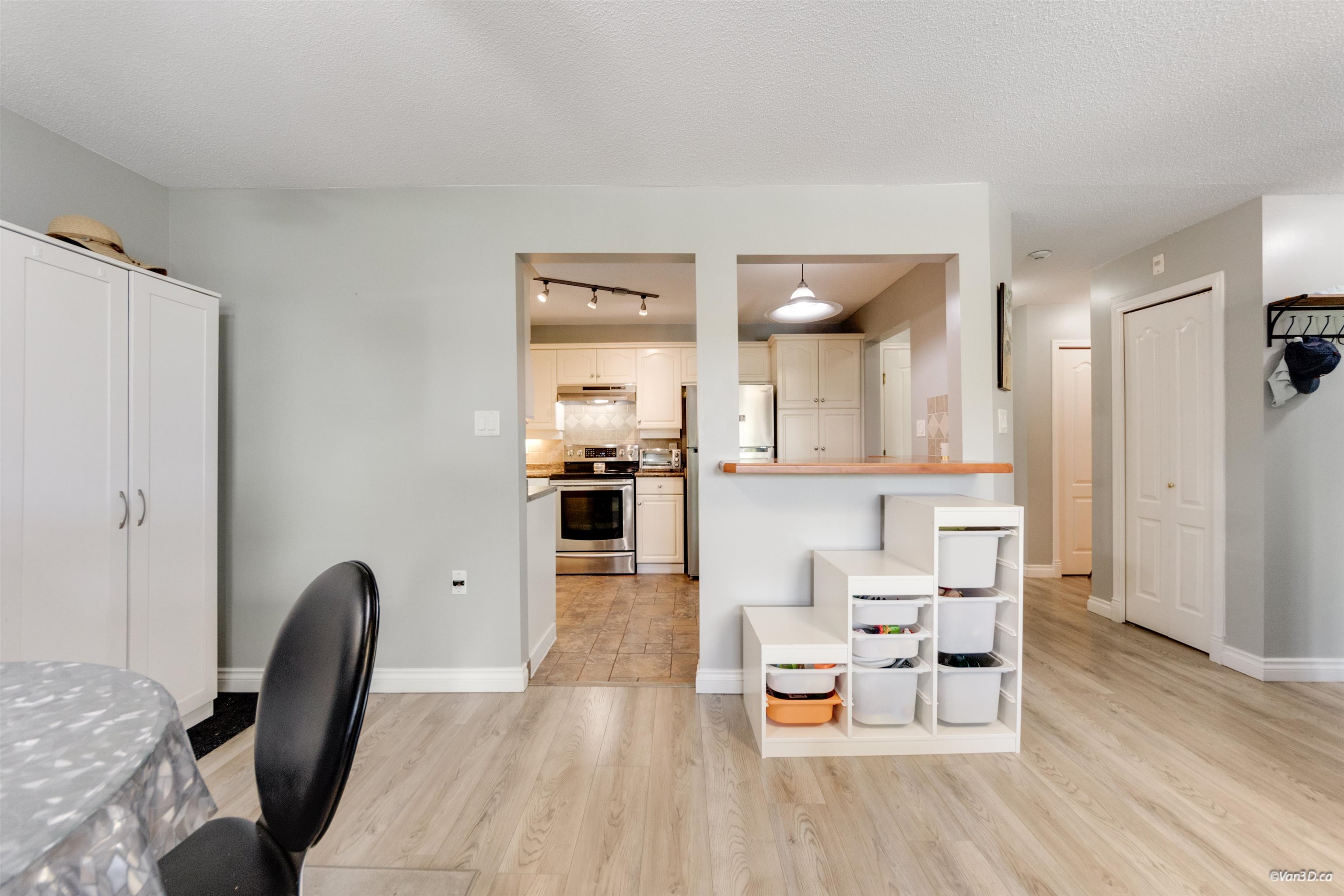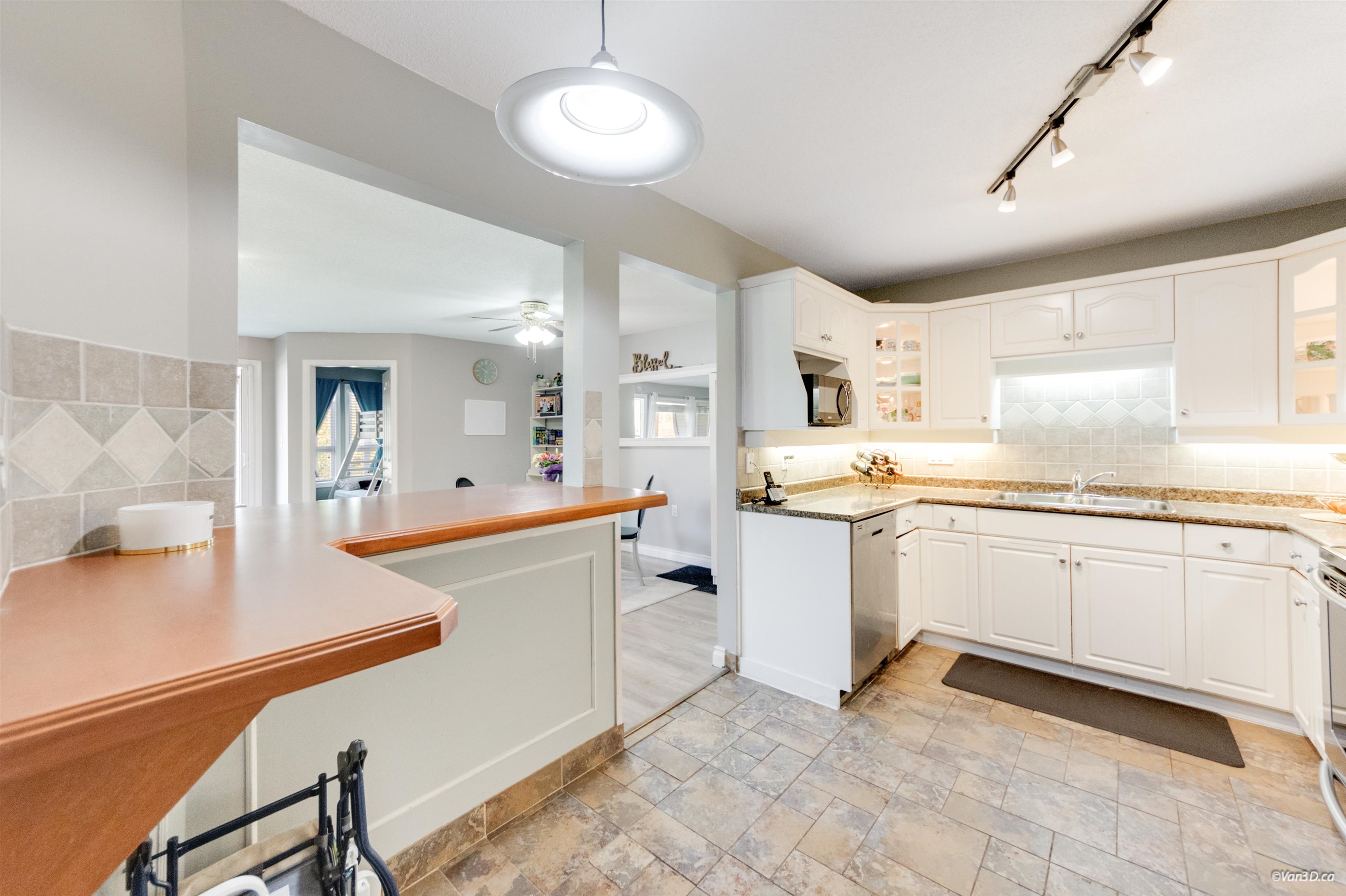 Welcome to Derby Downs — Cloverdale's best-kept secret! Spacious & stylish 2 bed/2 bath unit on the 3rd floor of this centrally located, well-maintained complex. Features laminate flooring, large primary bedroom, tiled kitchen & baths, and a cozy gas fireplace perfect for those BC evenings. The open-concept kitchen boasts abundant cabinetry and generous counter space flowing seamlessly into the living and dining area — ideal for entertaining or relaxing. Amenity room, BBQ patio, gazebo, guest suite, storage...