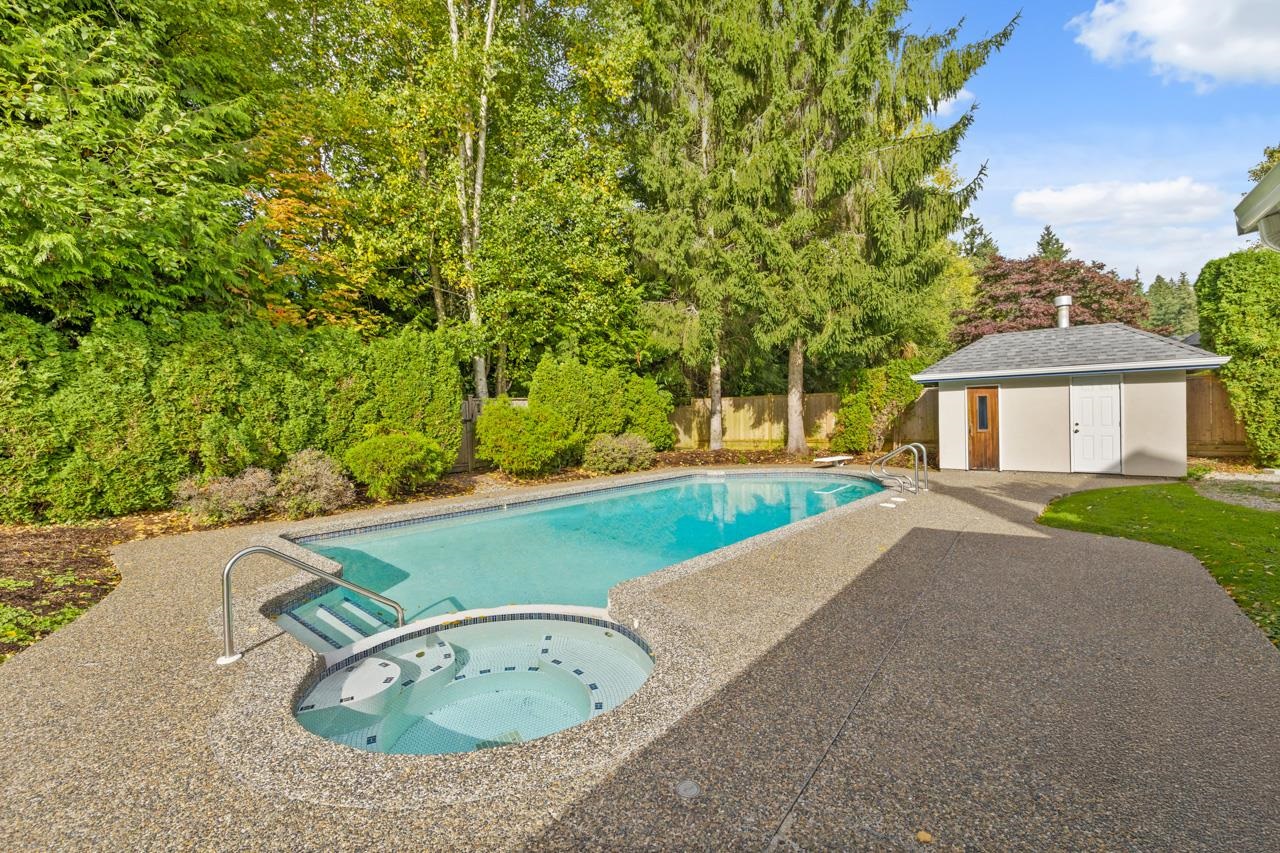 This Bridlewood home is situated on a beautifully manicured 14,026 sq ft lot that is fully fenced and backs onto a greenbelt. Over 2300 sq ft on the main floor includes generous living and dining rooms that look onto the backyard and inground pool. The kitchen, eating area, and family room feature a woodburning fireplace, making it a cozy gathering spot for the family. Off the kitchen is a large covered deck with skylight and gas line for BBQ overlooking the private backyard, pool, hot tub, and separate poo...