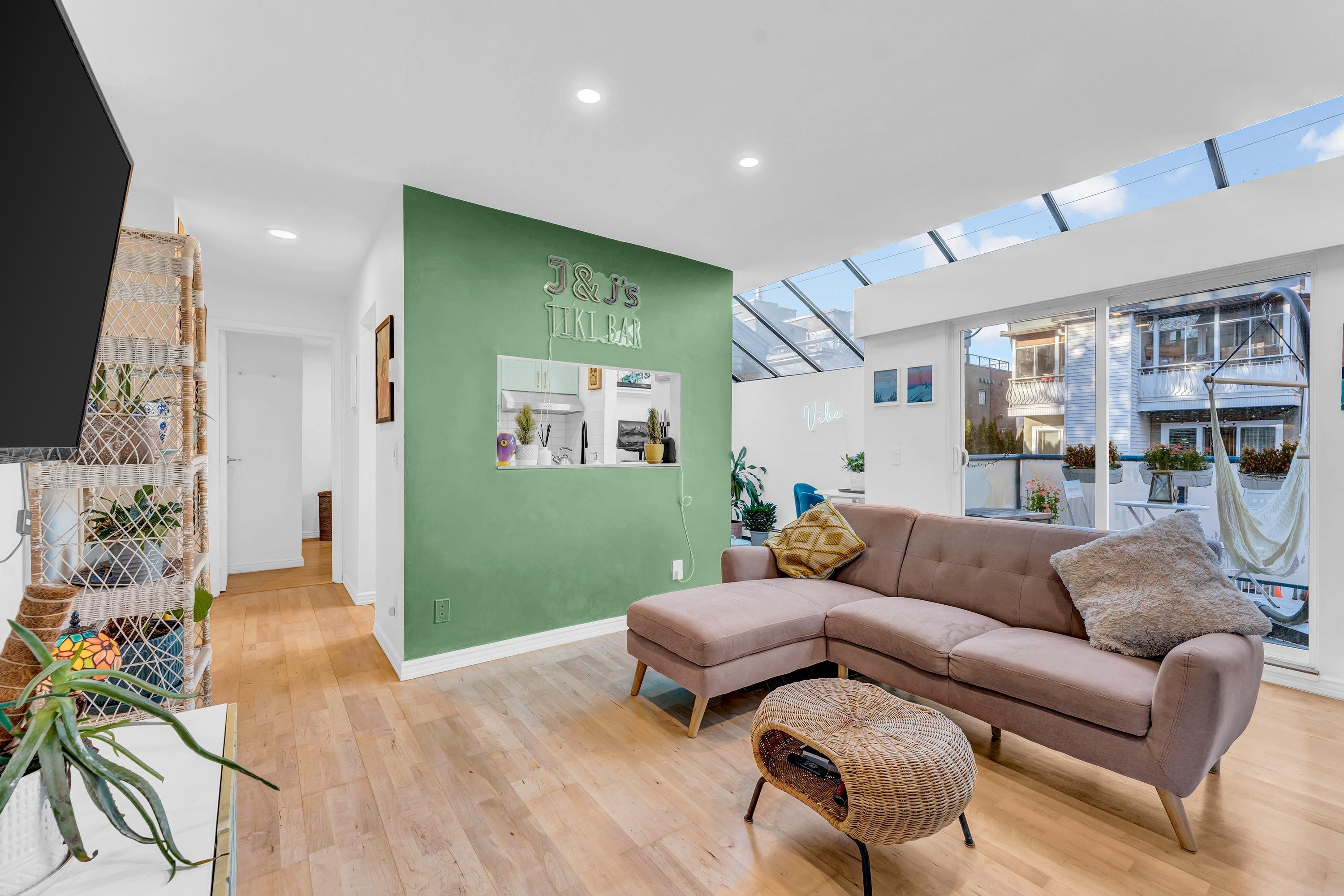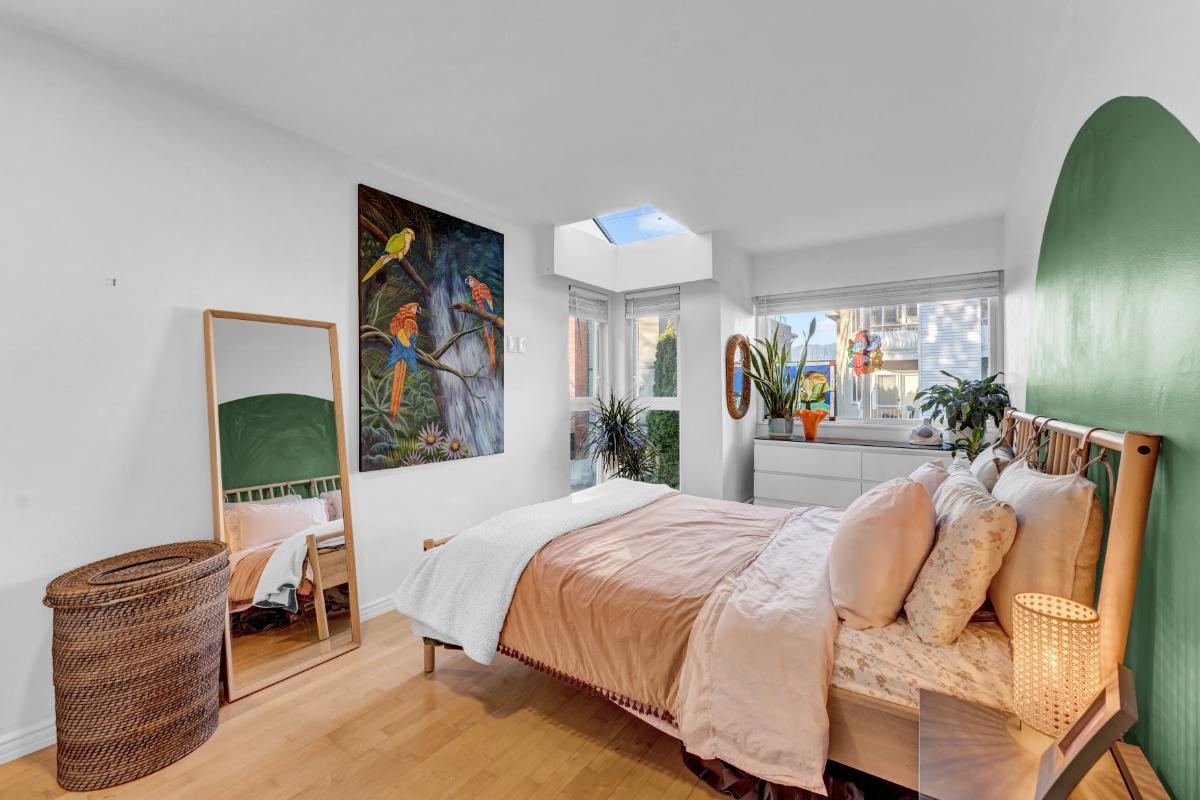 This bright, character filled one bedroom brings a relaxed beachside energy while feeling warm, cared for, and full of personality. Just minutes from Kits Beach, the space is filled with natural light from skylights and large windows, creating an airy and uplifting feel throughout the day. Vaulted glass ceilings and a real wood burning fireplace add charm and comfort, while the thoughtful use of colour gives the home a unique and inviting vibe. Colour, light, and an unmistakable atmosphere define this home....