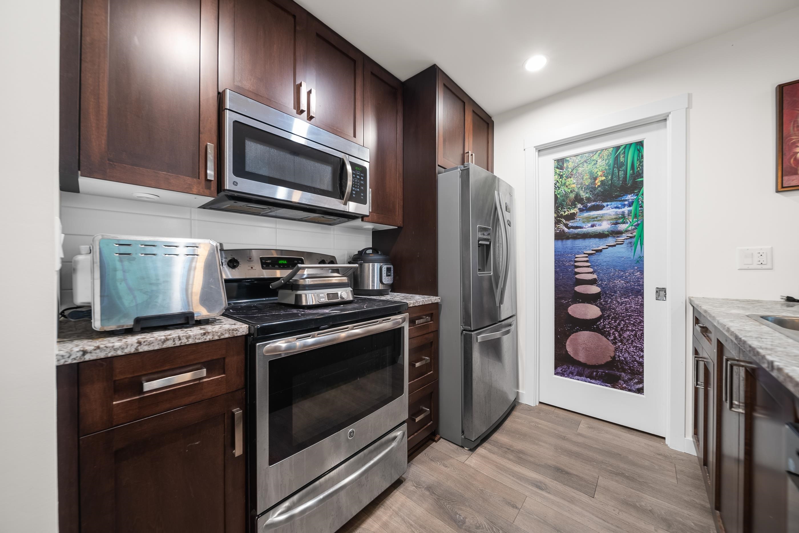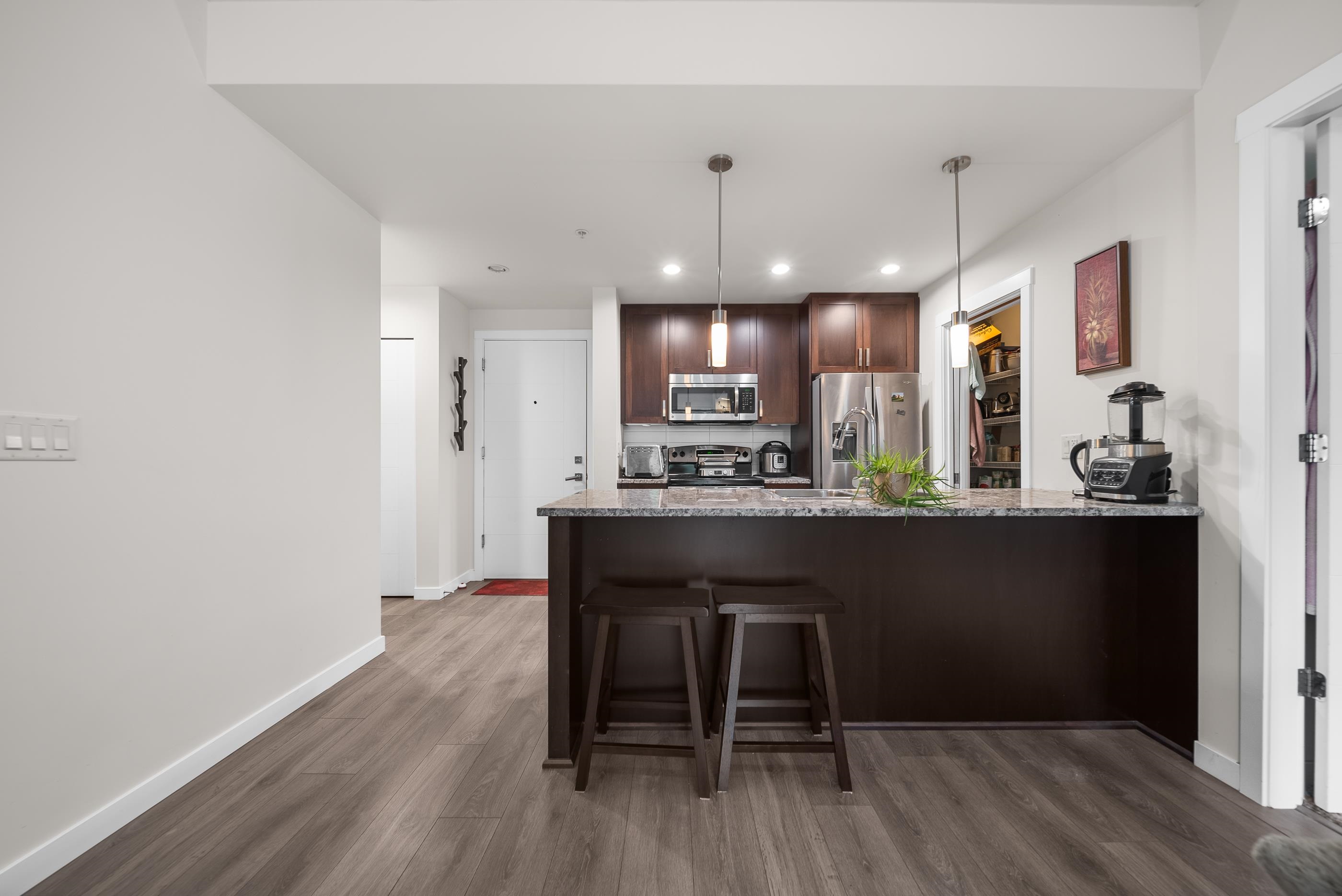 Modern living at its finest in East Abbotsford’s most sought-after condo community. Welcome to Waterleaf—where style, comfort, and convenience come together effortlessly. Enjoy resort-style amenities including a heated outdoor pool, hot tub, full-size gym, and an amenities room with a pool table. This immaculate 2-bedroom, 2-bath forest facing unit features newer paint, a shiplap-accented fireplace, custom living room cabinetry and shelving and a spacious pantry. Sit on the gorgeous patio and take in the be...