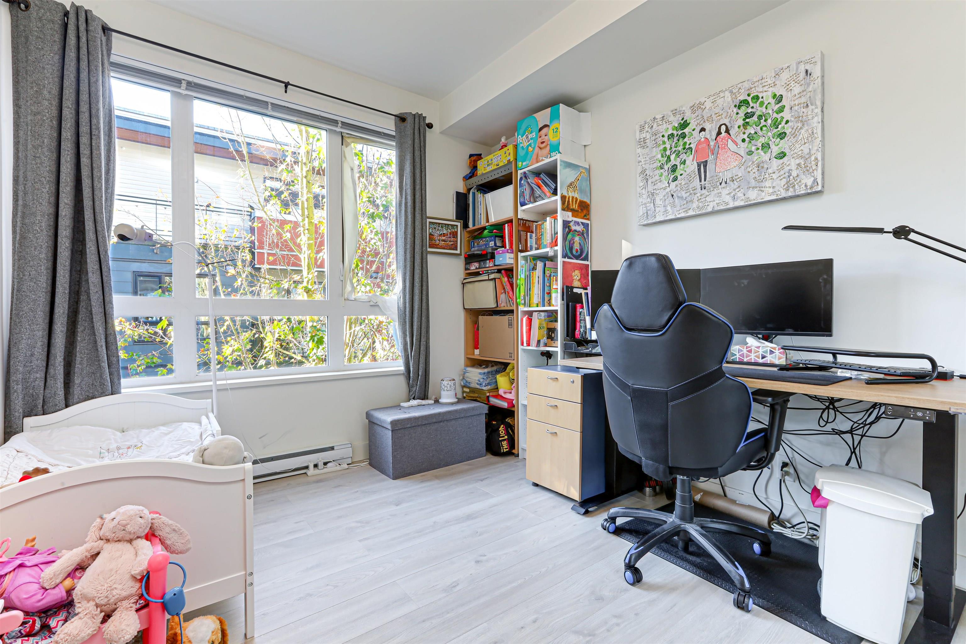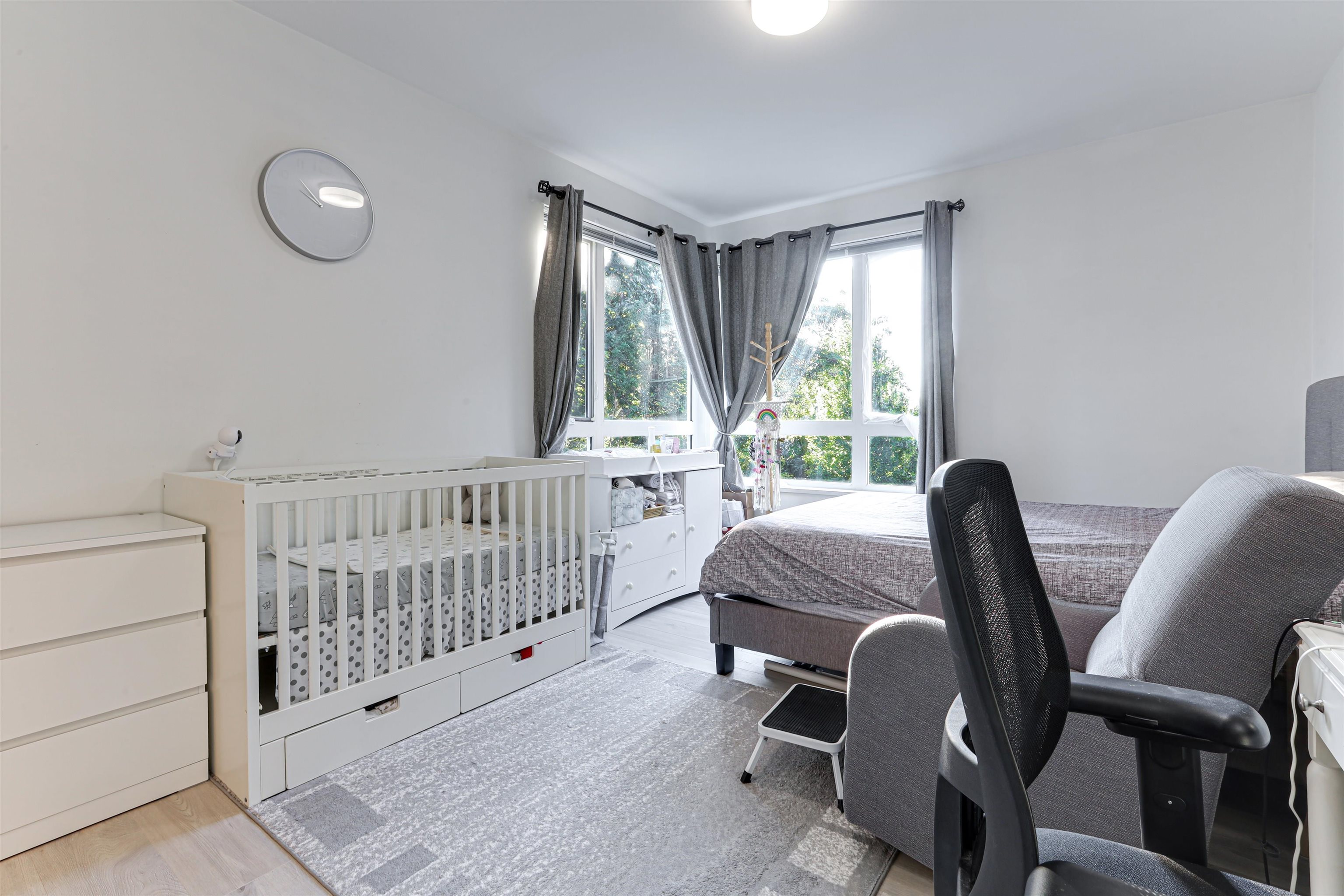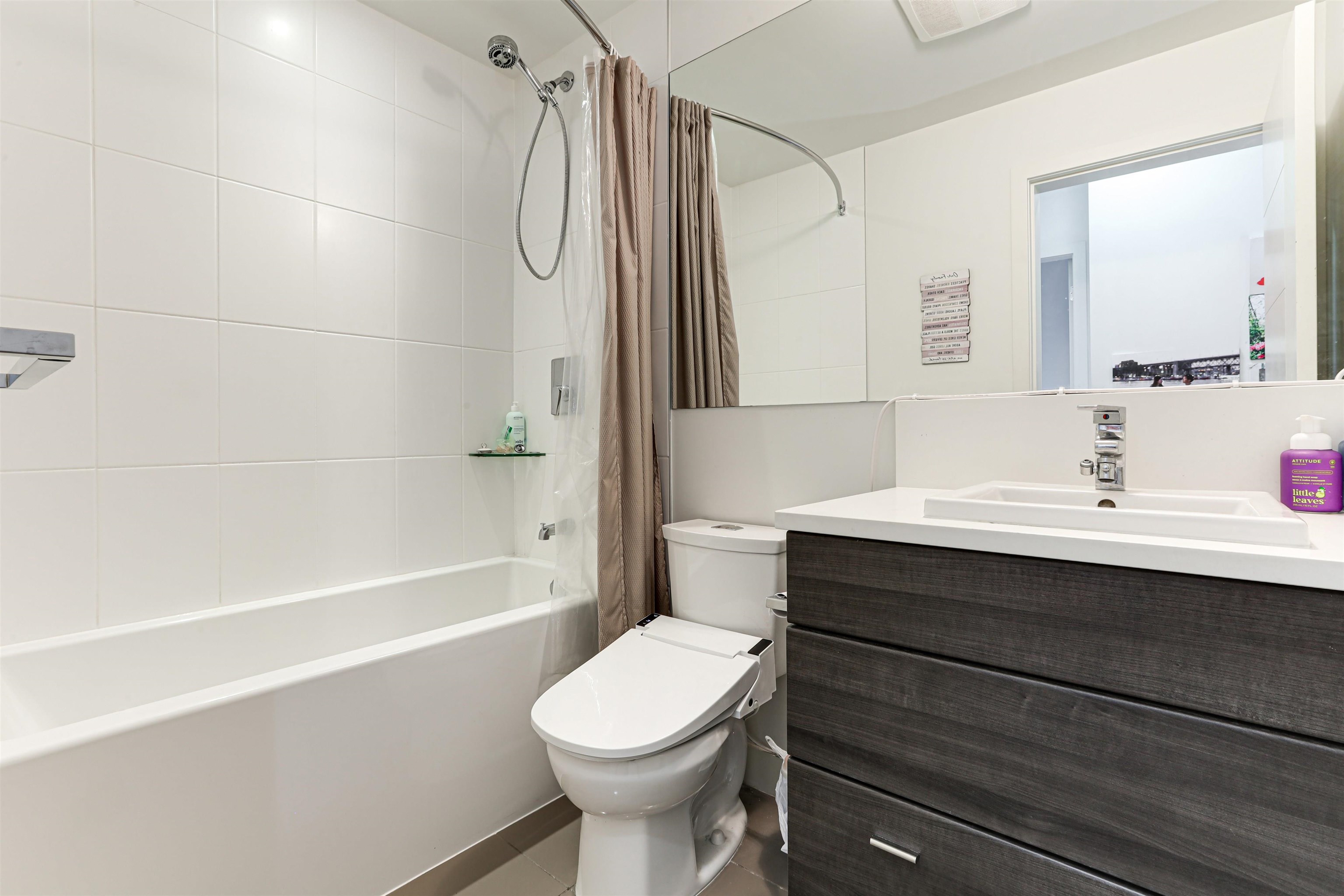 Welcome to Verve – Where Location Meets Lifestyle! Steps from King George SkyTrain, SFU, Future UBC, Surrey Memorial Hospital, and Central City. This bright 2 bed, 2 bath corner unit offers over 1,000 sq.ft. with fresh paint, upgraded laminate flooring, and a modern kitchen featuring quartz counters, stainless steel appliances, and a large breakfast bar. Enjoy southeast-facing windows, a quiet patio with treed outlook, 9ft ceilings, in-suite laundry, storage locker, and tandem parking. Amenities: gym, yoga ...