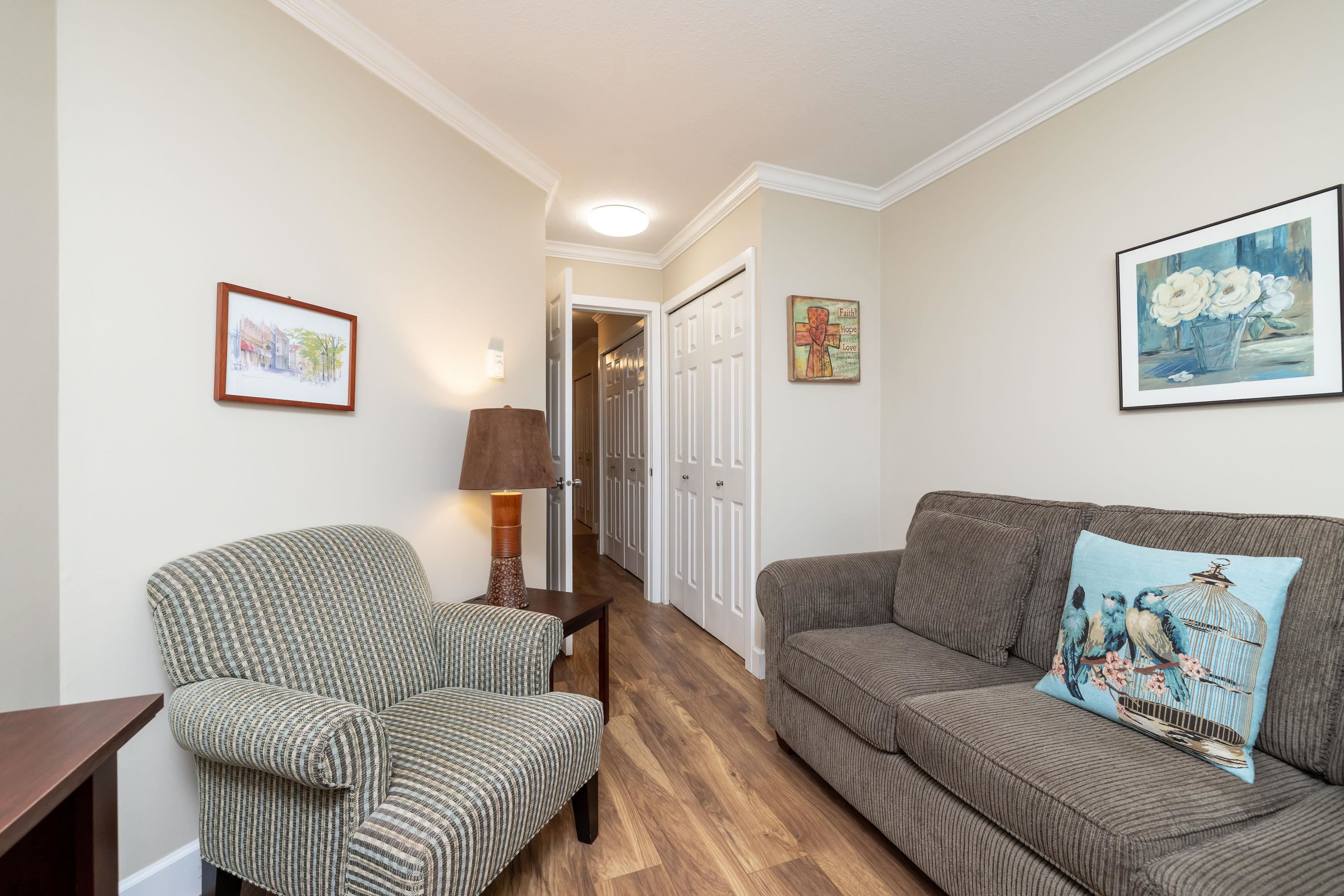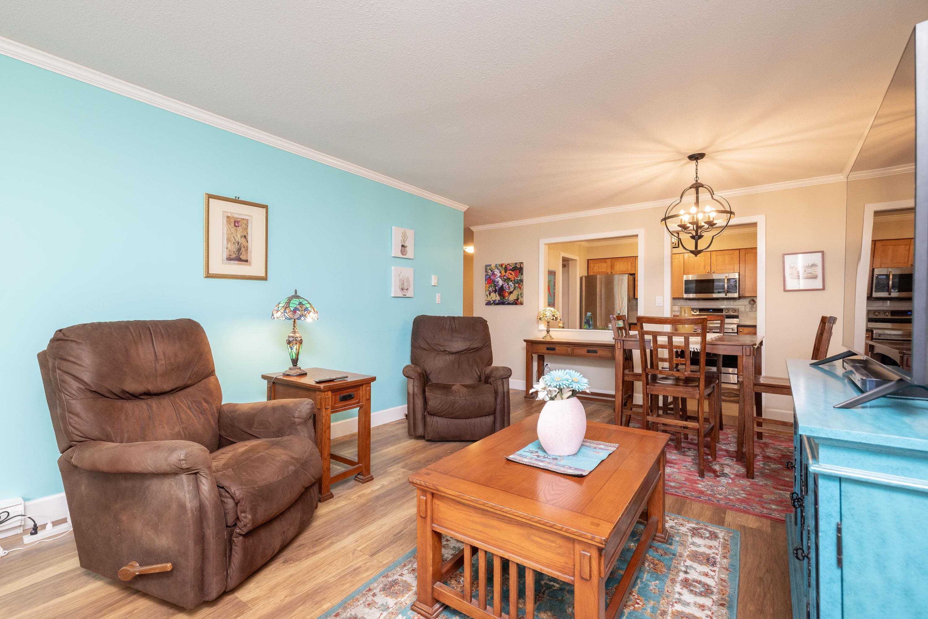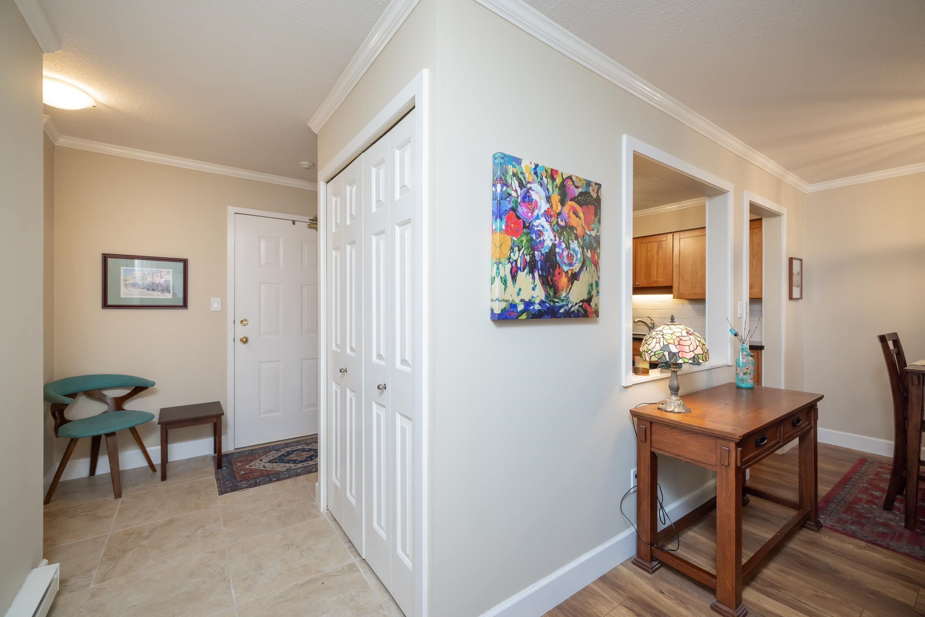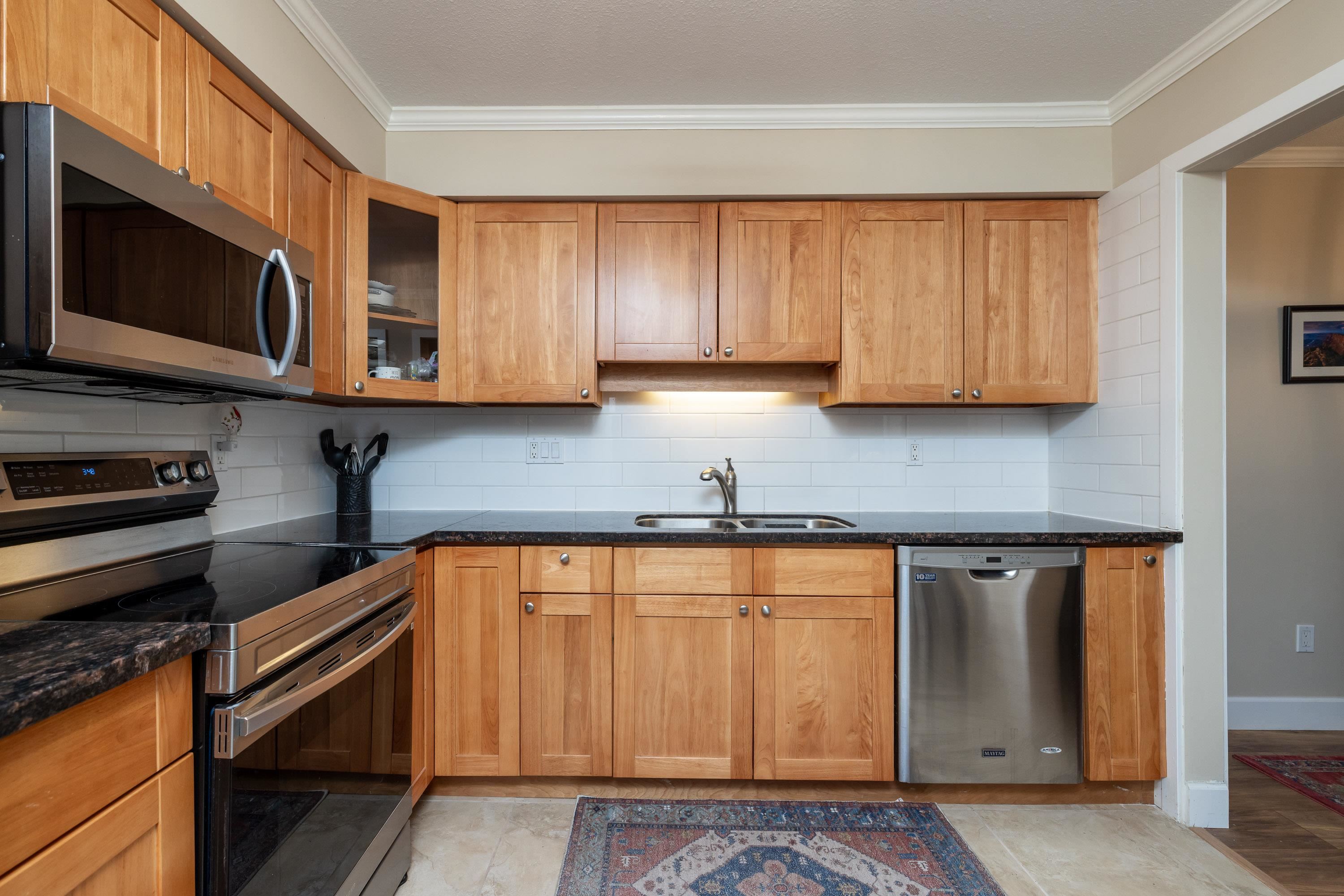 Pristine condo in the popular Chartwell building just two minutes to the ocean and close to shopping and transportation. Many upgrades in this unit including newer laminate flooring and paint, new taps in the kitchen as well as newer stove and microwave. Recently updated windows and doors. A classy looking home with crown mouldings throughout. New upgraded washer and dryer. The kitchen has stainless steel fridge and dishwasher as well as upgraded fixtures in the kitchen and dining room. The large master bed...