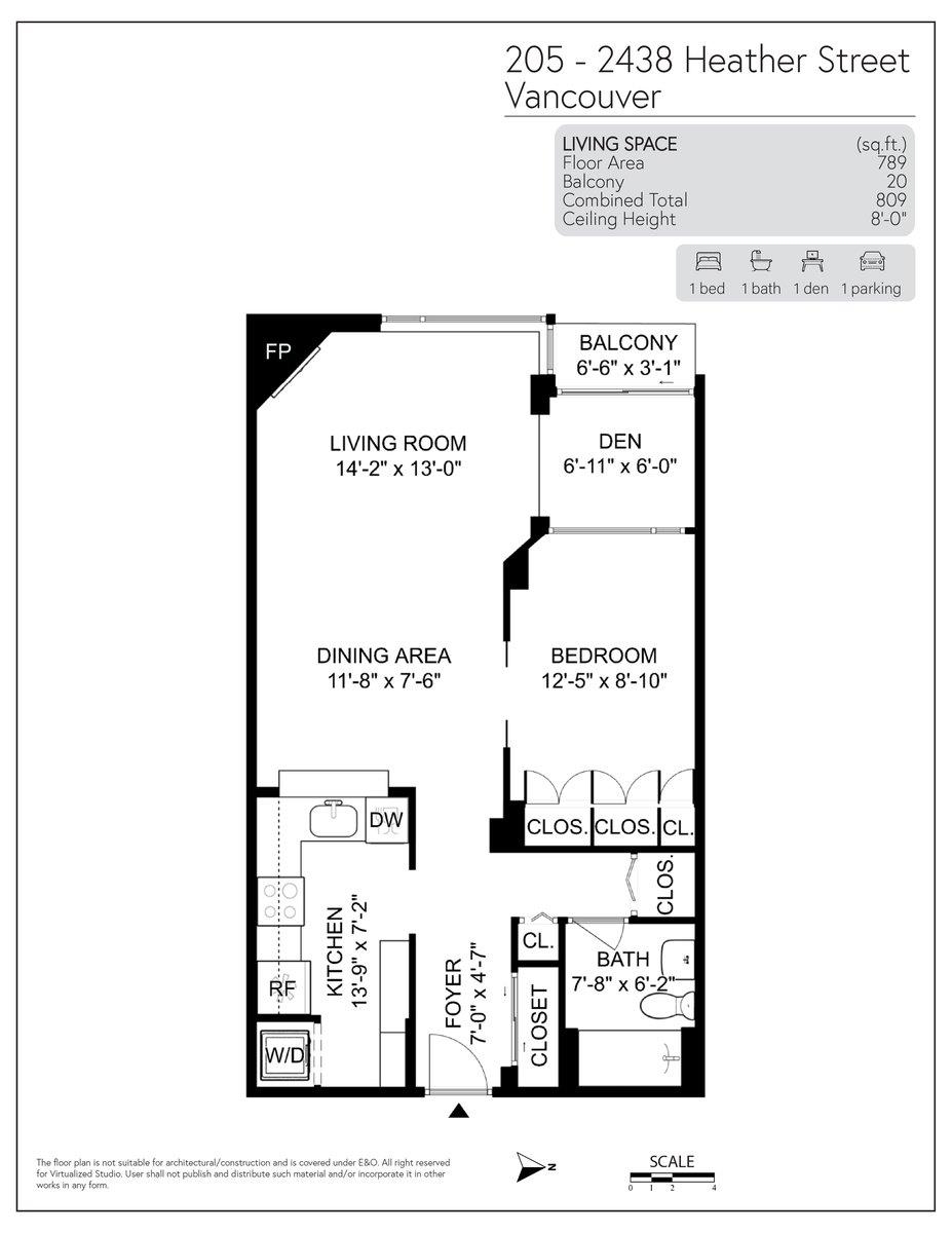 Beautifully updated large one bedroom & den in a solid concrete boutique building on a quiet, tree-lined street in Fairview. The spacious kitchen offers abundant storage & counter space, flowing into a lovely dining area perfect for hosting. Comfortable living room features a cozy gas fireplace. The bedroom easily fits a king-size bed & offers a full wall of built-in closets, while the den is ideal as a guest room or home office. Enjoy a pretty west-facing balcony surrounded by greenery. Updated bathroom wi...