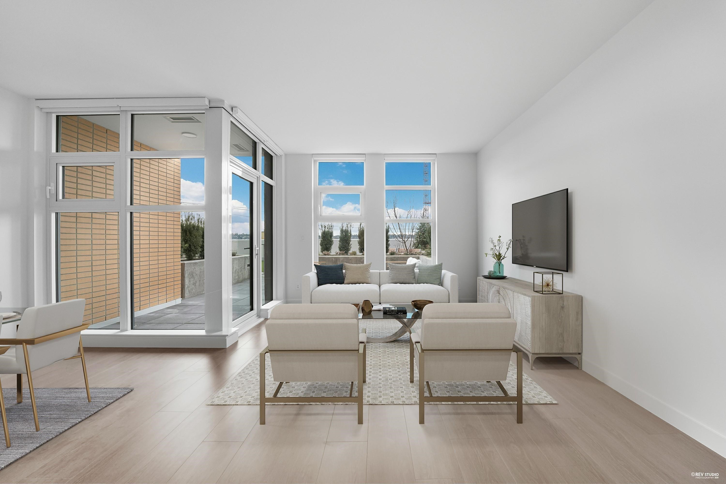 Rare Concrete-built townhome in the heart of downtown New Westminster. This unit is hard to find. You will have your private outdoor patio and semi-private green space to use 24-7 overlooking the amazing river view. 3 large size bedrooms on the upper floor, and big living & dinning space on main. Featuring: Bosch appliances with 5 burner gas cooktop, Perfect home for any families.