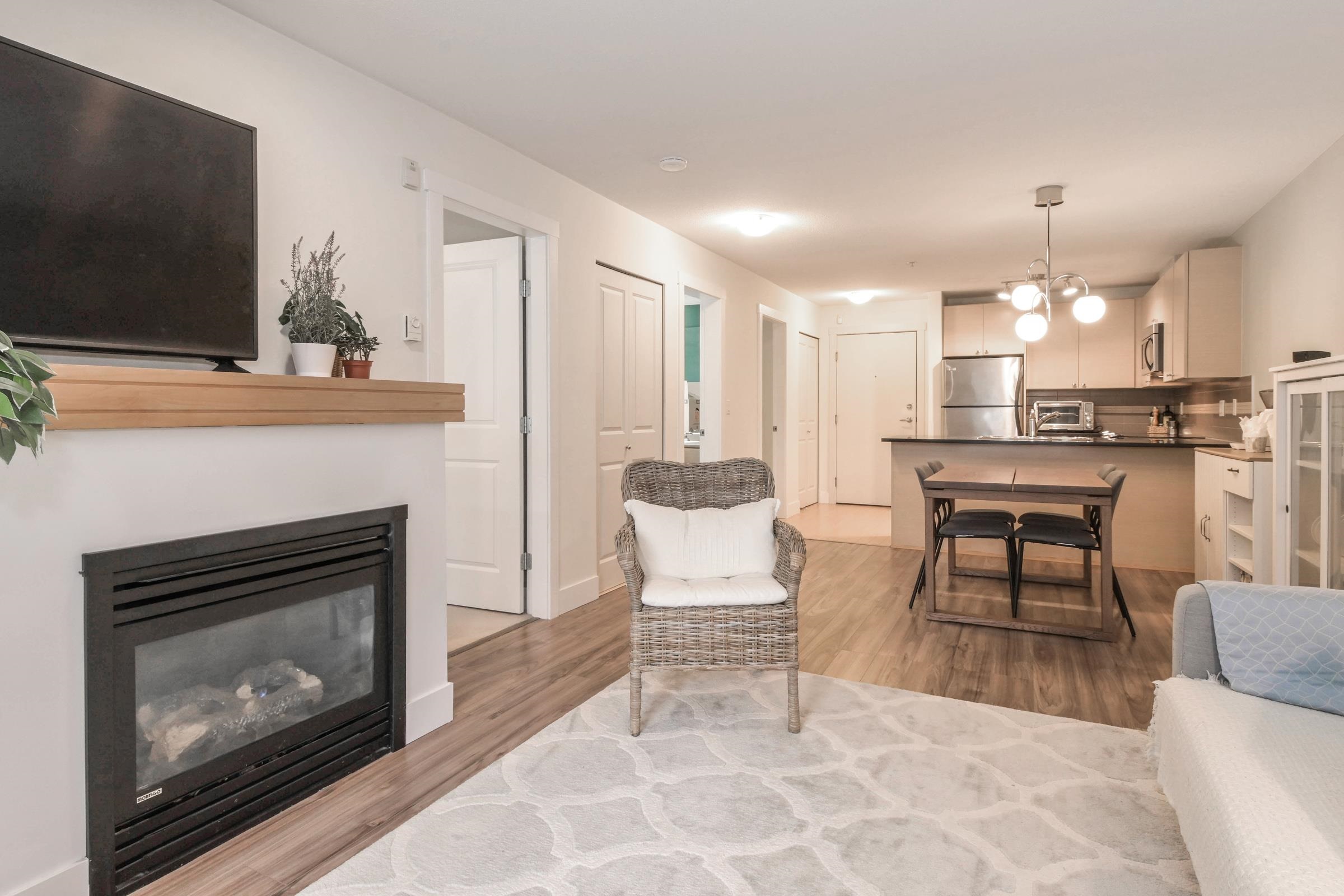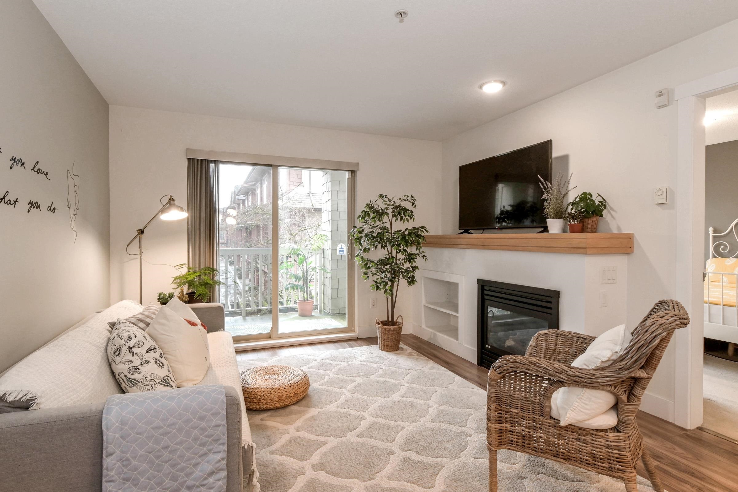 Welcome to Sunset Grove, a highly sought-after community offering comfort, convenience, and a peaceful setting. This bright & spacious 750 sqft, 1 bedroom plus den home is situated on the quiet side of the building, overlooking the garden & greenbelt for a serene outlook. Inside, you’ll find a cozy gas fireplace, quartz countertops, stainless steel appliances, and the convenience of in-suite laundry. The home includes 1 underground secured parking stall & a storage locker, with plenty of street parking avai...