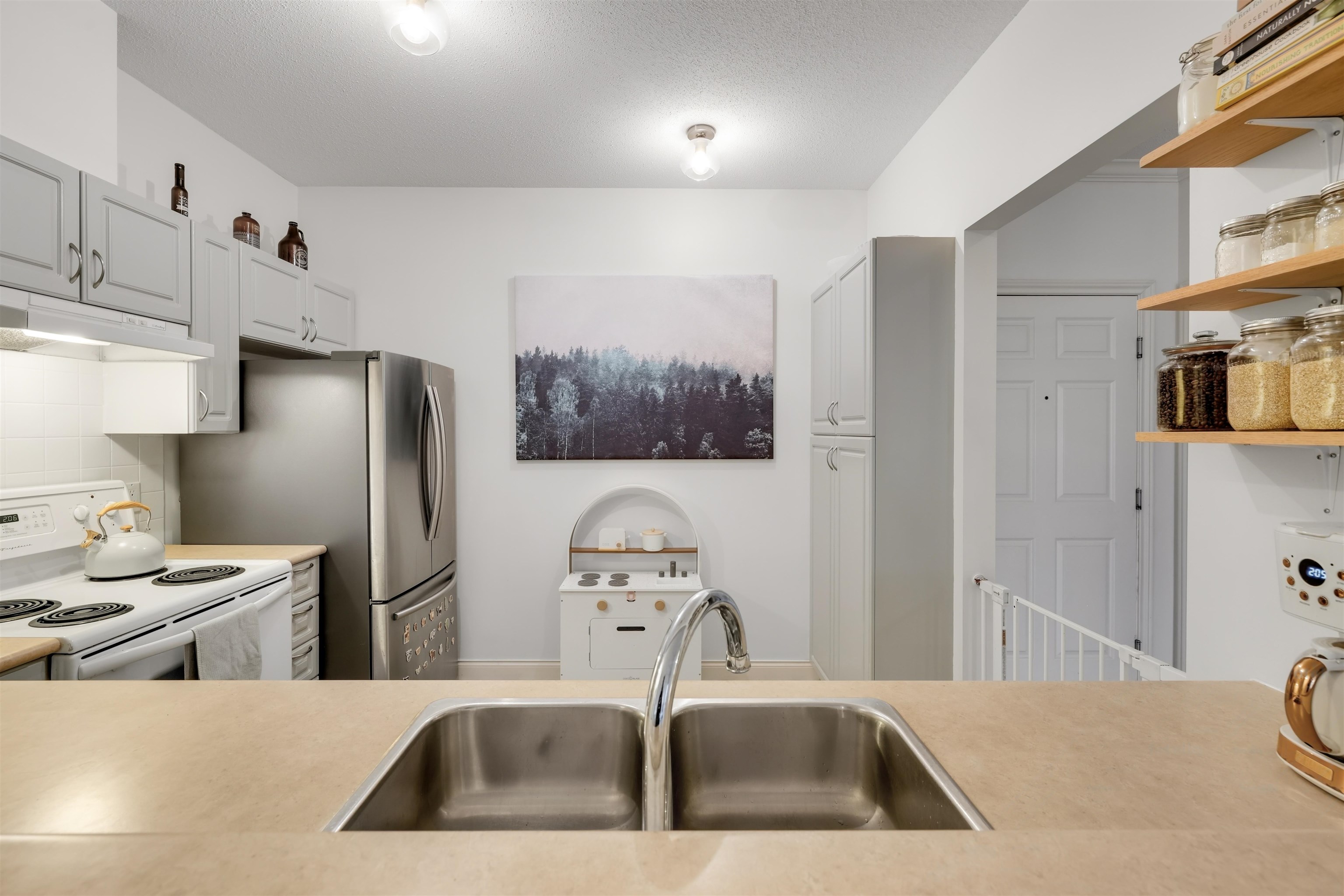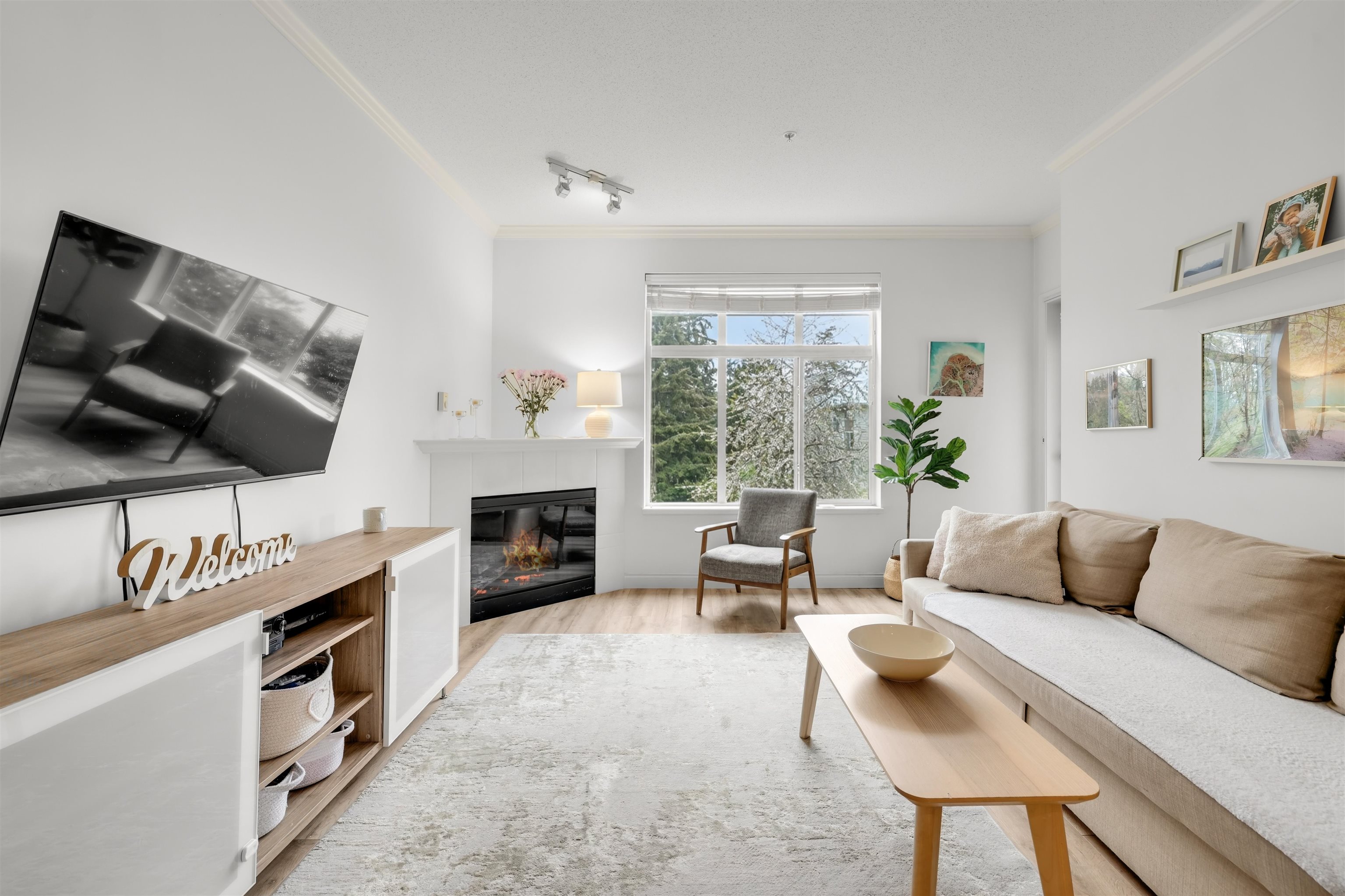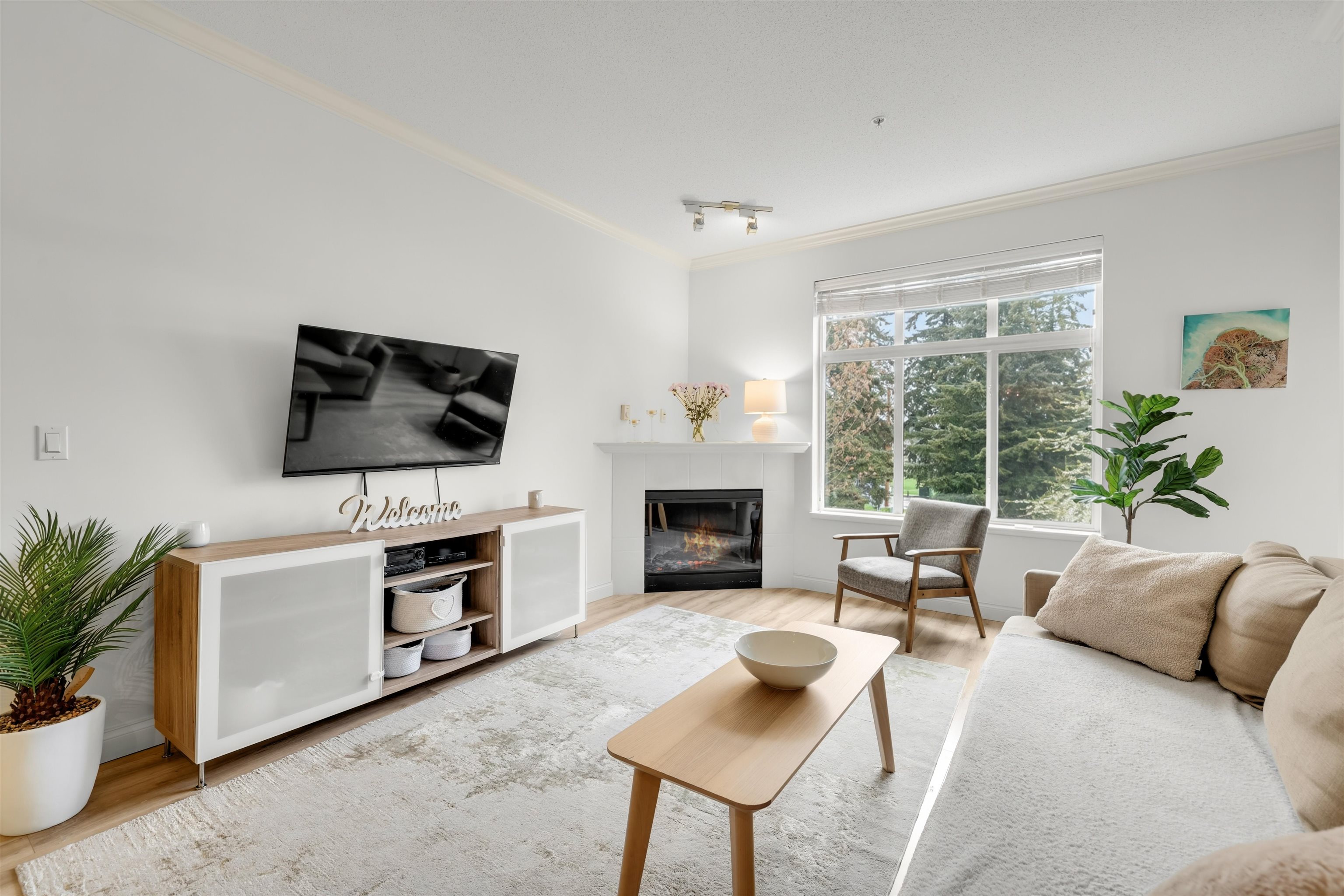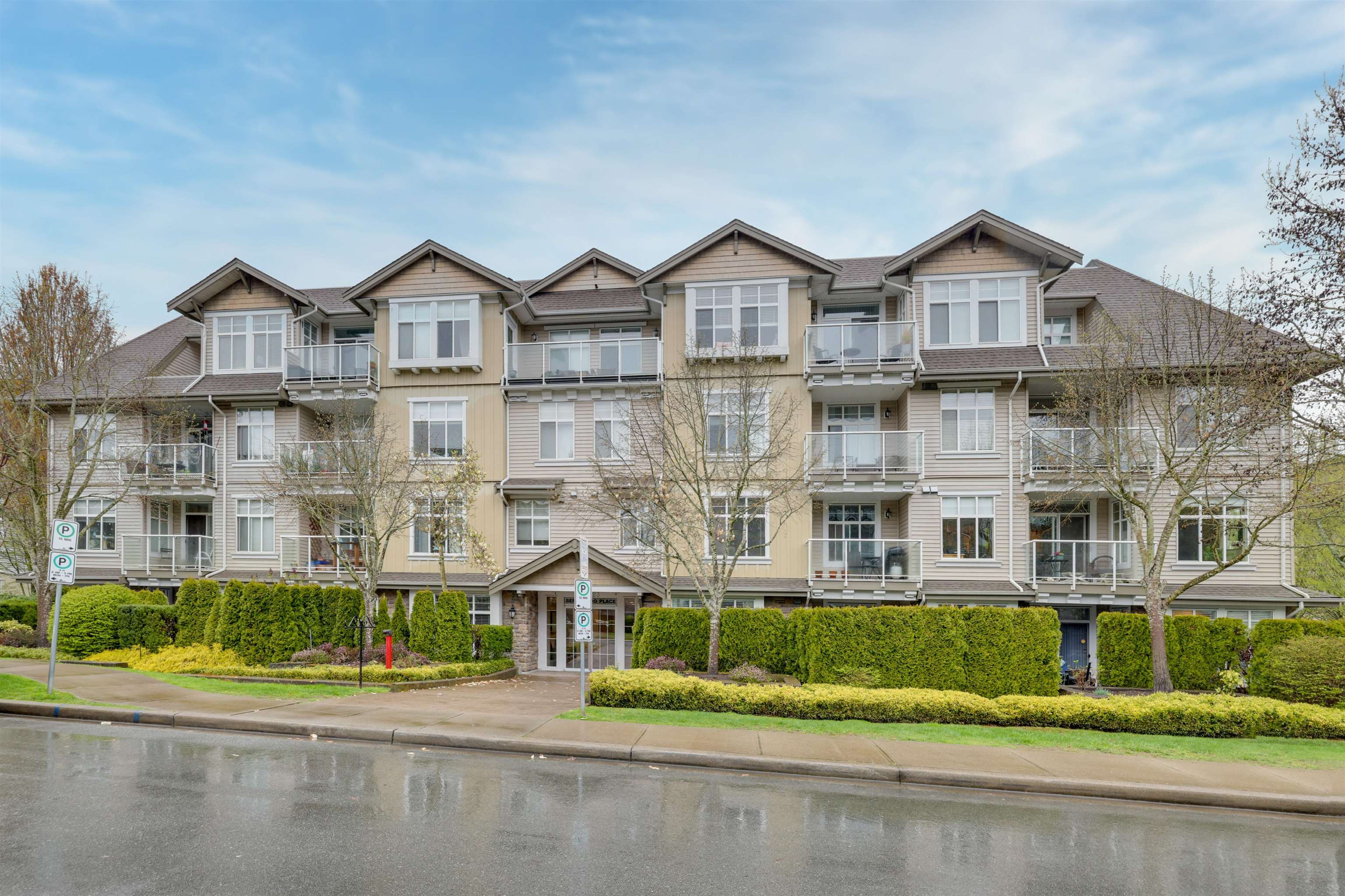 with 9 foot ceilings, this already large unit, feels even bigger. Semiahmoo Place is a pet friendly 2 bedroom 2 bathroom home located just steps from the elevator in this 2003 building near central White Rock. Bright kitchen with laminate flooring & plenty of cabinetry offering loads of storage. Spacious living and dining area featuring cozy electric fireplace. Designer paint and updated flooring, this unit has been lovingly maintained. Private balcony overlooking beautiful treed setting. Both bedrooms are ...