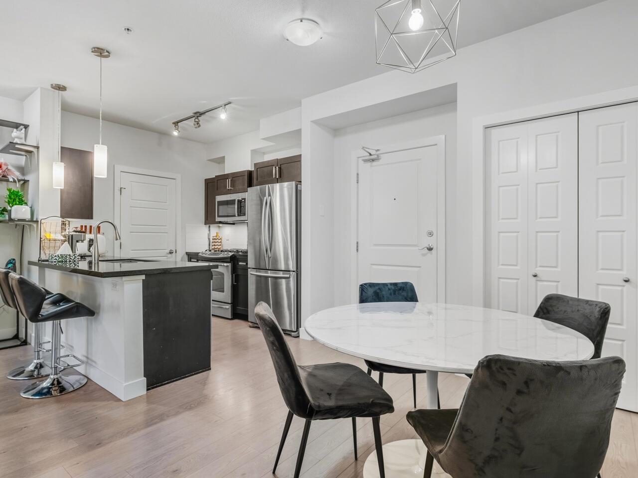 This Amazing 2Bed, 2Bath home w/serene views of trees/greenspace features modern flooring & airy ceilings that highlight a stylish open concept kitchen w/stainless steel appliances, gas range, rich cabinets, gleaming countertops & breakfast bar! Unwind after work OR entertain friends in your spacious living/dining areas! BBQ & kick back on your sizable balcony w/gas hookup & take in the spectacular views! The ample primary bed features a 3pc ensuite bath that's your tranquil oasis of relaxation! Bedrooms on...