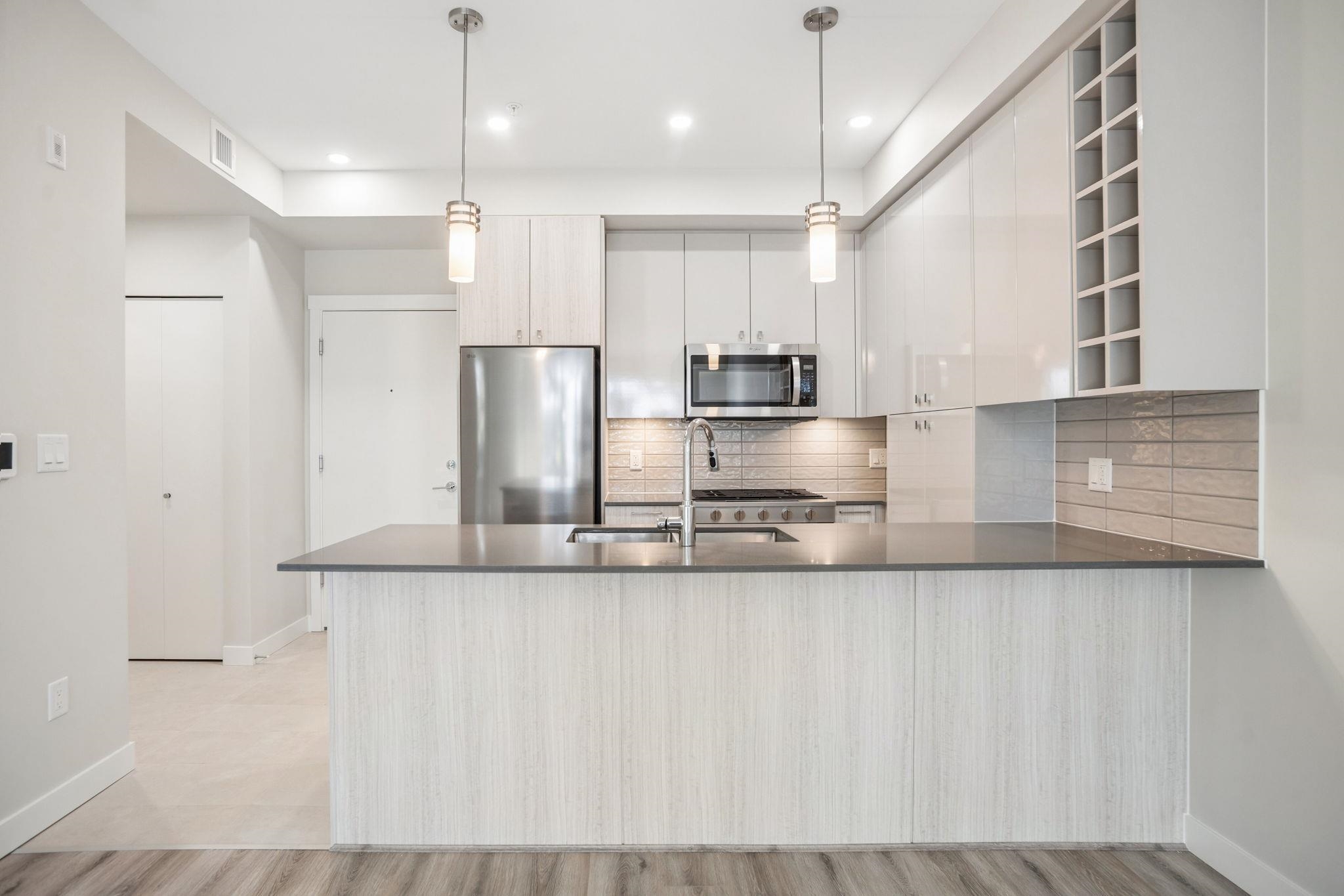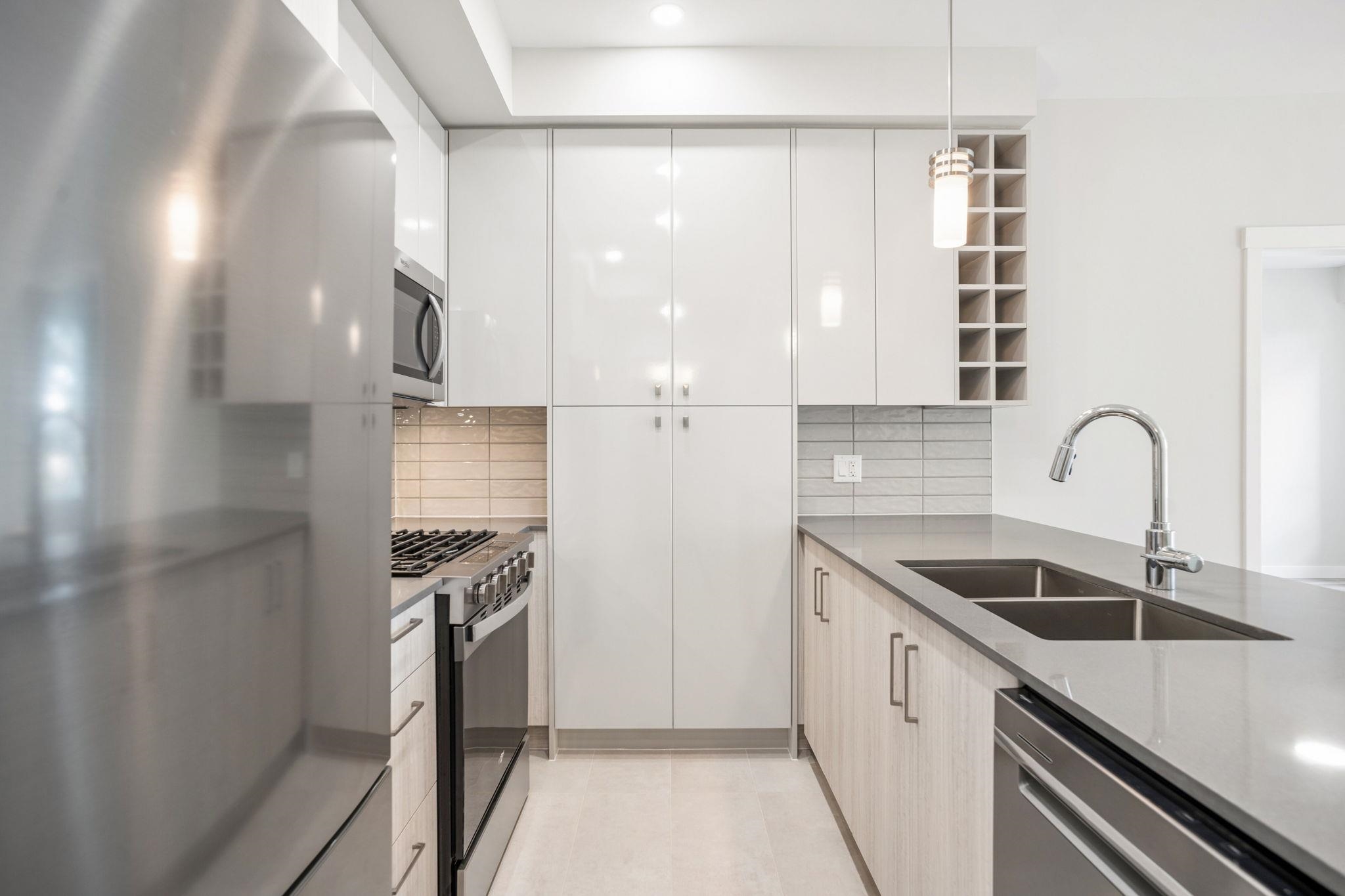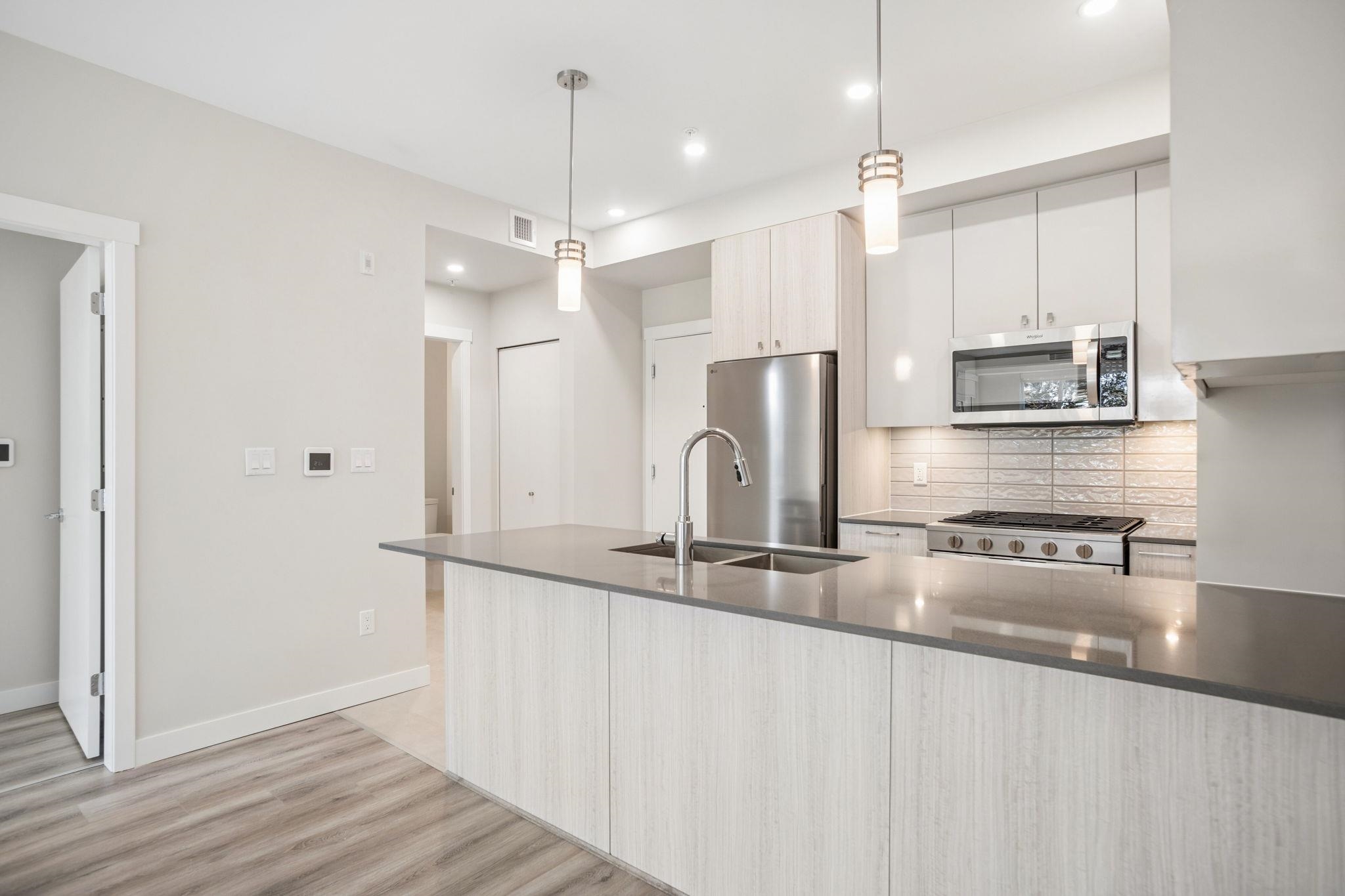 HAMILTON VILLAGE EAST. Welcome to this BRAND NEW 2 bedroom, 2 bathroom home with quaint neighbourhood treeline views! Appreciate a super functional floorplan with open-concept kitchen boasting stainless steel appliances including gas range, two tone cabinetry, quartz counters a plenty of storage space. Separated bedrooms provide privacy & flexibility and large windows invite an abundance of natural light. Both bathrooms feature large vanities and either a large soaker tub or walk in shower. The covered pati...