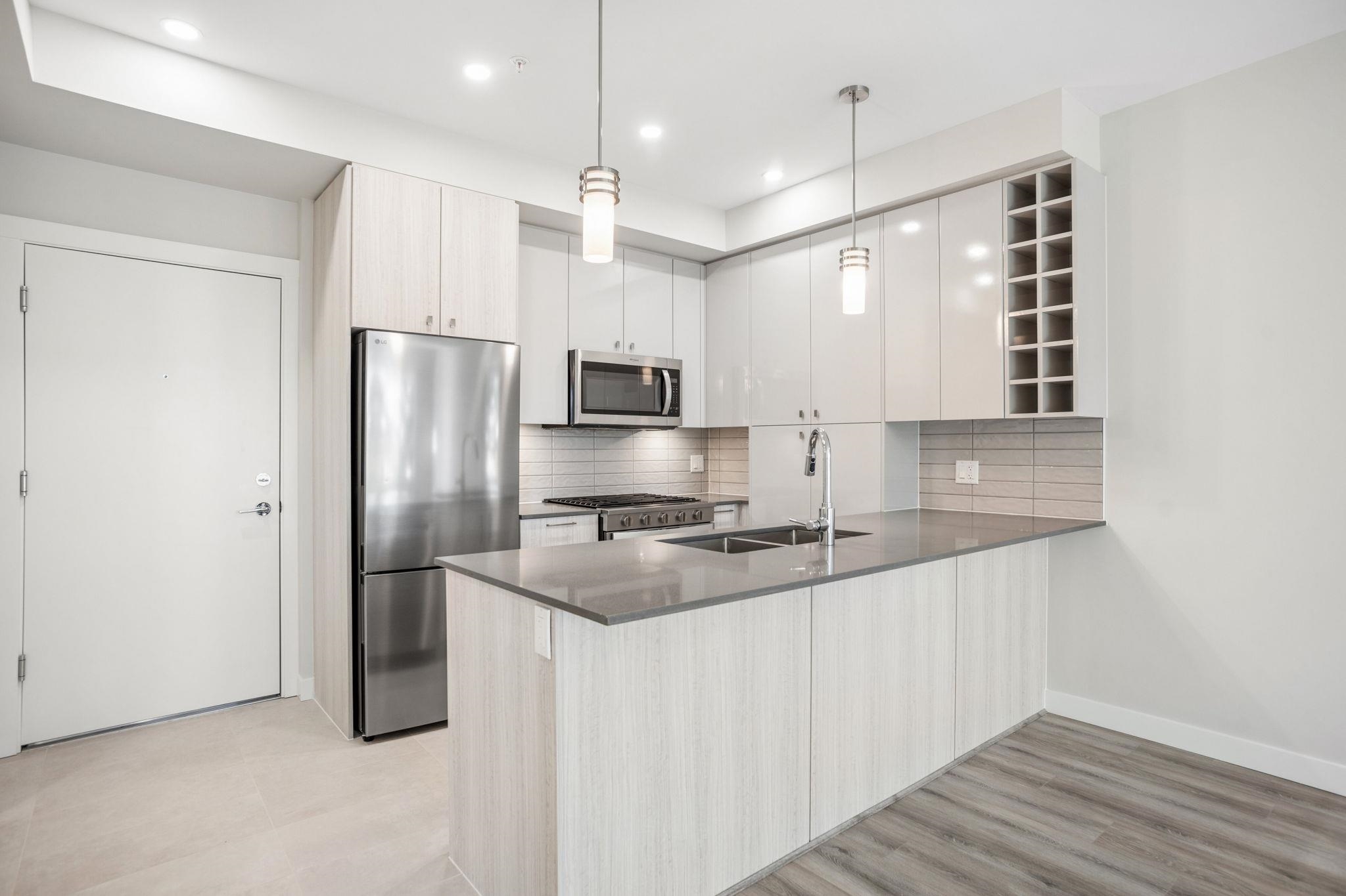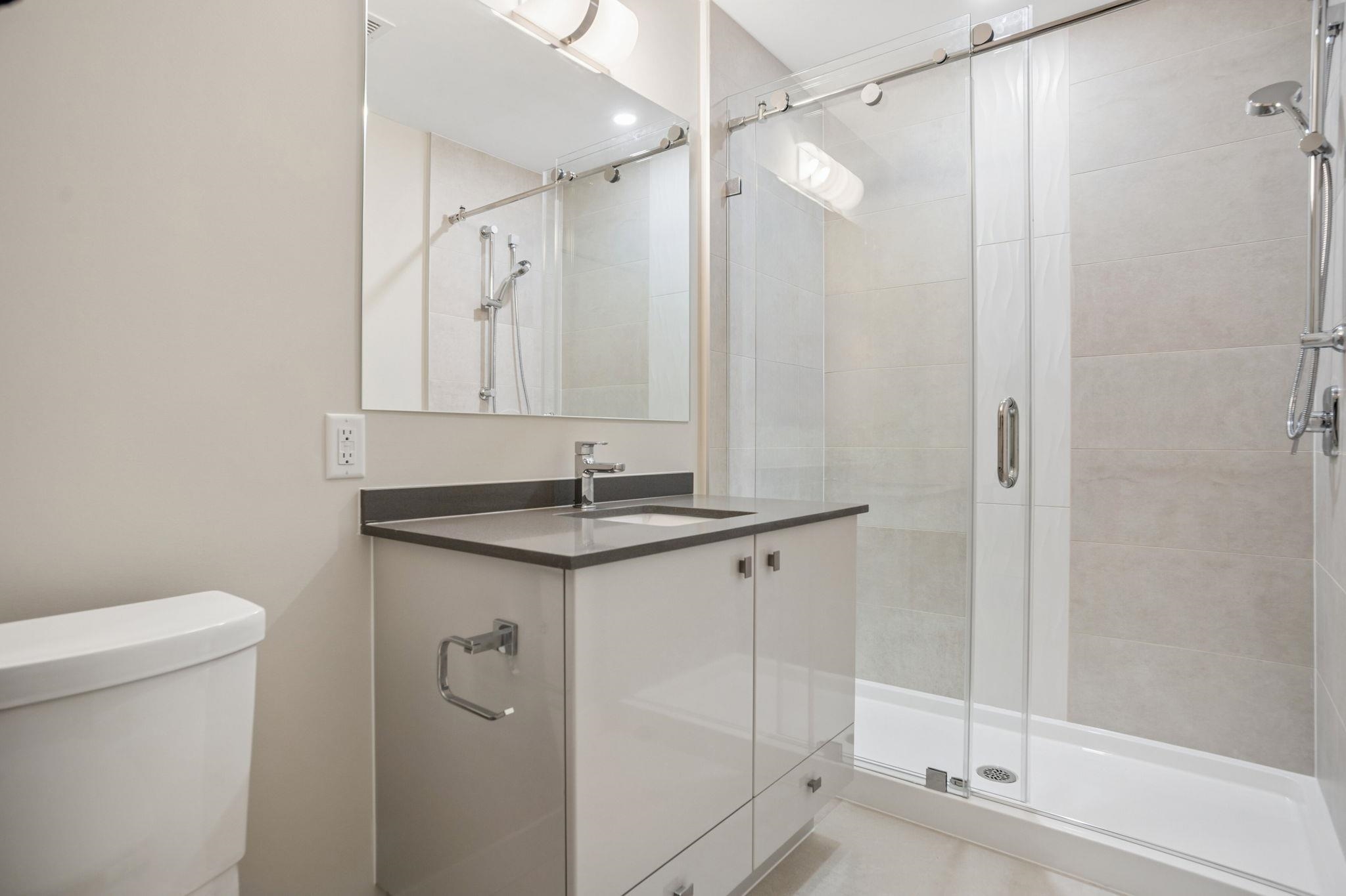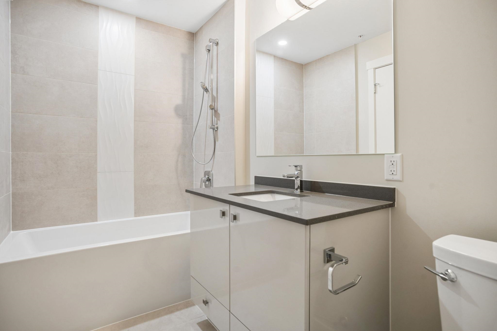HAMILTON VILLAGE EAST. Welcome to this BRAND NEW 2 bedroom, 2 bathroom home with quaint neighbourhood treeline views! Appreciate a super functional floorplan with open-concept kitchen boasting stainless steel appliances including gas range, two tone cabinetry, quartz counters a plenty of storage space. Separated bedrooms provide privacy & flexibility and large windows invite an abundance of natural light. Both bathrooms feature large vanities and either a large soaker tub or walk in shower. The covered pati...