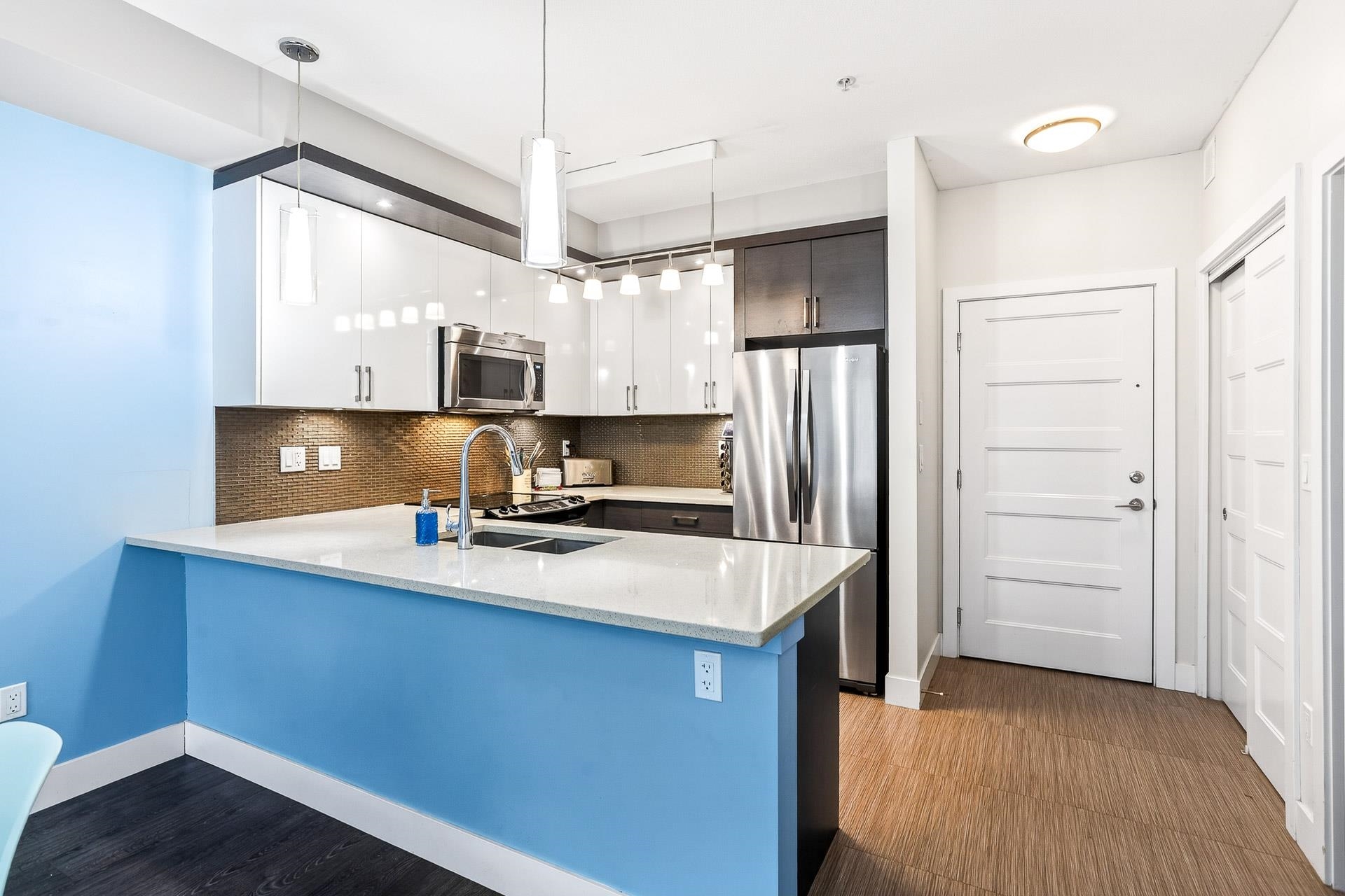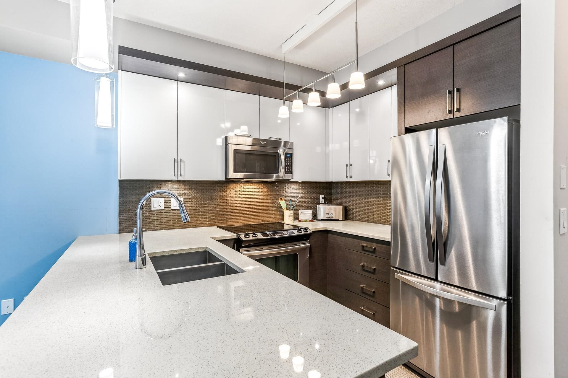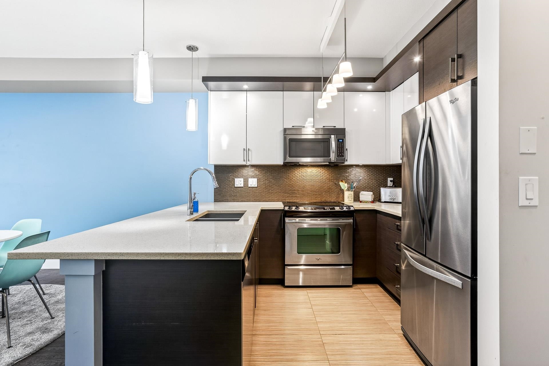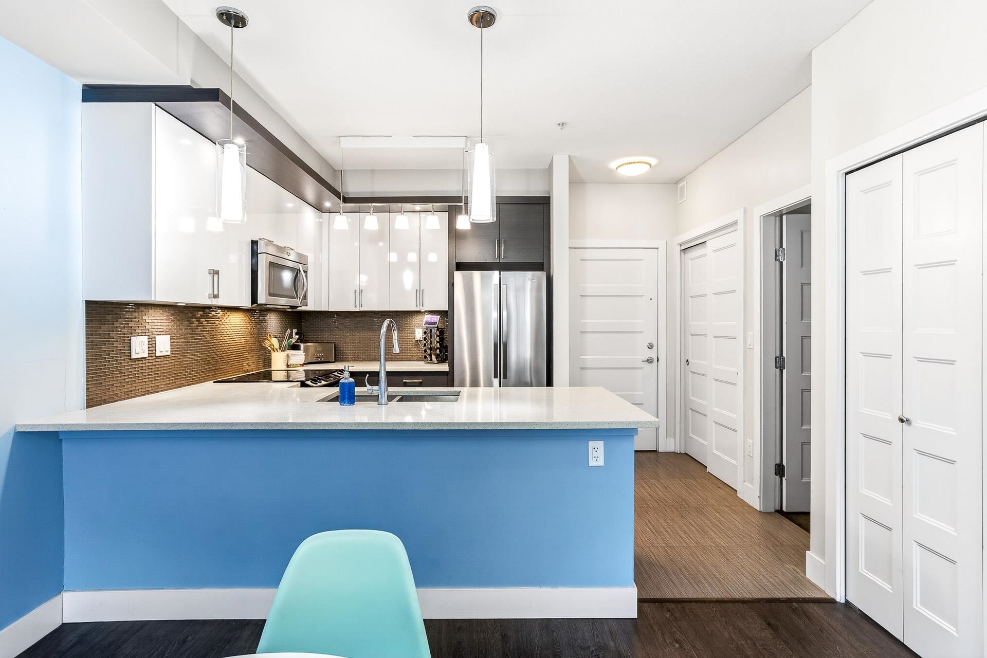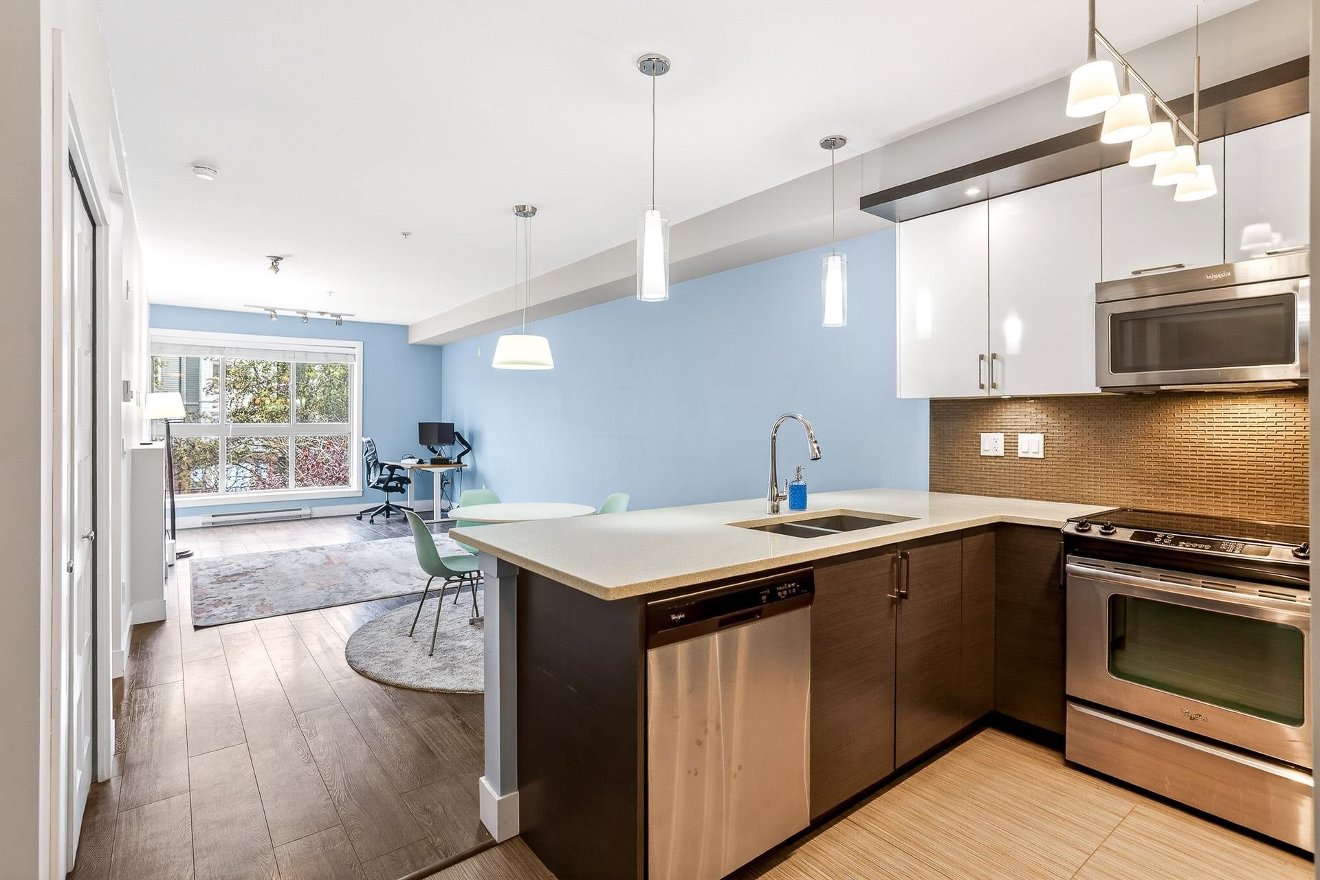 Discover this modern 1-bedroom condo in the heart of Port Coquitlam, perfect for first-time buyers or investors. The bright kitchen features quartz counters, stainless steel appliances and a large peninsula island ideal for cooking or entertaining. A spacious living area leads to an oversized den, creating the perfect home office or studio. The updated bathroom offers a sleek vanity, stylish tile work and a deep soaker tub. The well-sized bedroom provides excellent storage. In a well-managed, 10-year-young ...