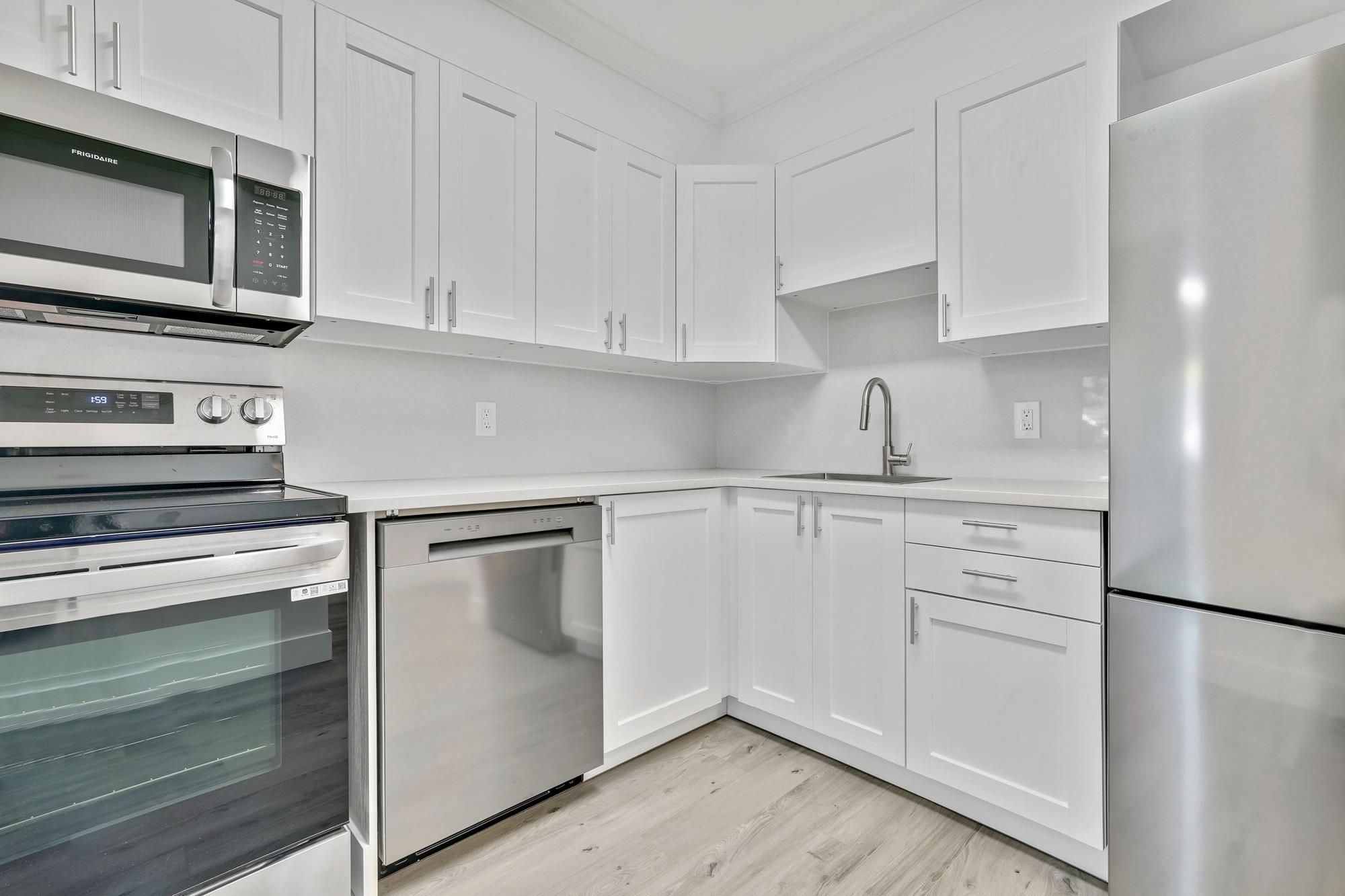 Completely updated 1 bedroom 1 bath apartment in a great location and very well maintained building. Faces a quiet, tree lined street within 10 minutes walk to Skytrain, and close to the brewery district, shops, transit, parks, Royal Columbian hospital and easy access to Hwy 1. This bright unit features SS appliances, new cabinets, new flooring, new paint and new counter tops! One storage locker and one parking spot included with additional parking on the street. Convenient shared laundries are located on e...