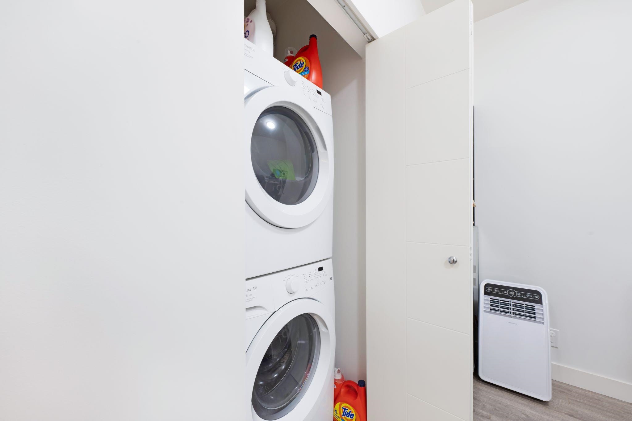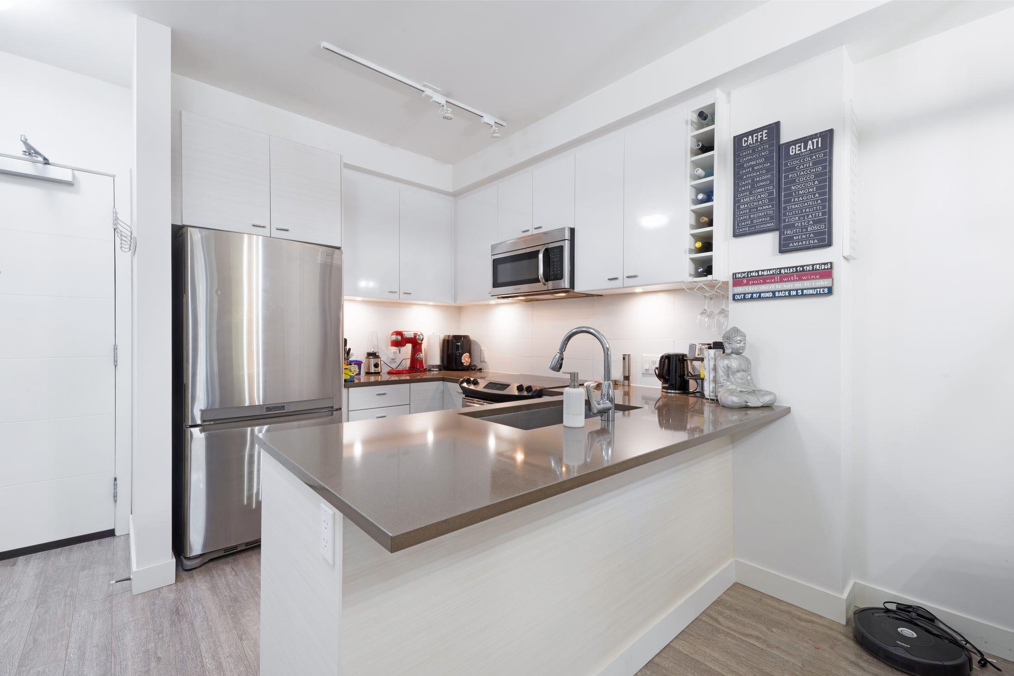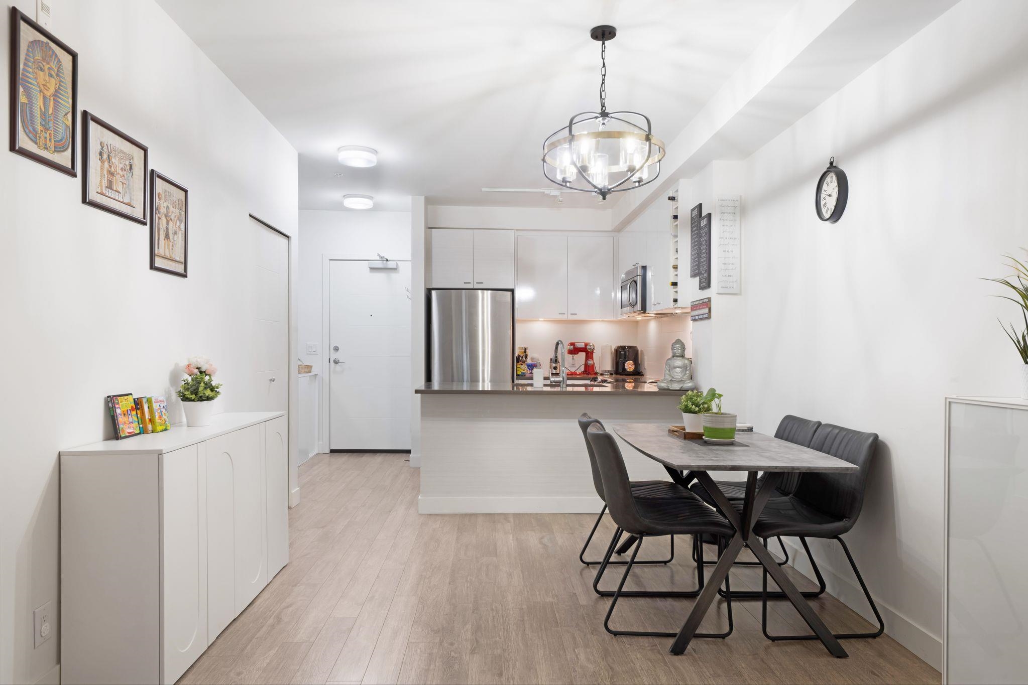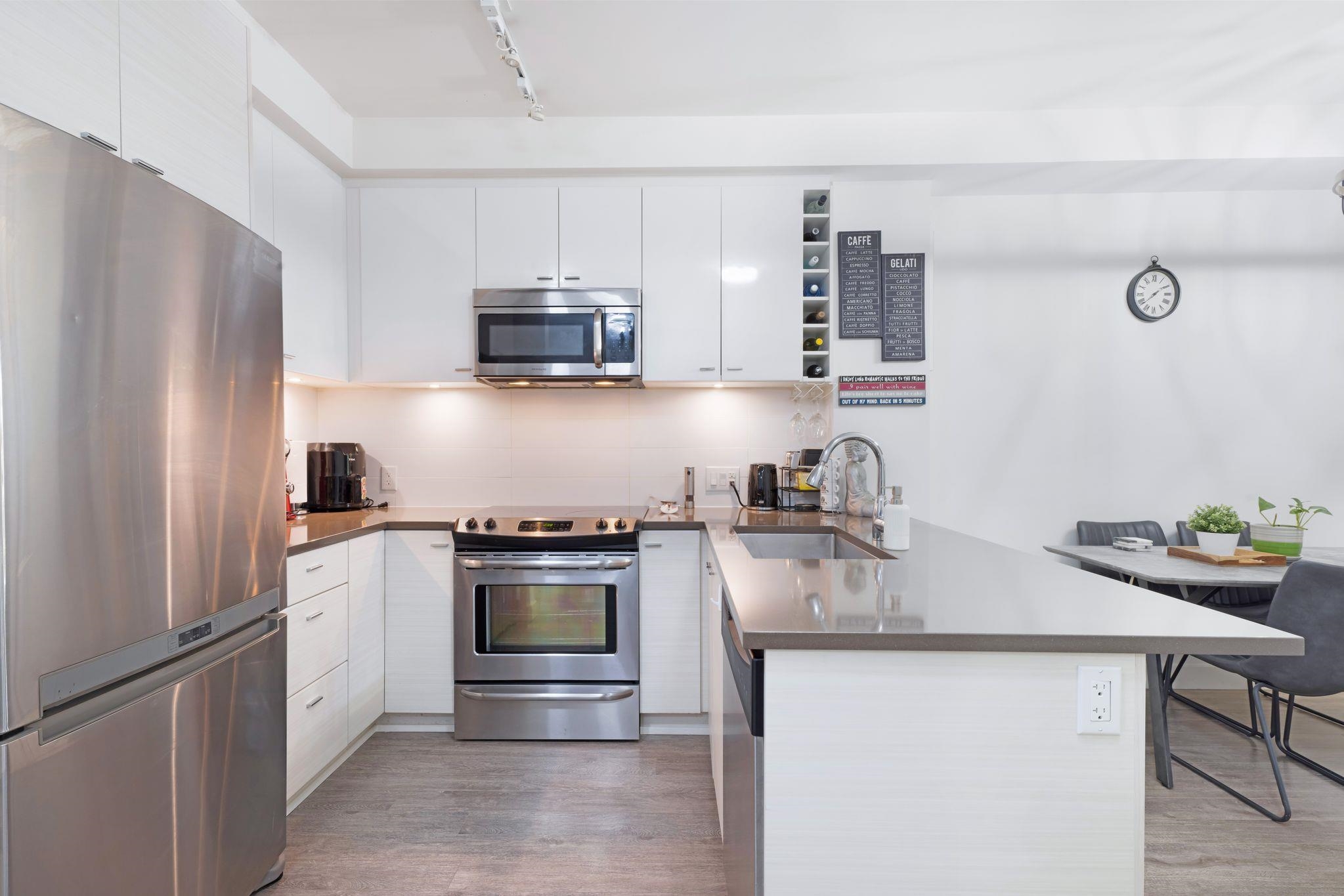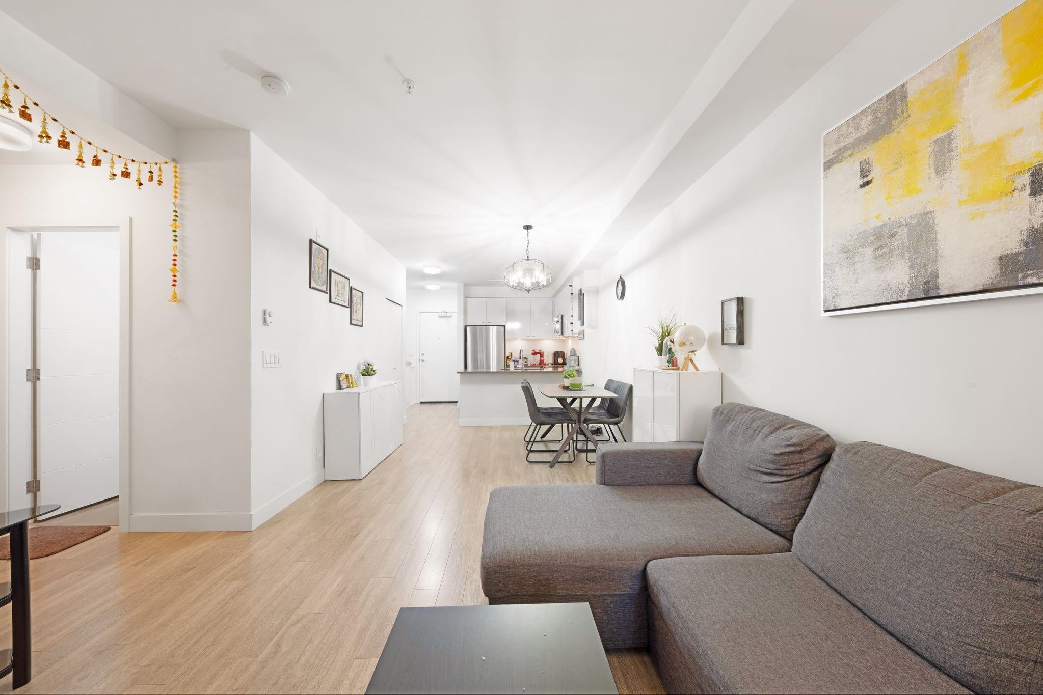 Welcome to VERVE by PORTE! Just minutes from King George Skytrain, King George HUB, Central City Mall, SFU, Future UBC & Surrey Memorial Hospital. This Quiet & Bright 1 Bedroom + Large Den home features 9ft ceilings, quartz counter top, stainless steel appliances, soft-close cabinets & a spacious breakfast bar. The den is large enough for an office or guest room. Enjoy a private balcony with a peaceful treed outlook, offering excellent privacy. Includes 1 EV Ready Parking & 1 Locker. Amenities include gym, ...