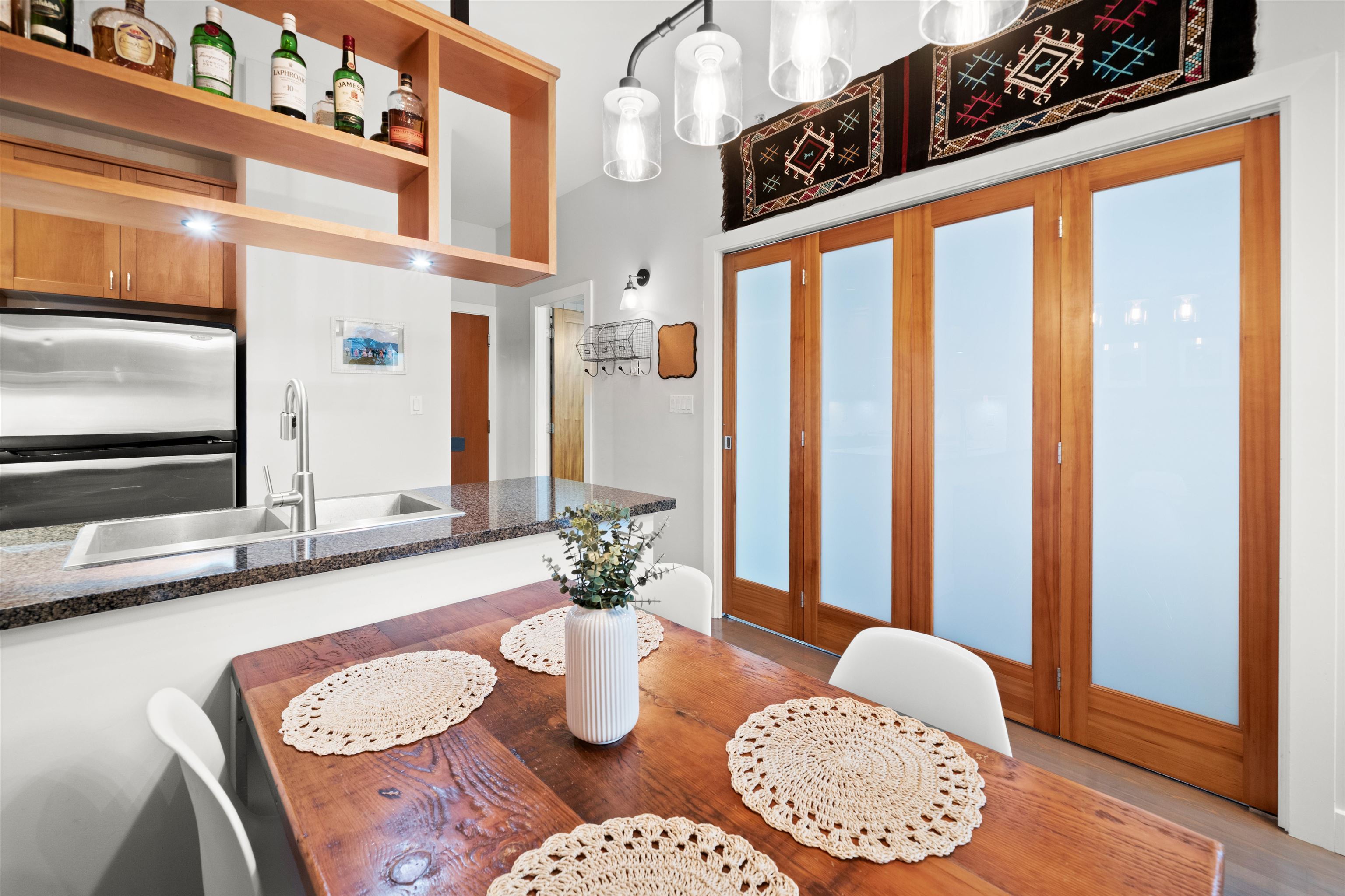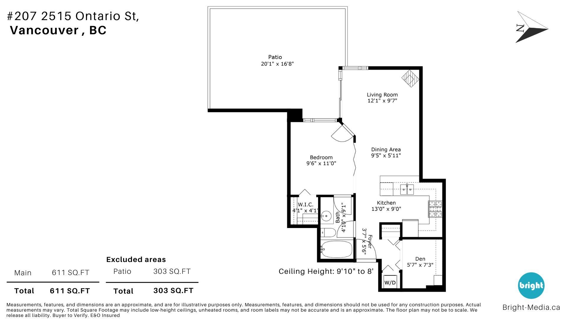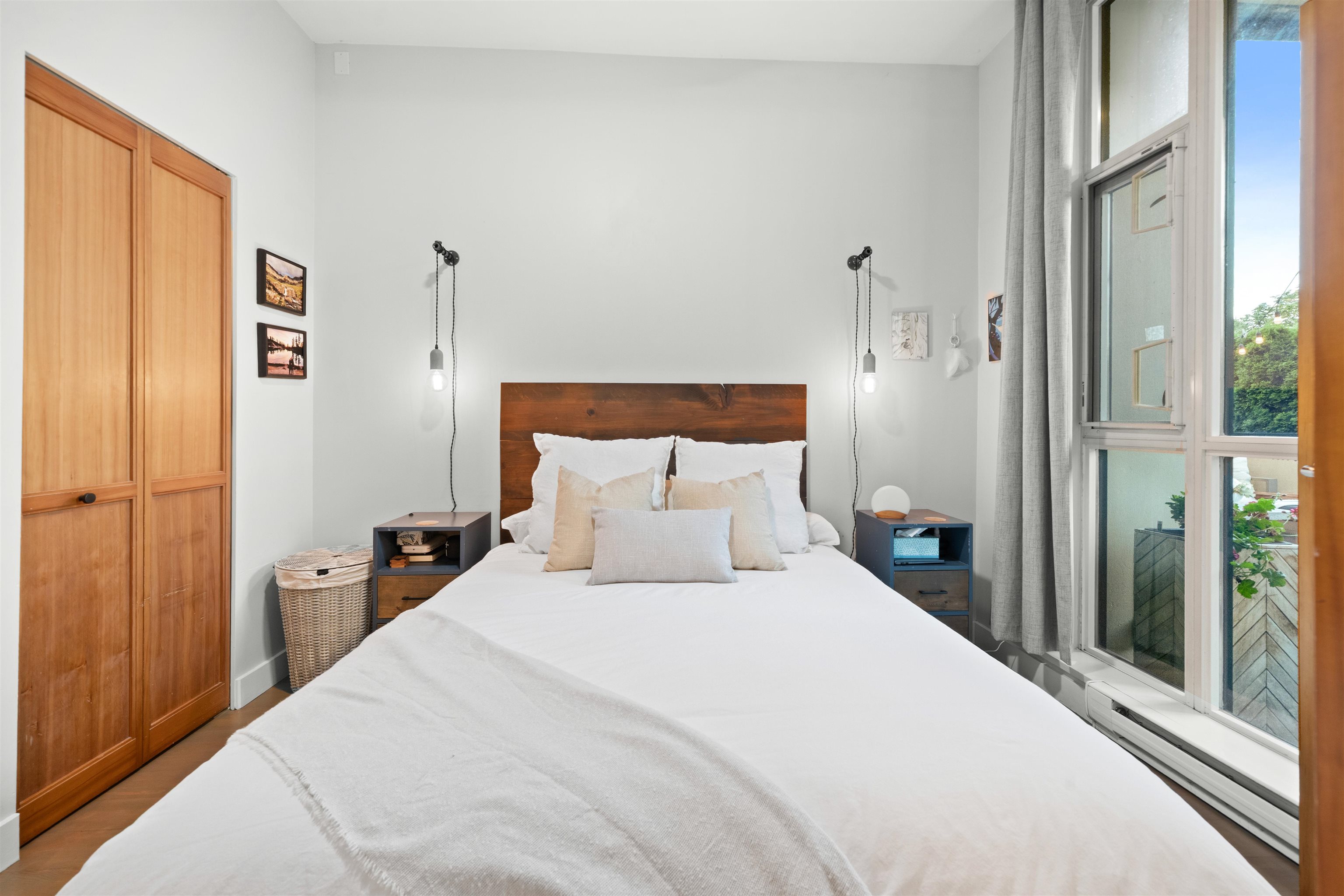 The Elements is a boutique concrete building in the heart of Mount Pleasant. This bright 1 bedroom and den home features 10 foot ceilings, hardwood floors, exposed brick, and a rare 300 square foot private patio with stunning city and mountain views. The layout is efficient with a spacious den, in-suite laundry, generous in-unit storage, and one secured parking stall. Just steps from cafes, transit, breweries, and Olympic Village. A perfect blend of character, solid construction, and lifestyle location.