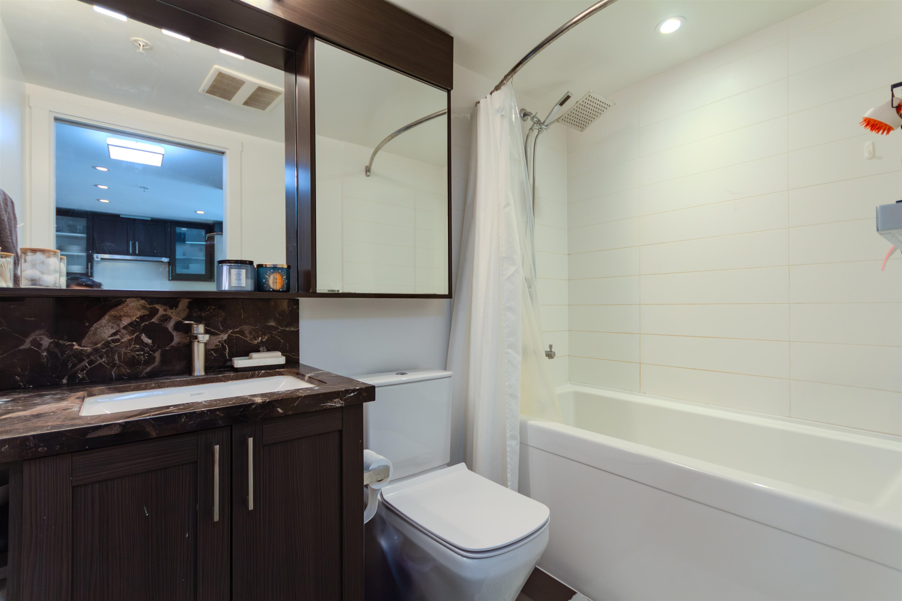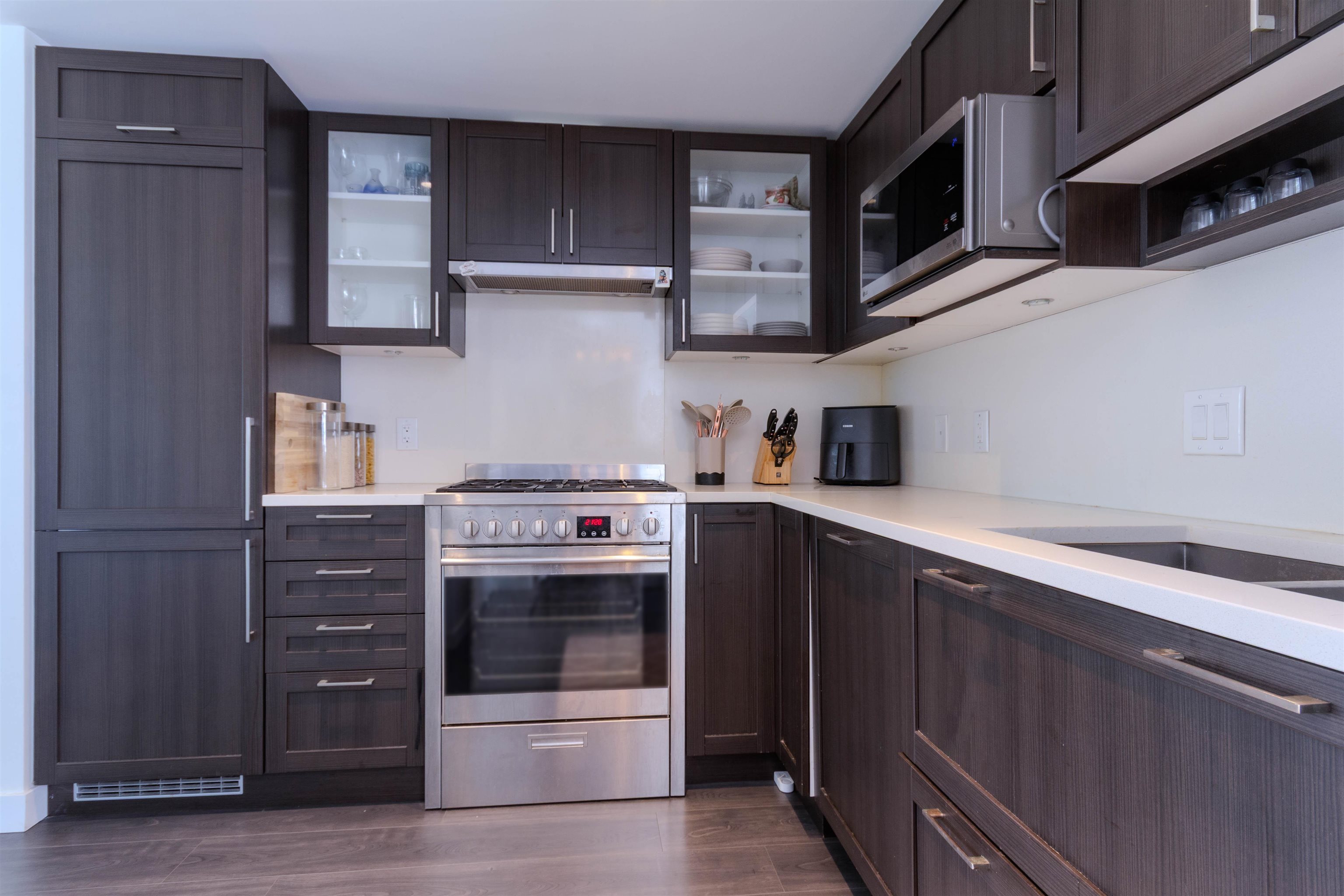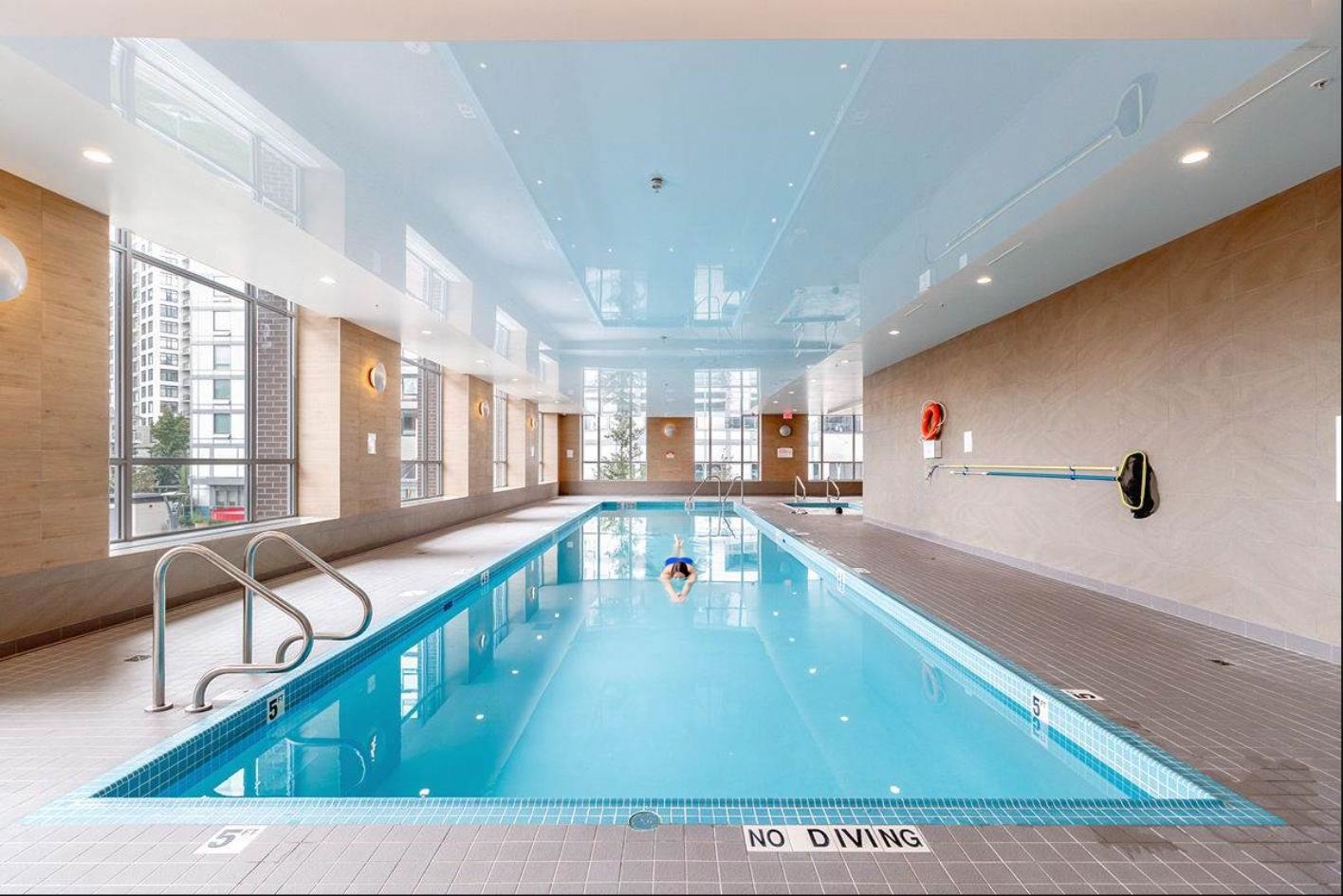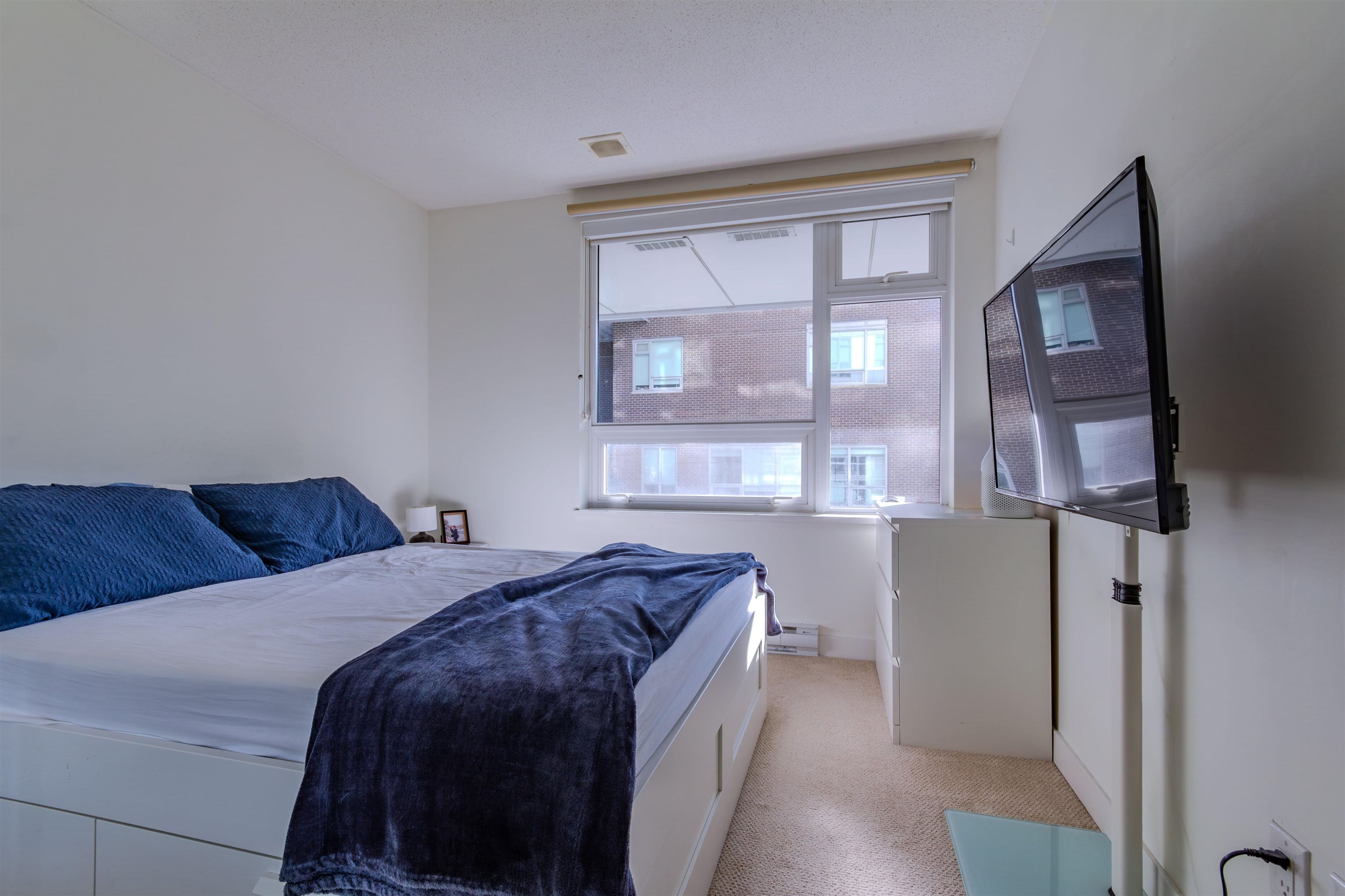 Welcome to Wall Centre Central Park! This modern 2 bedroom plus Den + 1 bath corner unit home boast 761SF of living space with SW facing corner windows. Premium kitchen has integrated walnut-panel appliances (fridge and dishwasher) framing white quartz countertops. Patio and Dining room flows nicely into living room with a bright living area that is surrounded by large corner windows. 2 non-adjacent bedrooms and den provide a sense of privacy - perfect for both relaxing and working from home. Enjoy resort ...