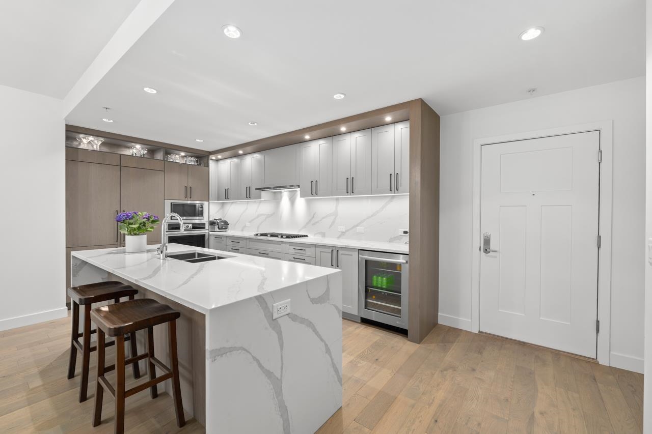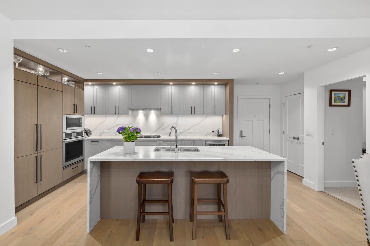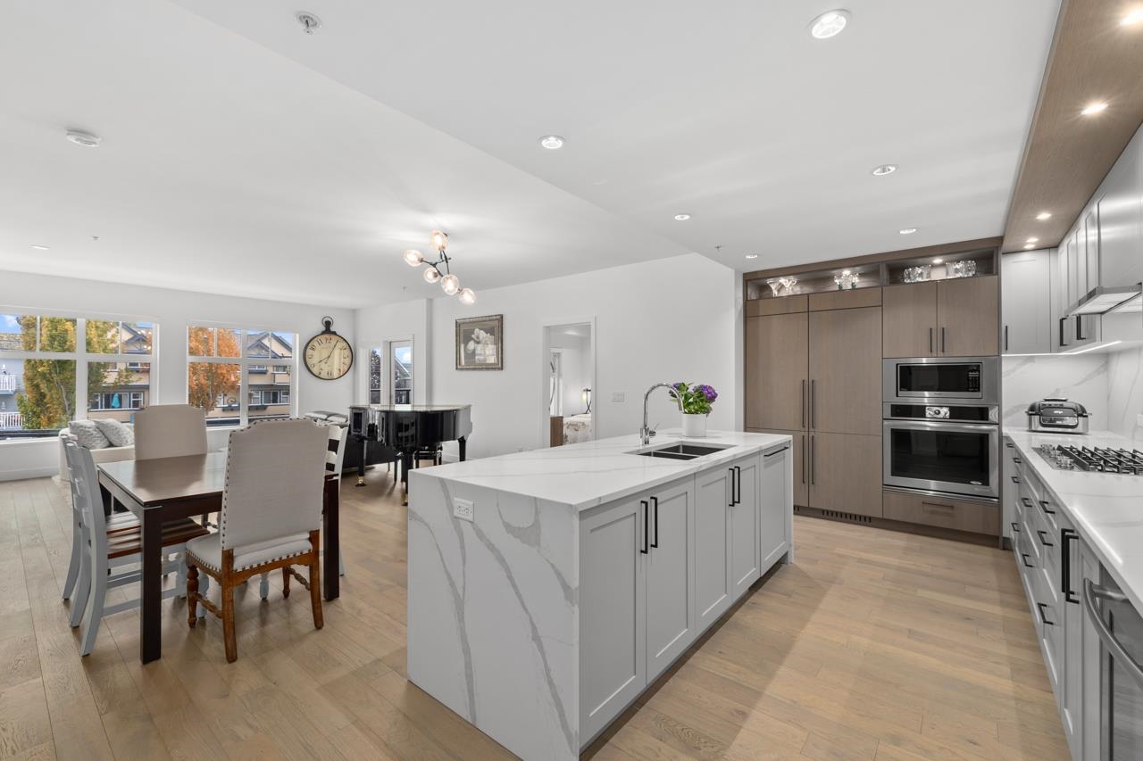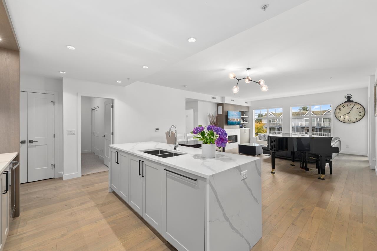 Immerse yourself in the elegance of coastal living with this luxurious 3-bedroom, 2-bath residence perfectly situated in the heart of Steveston Village. Designed for the discerning homeowner, this stunning home showcases a gourmet kitchen equipped with high-end Jenn-Air appliances, an impressive waterfall island with exquisite stone countertops, and abundant cabinetry. The expansive open-concept floorplan offers seamless flow between living and dining areas, enhanced by 9-foot ceilings, wide-plank hardwood ...