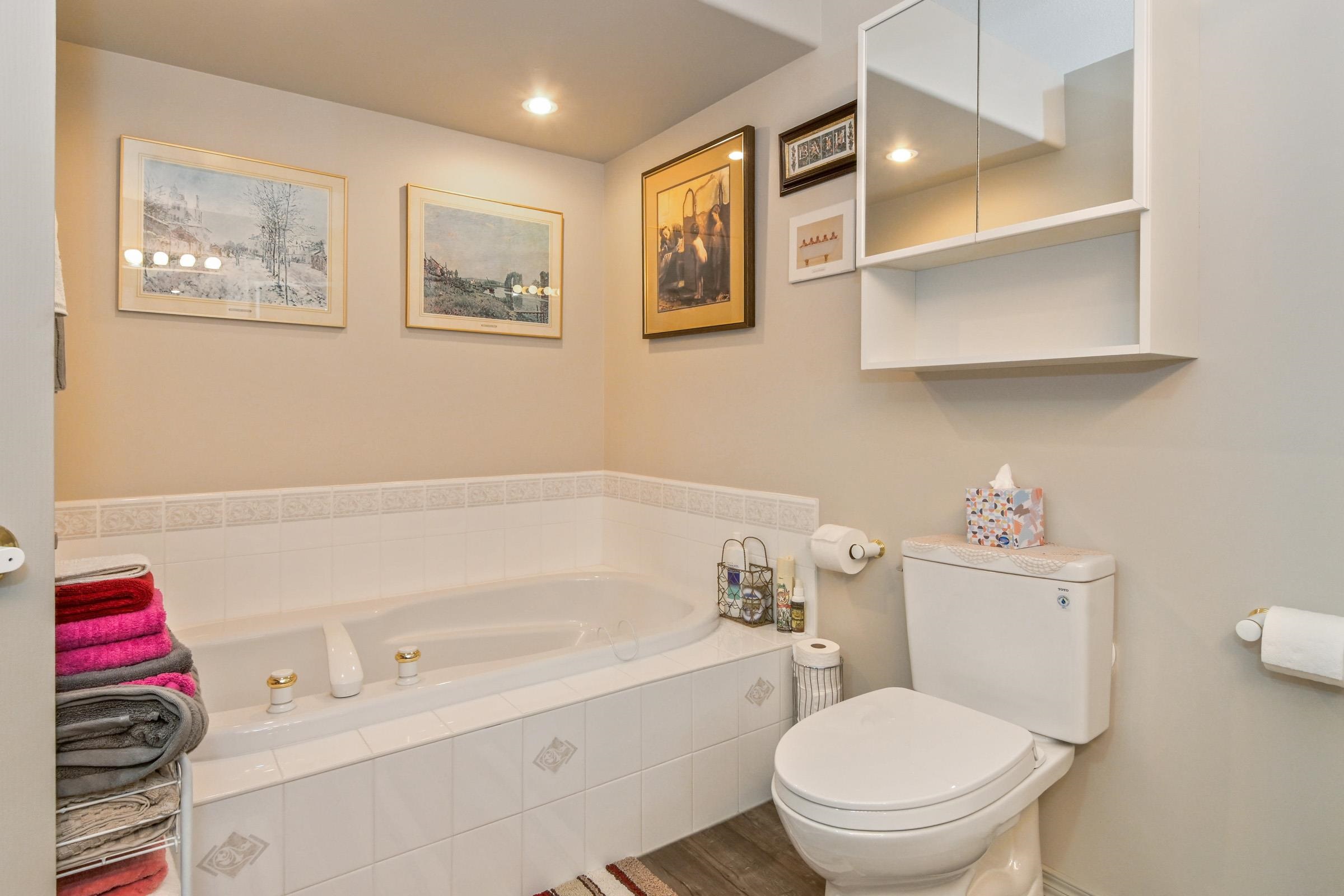 SPACIOUS LEVEL ENTRY duplex style end unit rancher w/fully finished walk-out daylight basement in KARLAN BUILT highly coveted SLATER RIDGE ESTATES. This IMMACULATE, ORIGINAL OWNER HOME shows like new and has been extensively updated & features: the primary bedroom with a spa like ensuite on the main plus a second bedroom; modern kitchen with stainless steel appliances & sundeck w/gas bbq hookup & Mt Baker views; bright living room w/gas fireplace & formal dining room. Downstairs you will find the ENTERTAINE...