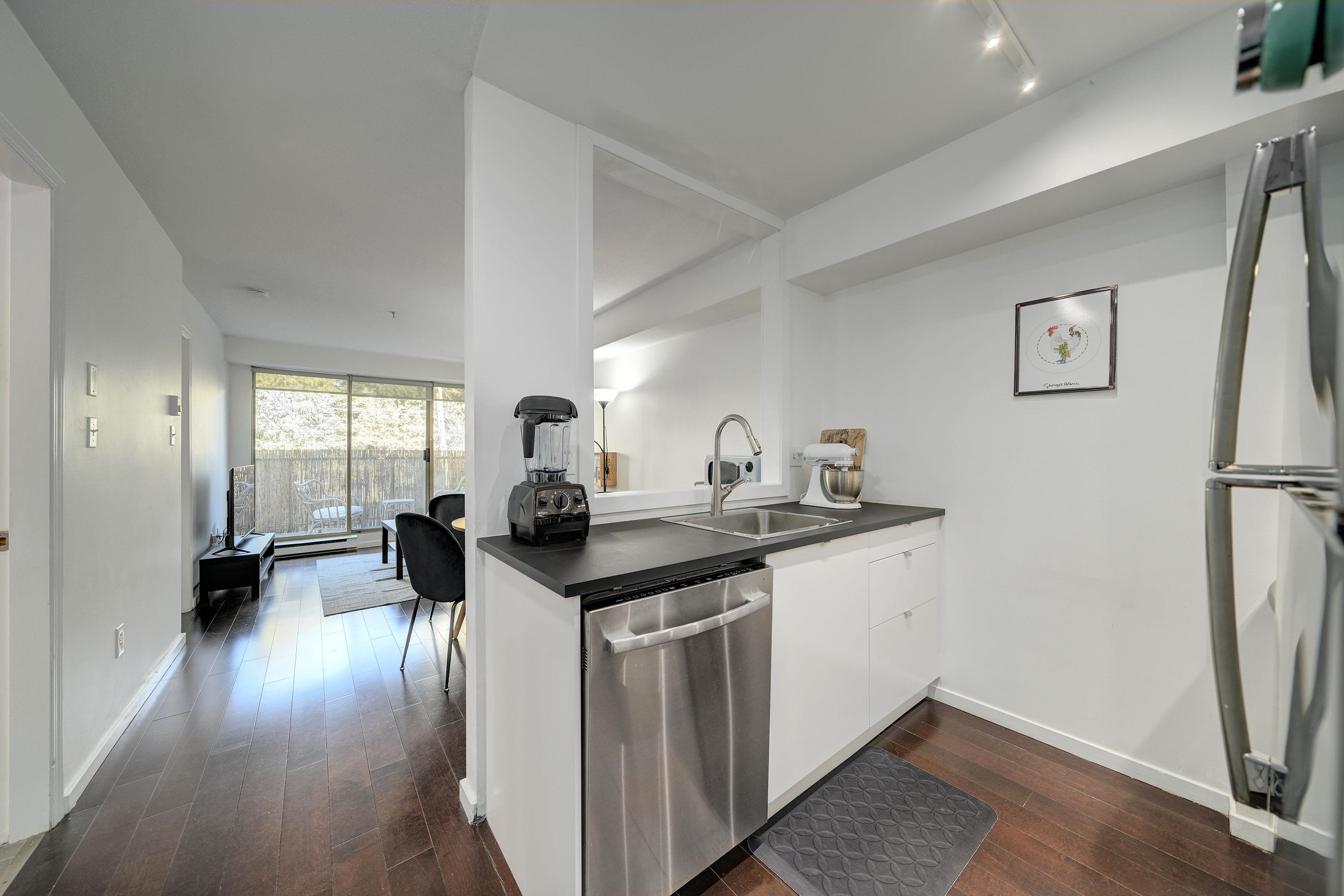 MOUNT PLEASANT opportunity - investment or first-time. This open-concept unit has been thoughtfully renovated, with updated kitchen, white cabinetry, s/s appliances, tile, and a pass-through to the main living area. The bathroom features a nice soaker tub, new cabinetry, storage, lighting, and lots of tile. Laminate floors are installed throughout, plus in-suite laundry. The primary bedroom is spacious and will accommodate a king-size bed and other furniture. Balcony accessible through a large picture windo...