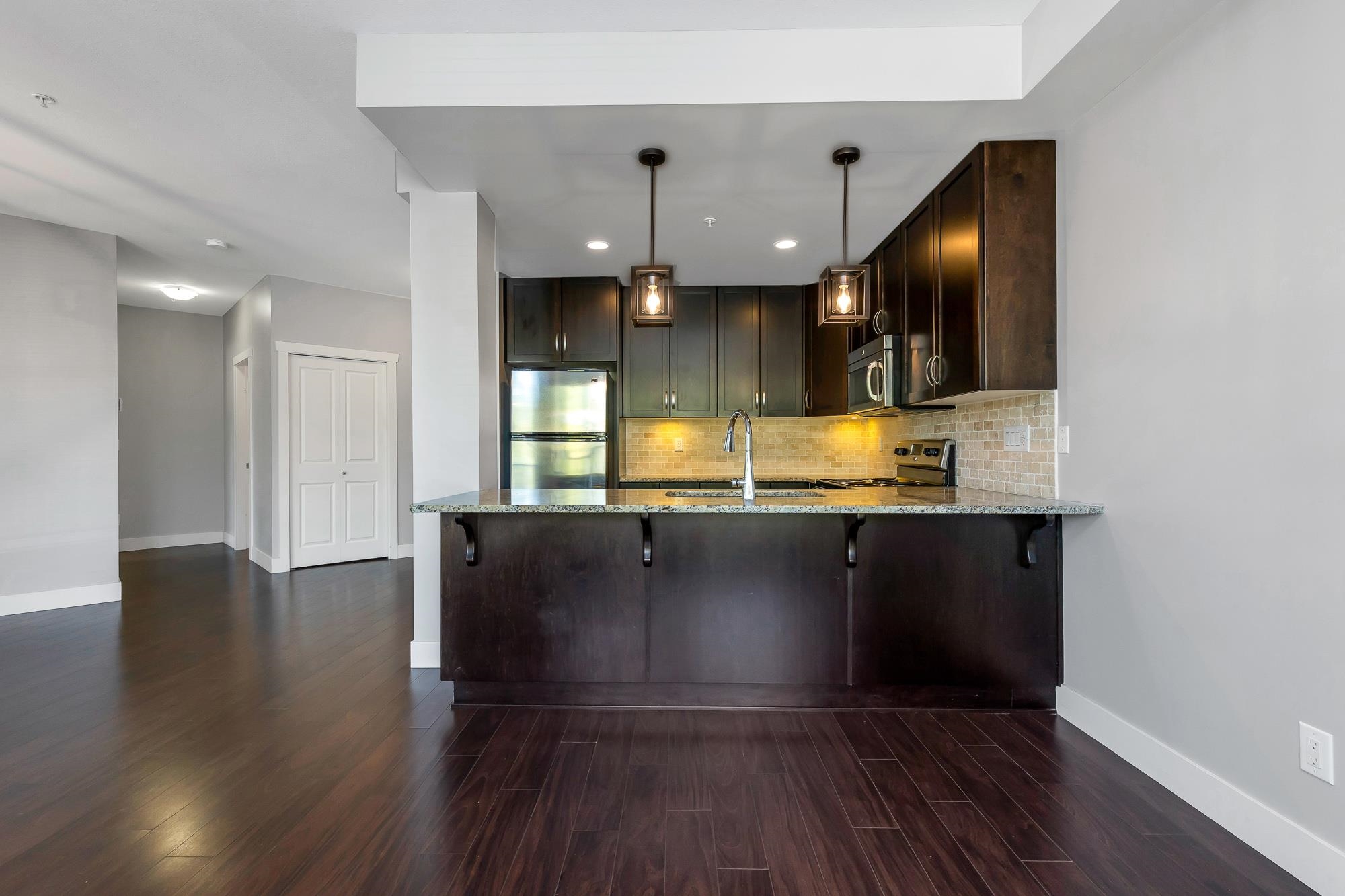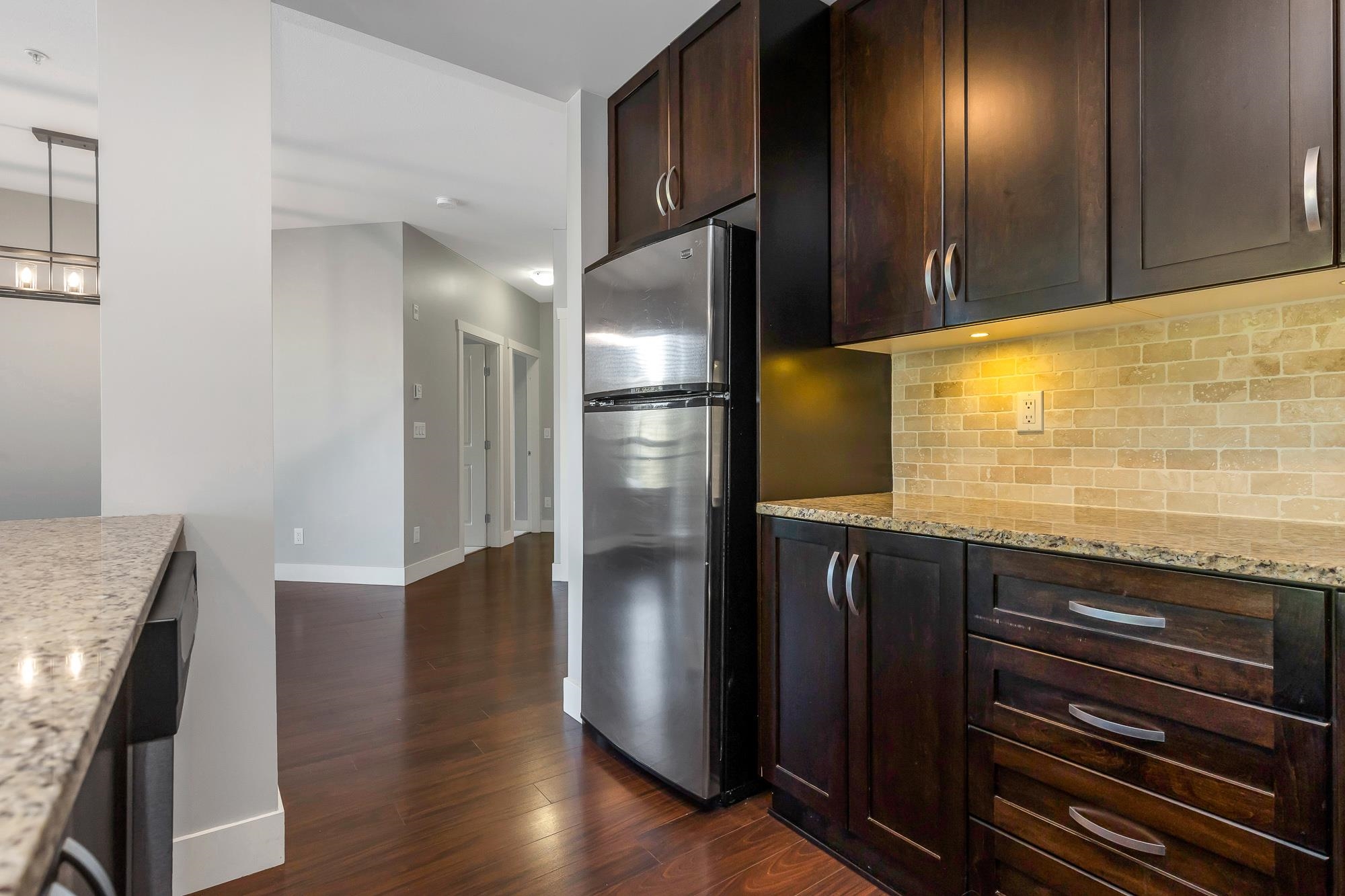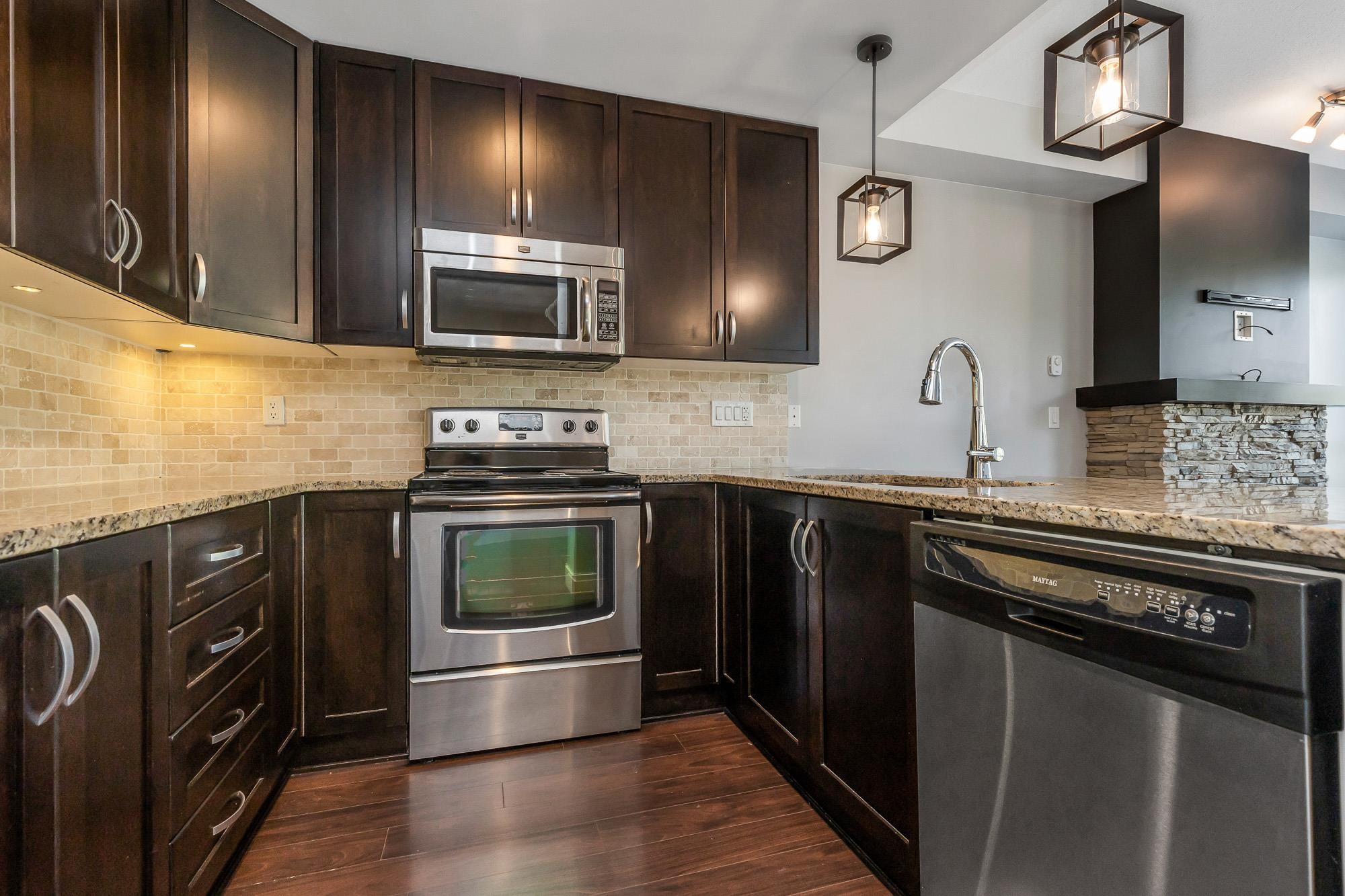 he Brooklyn is a sought after development, conveniently located in Central Abbotsford. This spacious unit features 9' ceilings, 2 large bedrooms and a Den! The open concept creates space for entertaining, a dining area and more. You will love the natural light, this home has large windows with no neighboring units in view. The finishes are spectacular, including granite counter tops in the kitchen, a rock fireplace detail with mantel and a 5-piece ensuite bathroom off the primary bedroom. You won't see many...
