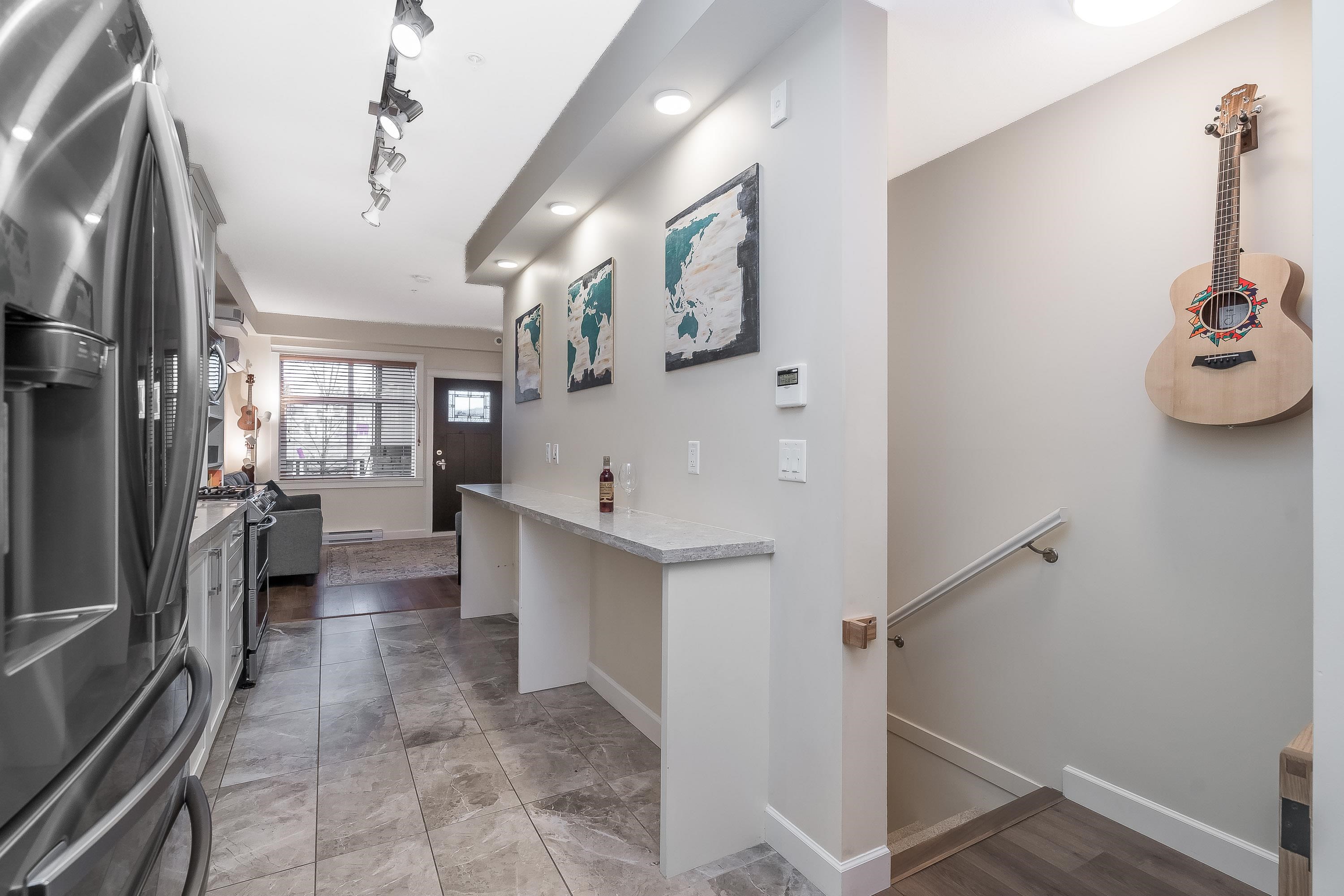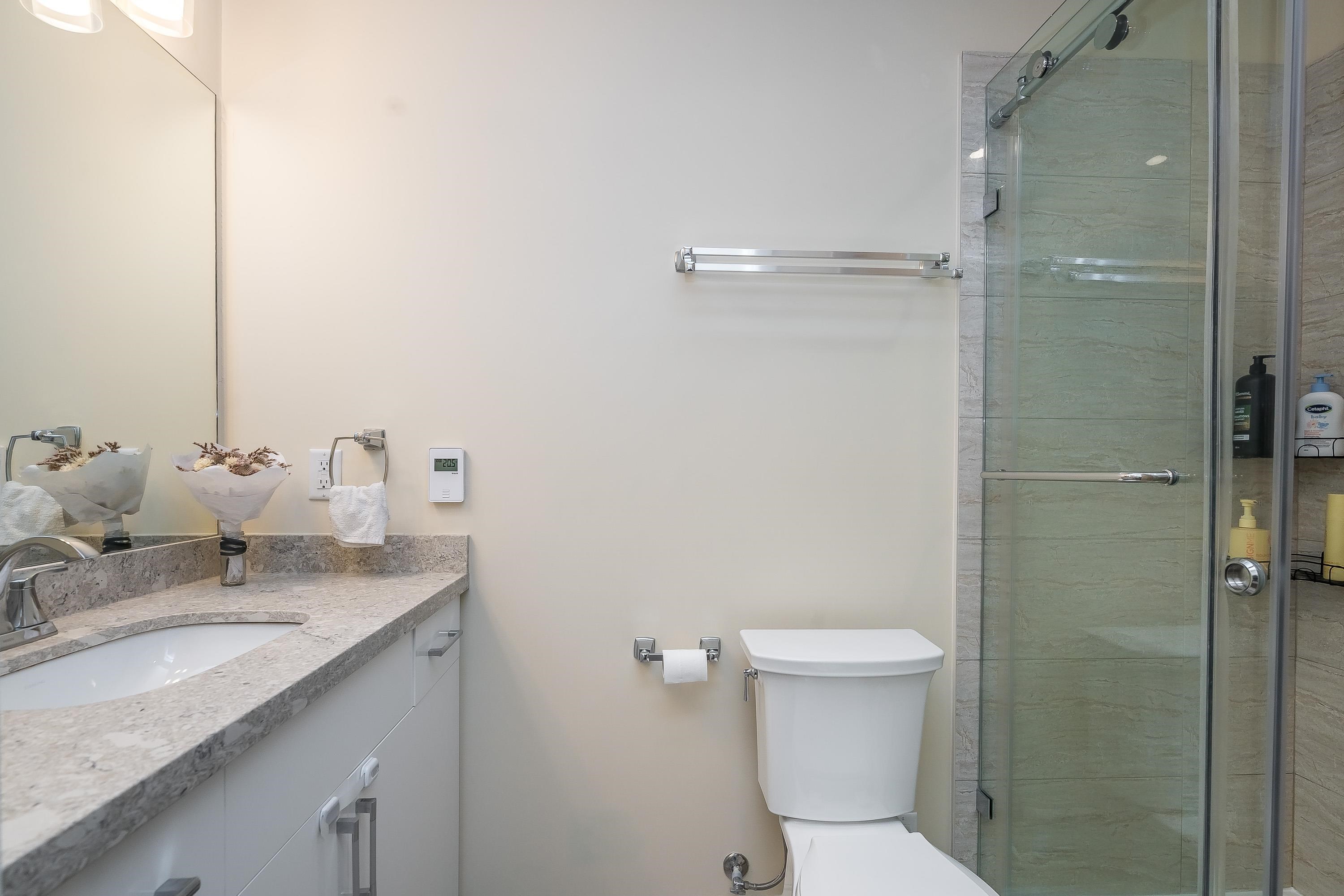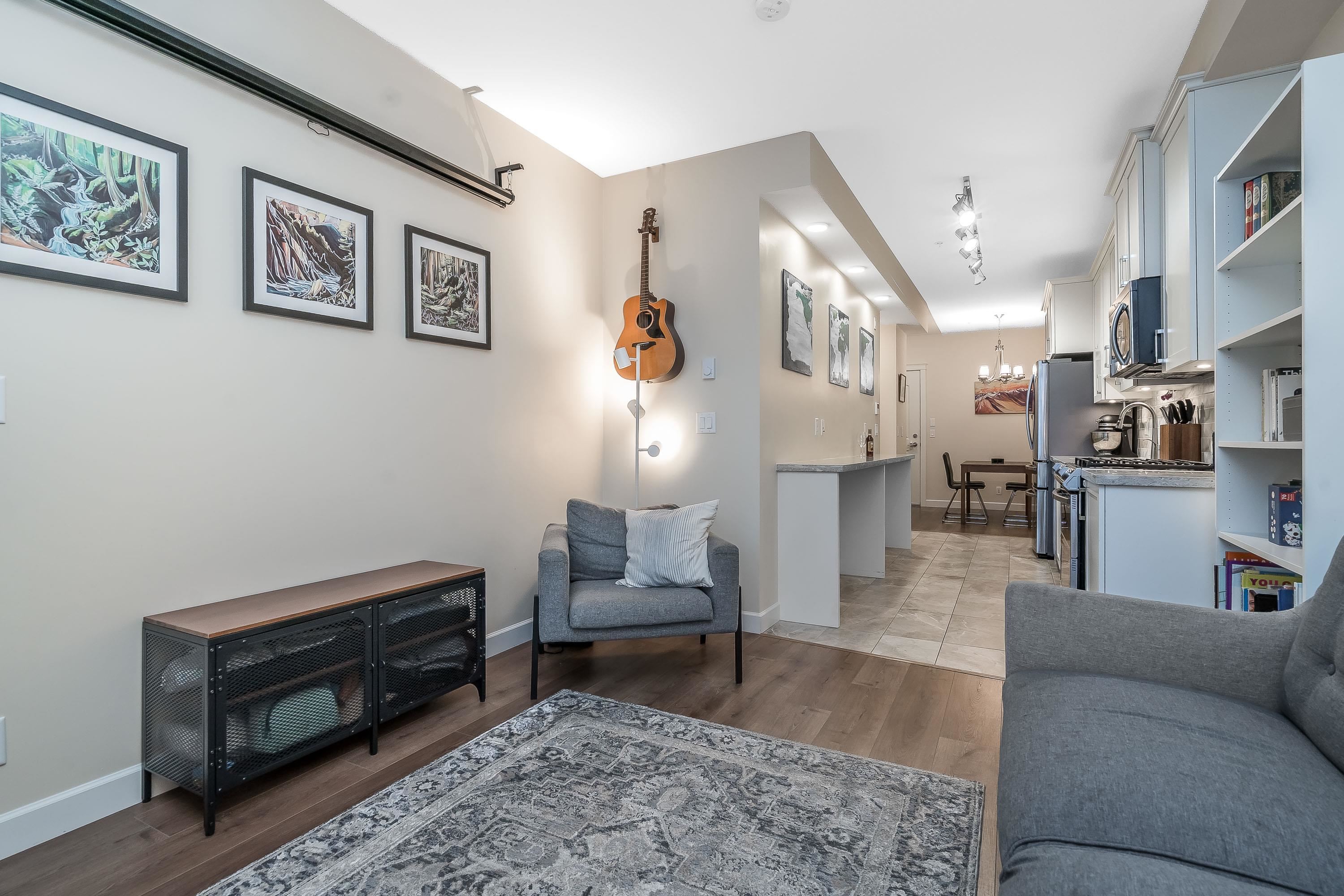 Wow, this is a rare find! Its more like a townhouse than a Condo. Your own door onto a peaceful deck, with direct access to street parking. Inside you have two floors both with 9 foot ceilings, upstairs you have a bright south facing living room, kitchen and dining room, down stairs you have an outdoor patio and two bedrooms and a washroom with heated floors and "Rain" shower. Each level is air- conditioned and is in excellent condition. The Kitchen comes with Wi-fi appliances and you have a gas range with ...
