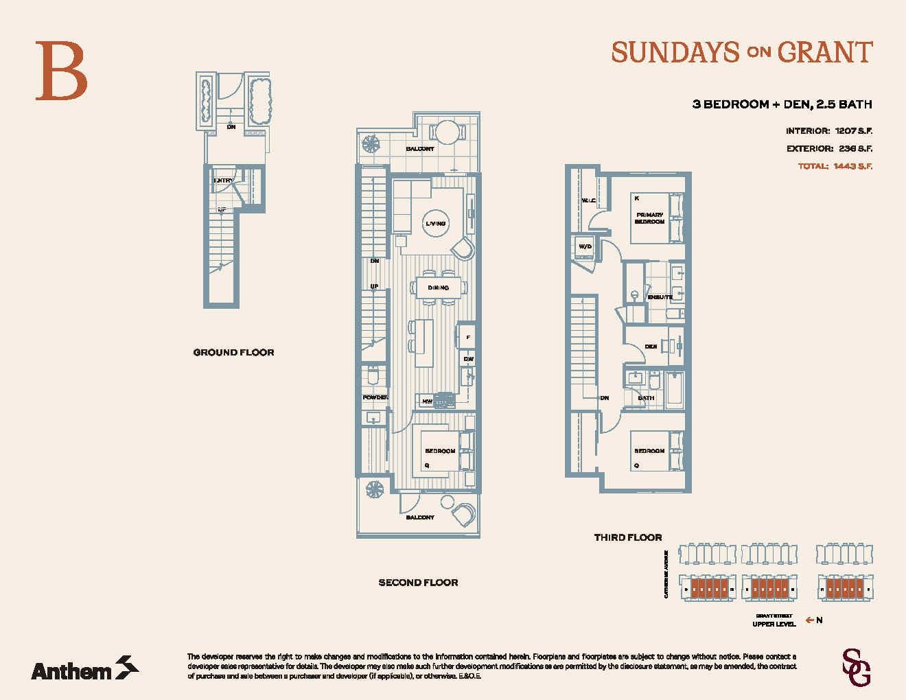 Welcome home to Sundays on Grant by Anthem, a modern community in a quiet, family-friendly pocket of West Coquitlam just 5 minutes from Burquitlam SkyTrain, shops, restaurants, and the YMCA. Located a short walk from Miller Park Elementary, Banting Middle School and the trails at Chines Park. This efficient 1,207 sf 3-bedroom + den townhome features a highly functional layout with a main-level bedroom with private balcony, convenient powder room, open-concept living and dining area, contemporary kitchen wit...