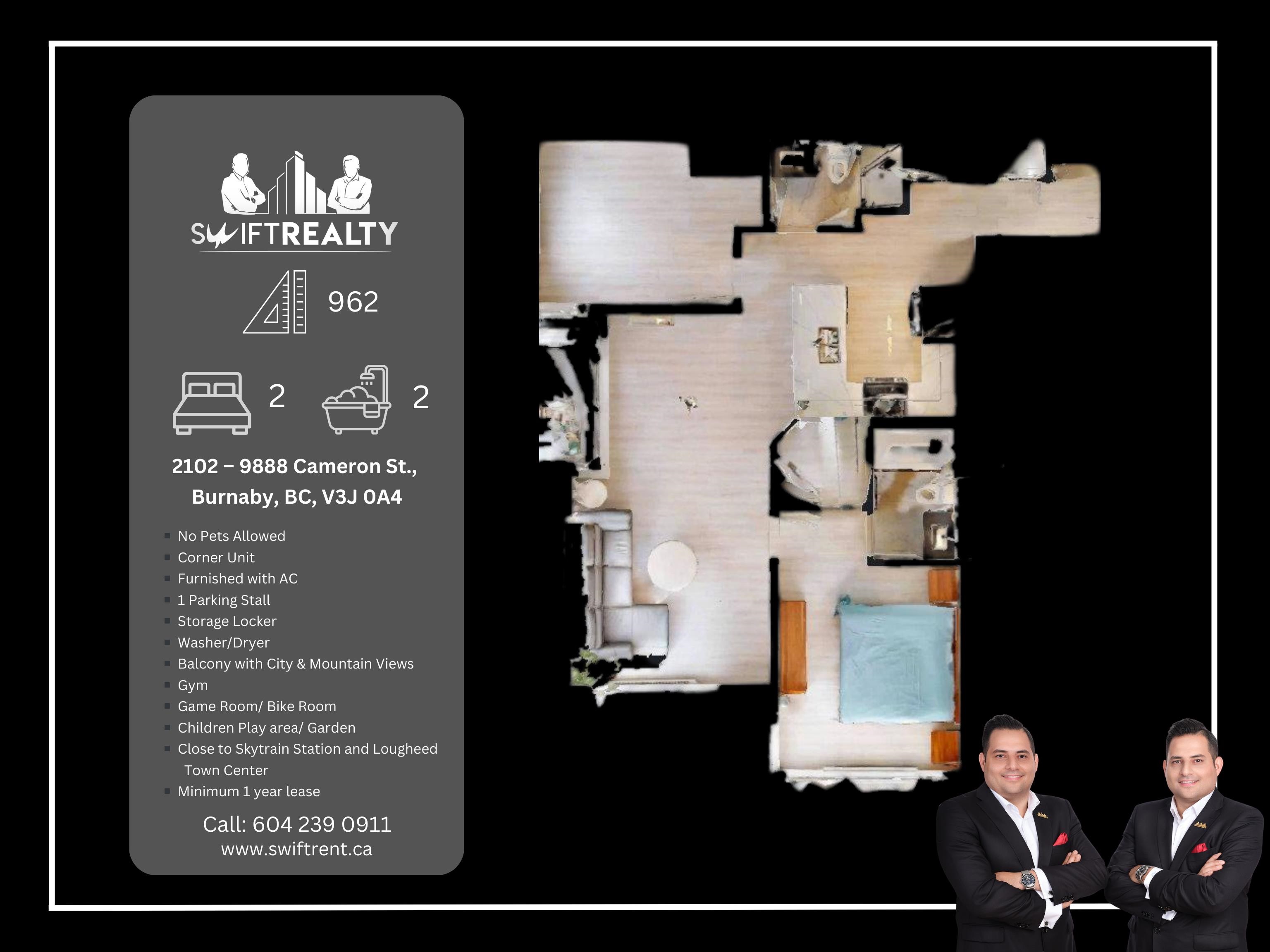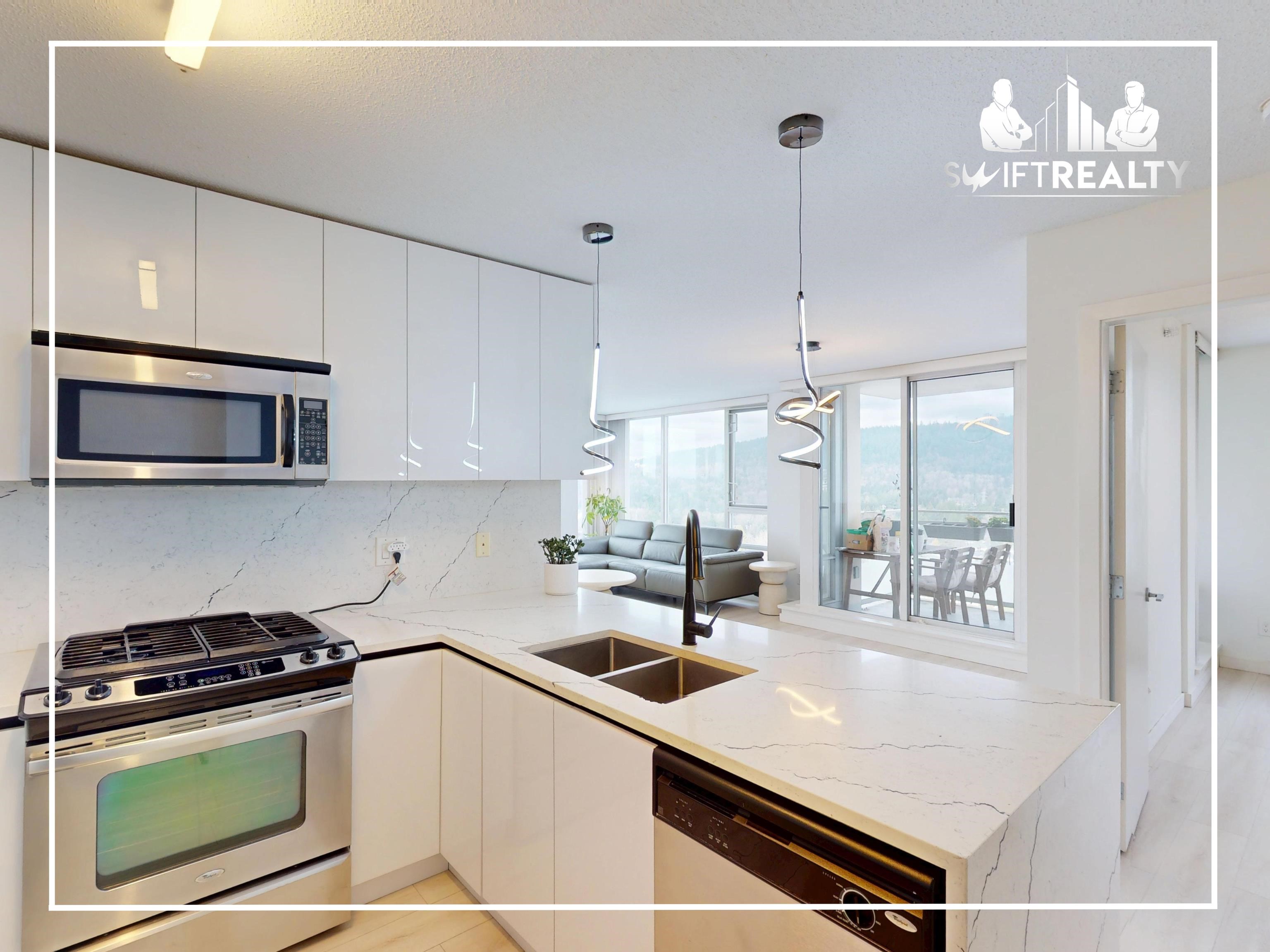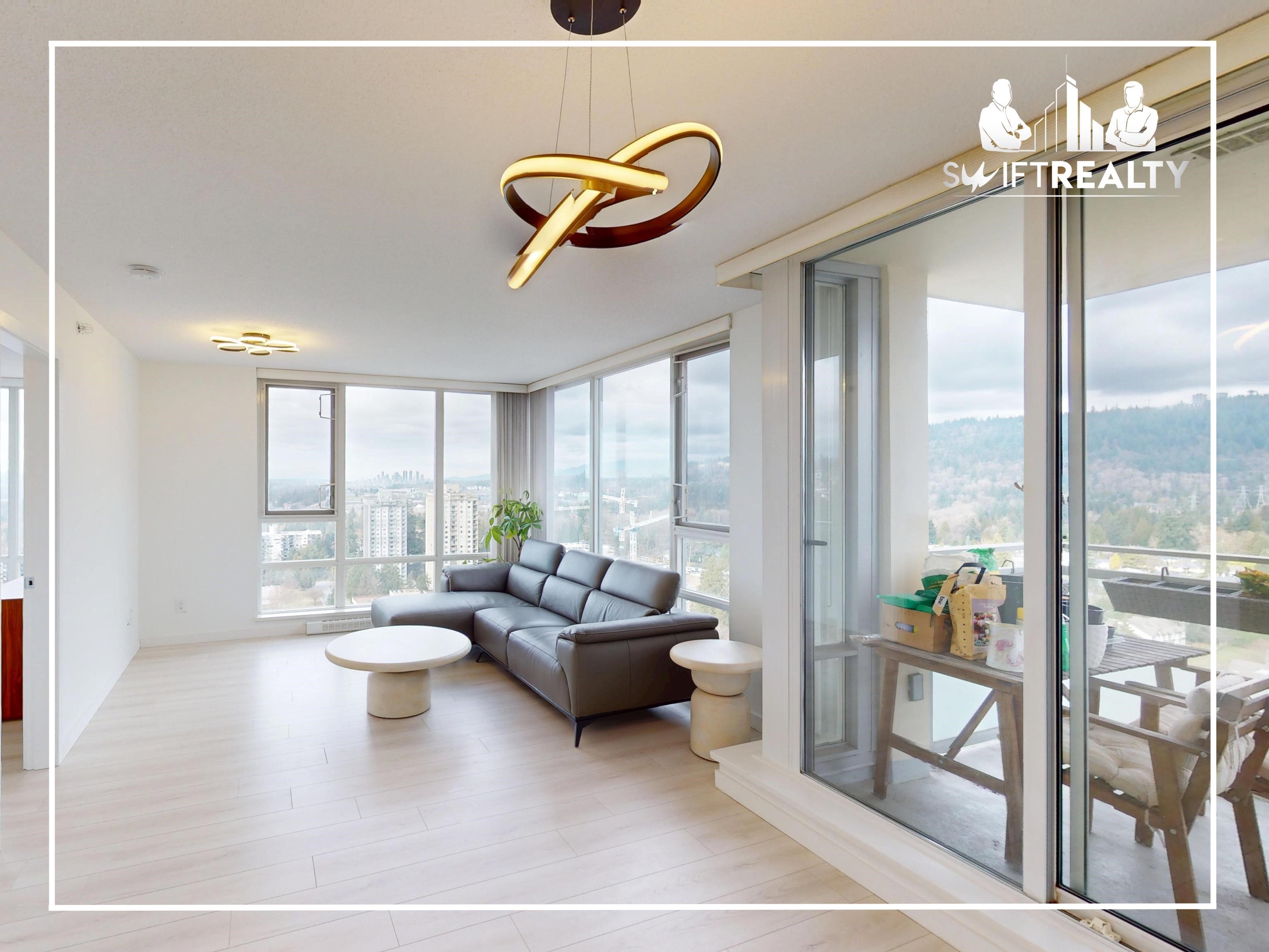 Welcome to Lougheed Town Centre! This furnished 2BE, 2BA corner unit at Silhouette South Tower offers a bright, well-designed layout featuring laminated flooring, high ceilings, and a balcony with city &mountain views. The kitchen includes granite countertops and s/s appliances, complemented by an A/C and in-suite washer and dryer. The unit comes fully furnished and includes 1 parking stall and a storage locker. Residents enjoy access to quality amenities such as a gym, games room, guest suite, landscaped g...