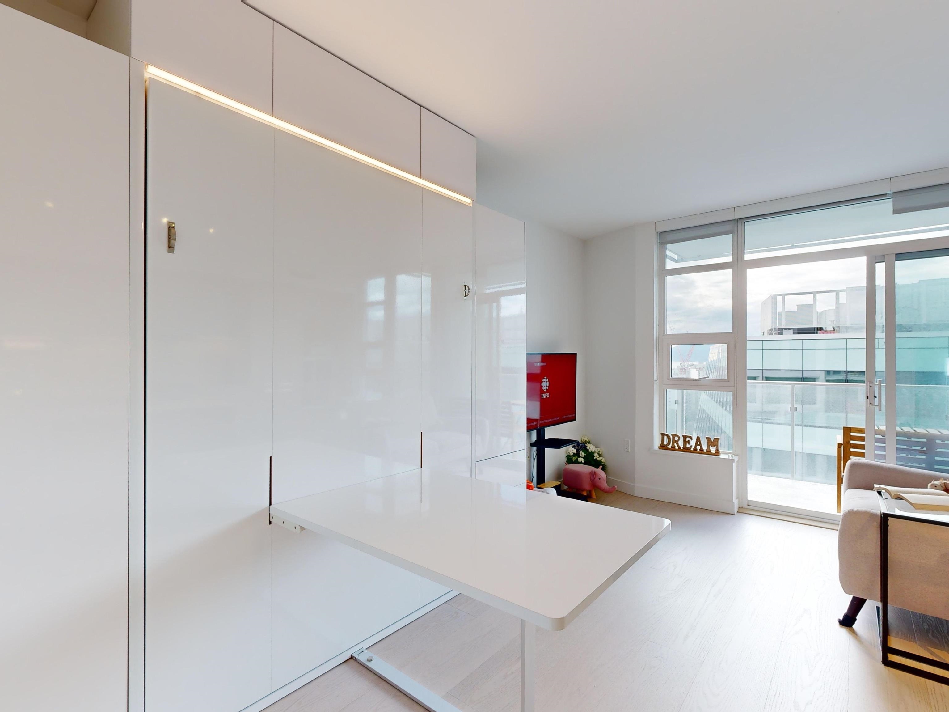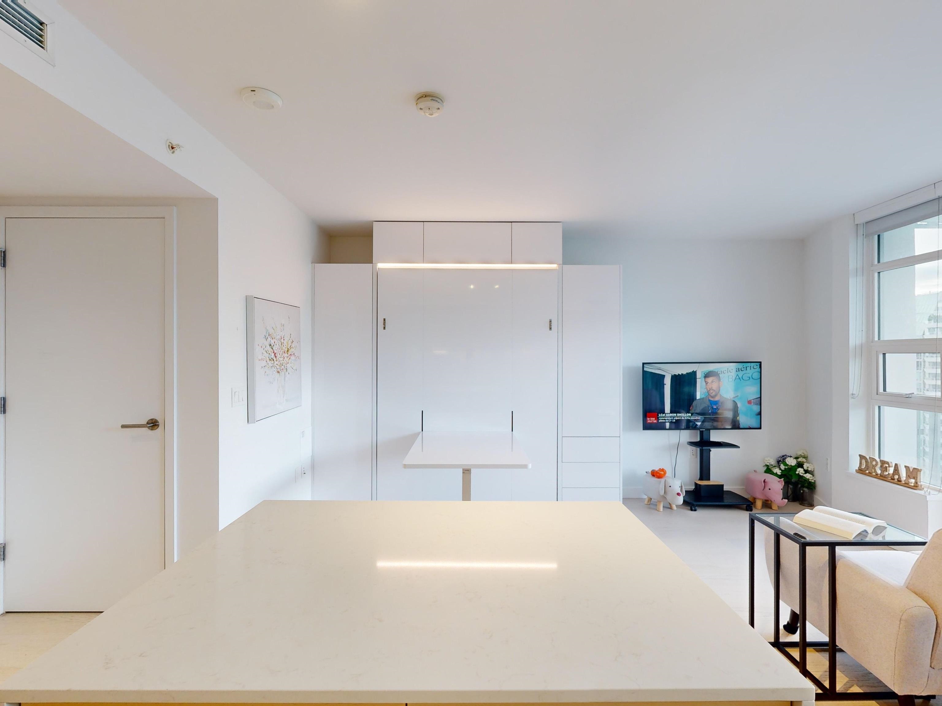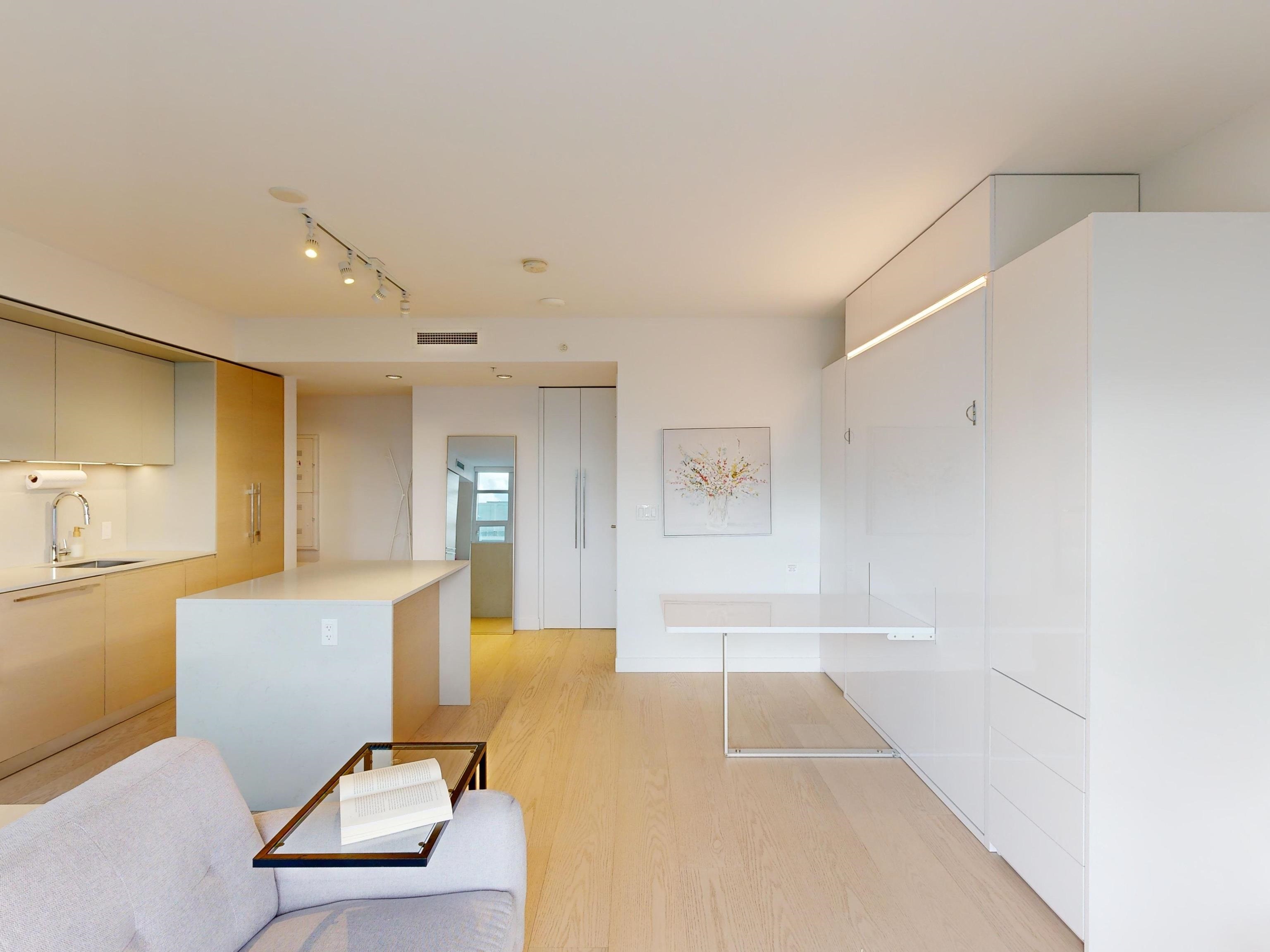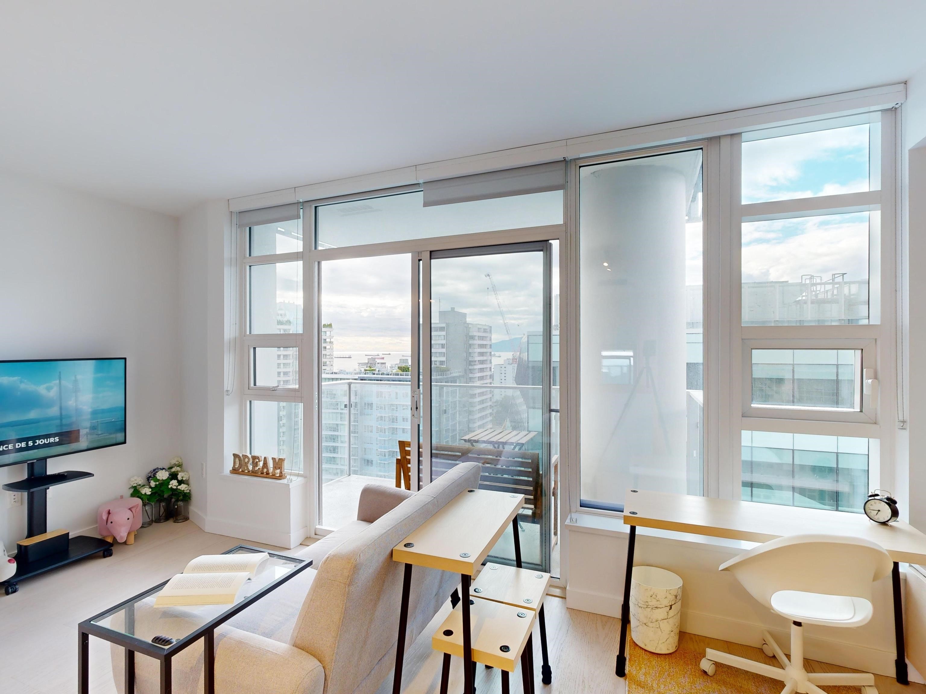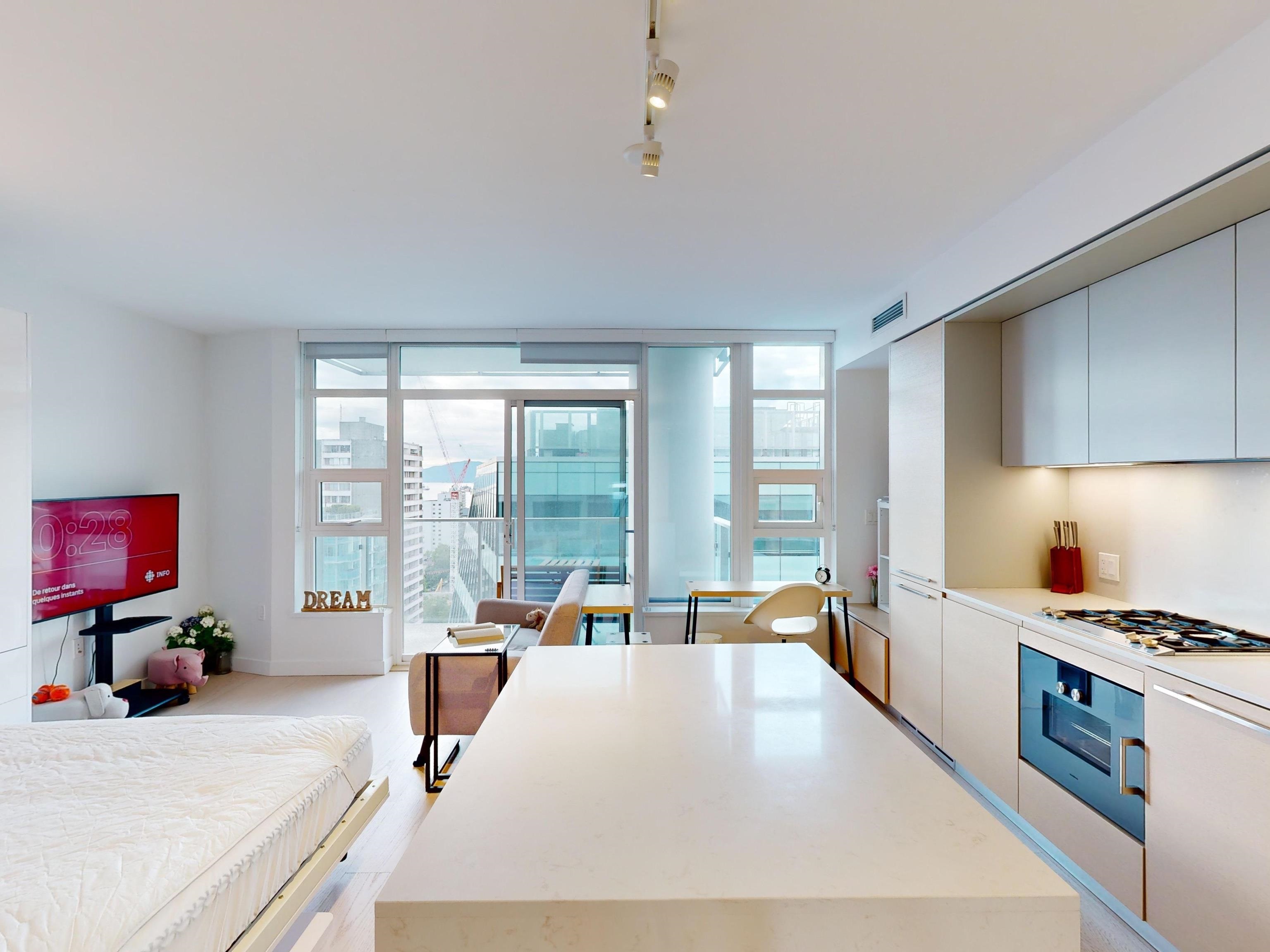 Enjoy ENGLISH BAY VIEWS in this very well laid out studio at One Burrard that feels larger than square footage suggests. Built in 2022 and featuring custom murphy bed/dining table, high end Gaggeneau appliances, engineered hardwood flooring throughout, air-conditioning, Duravit wall mount toilet, smart home controls for temp/lighting, quartz counters. Some of the best amenities of any building including: 24/7 concierge, swimming pool, sauna, steam room, hot tub, exercise gym, indoor/outdoor dining rooms, yo...