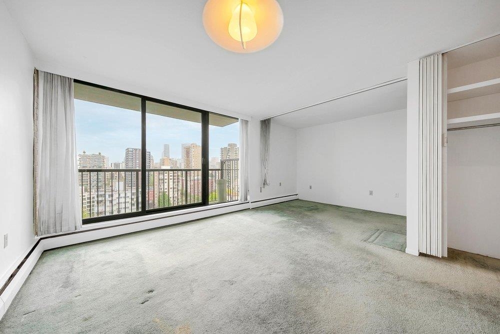 West End gem! Mountain+ city views in concrete bldg w/balcony + outdoor pool. Stunning top floor studio unit on quiet tree-lined street, steps from beach+ seawall, evening sunsets+ unobstructed stellar views. A 7+ Million Restoration Project was COMPLETED, including NEW Windows & Doors, Concrete Exterior, Paint, Balconies, Roof, Pool & Parking Membrane. Secure u/g Parking, Storage locker, new motorized roller blinds. Pre-paid leasehold non-strata expires Dec.31,2073. Maintenance fee includes heat/hot water/...