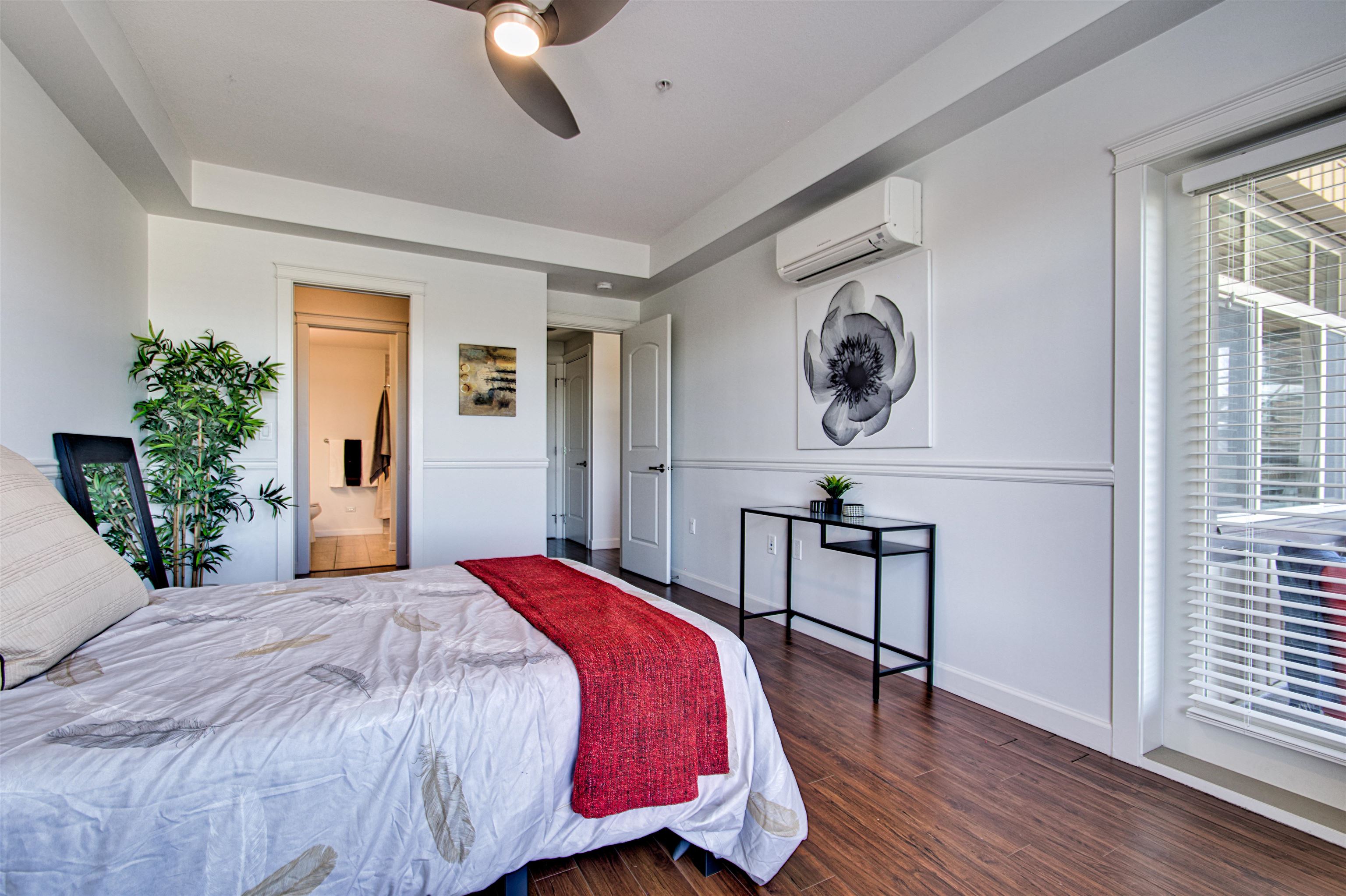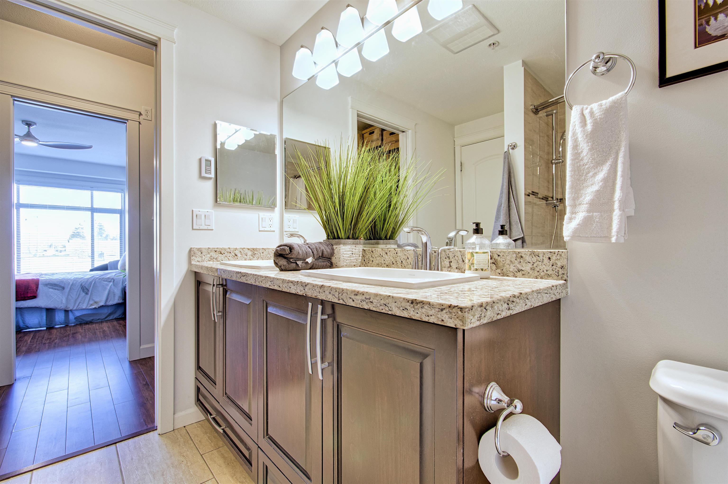 BIG. MODERN. CENTRAL. RARE. Welcome to CEDAR DOWNS. One of the few newer buildings in Pitt Meadows; feel the space in this oversized 2 Bed + large Den. Imagine entertaining in your stunning kitchen, It Offers wood shaker cabinets, SS & thick granite. Stay cool with A/C in the summer & enjoy heated bathroom floors in the winter. Relax in your 212sqft solarium—open the glass panels for summer air or close for cozy winter living. Capture the sunlight and look out to mountain peaks from your private sol...