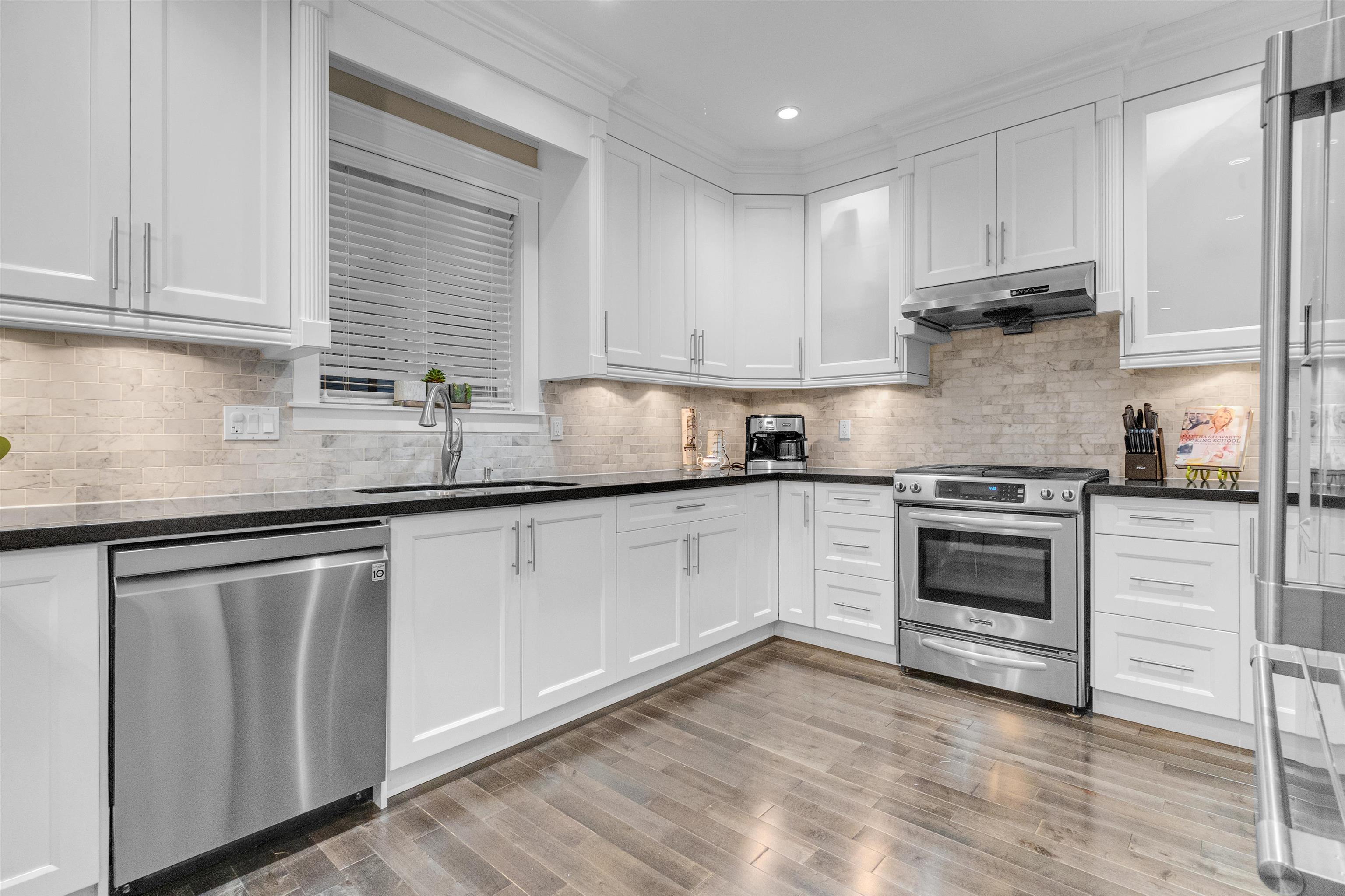 Beautifully maintained 3-level home with a fully finished basement and legal 2-bedroom suite in the sought-after Yorkson area. The main level features an open layout with 9 ft ceilings, hardwood floors, and a stunning gourmet white kitchen with granite counters, large island, stainless steel appliances, and a gas stove. A spacious great room with gas fireplace leads to a private backyard with a large covered deck for year-round entertaining. Upstairs offers 4 generous bedrooms, including an oversized primar...