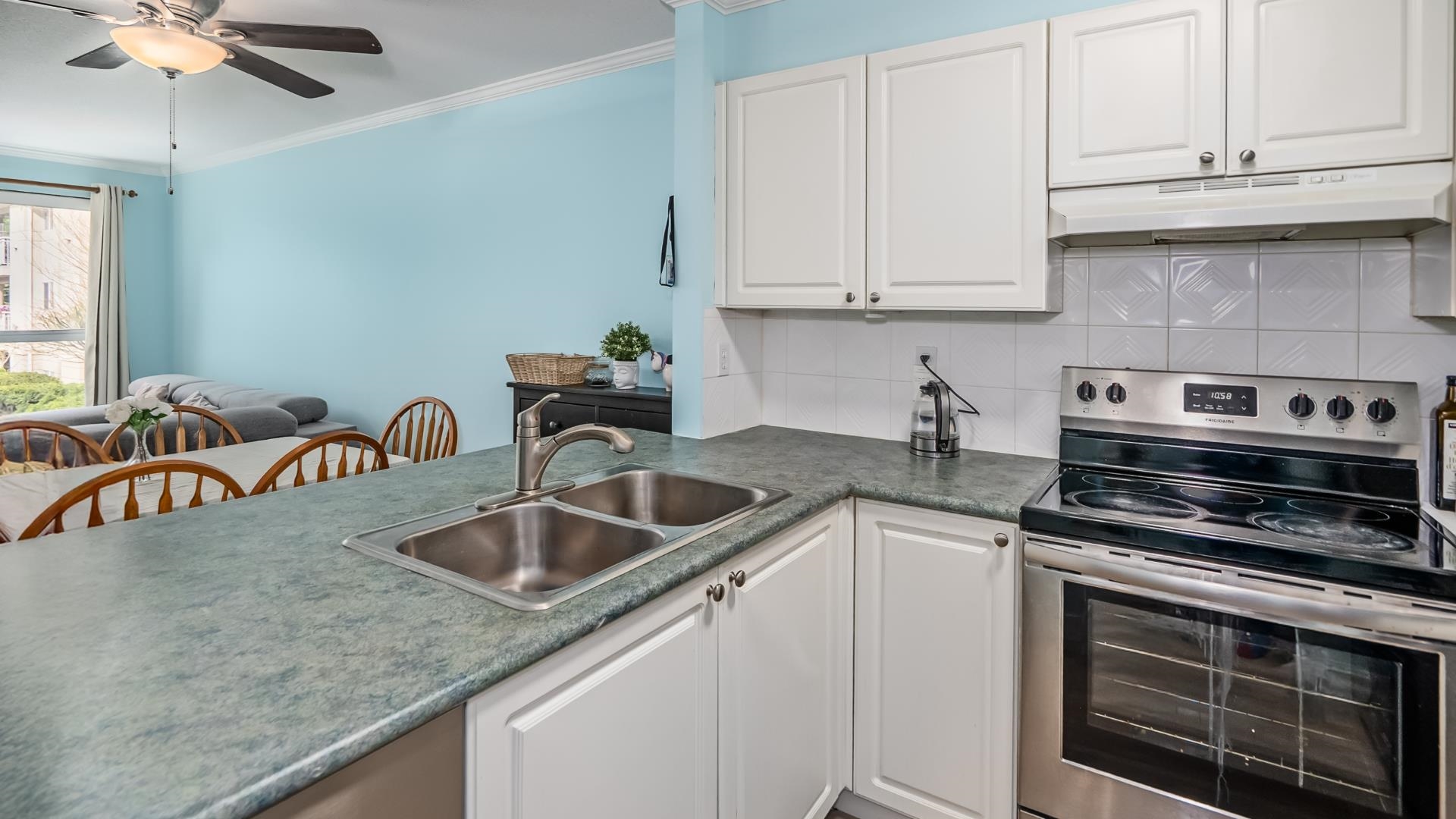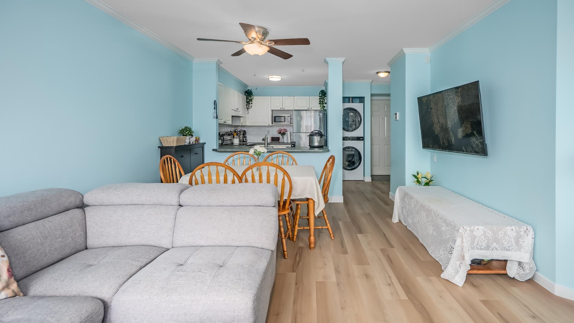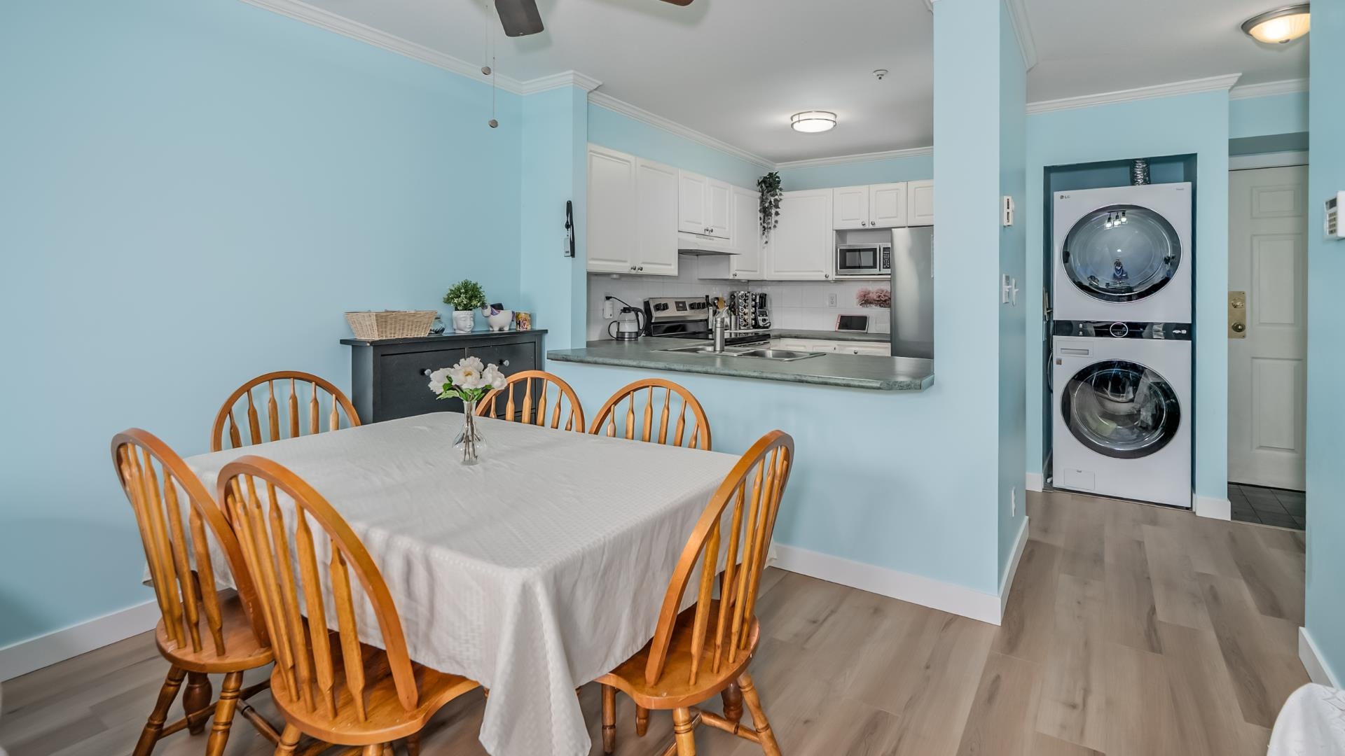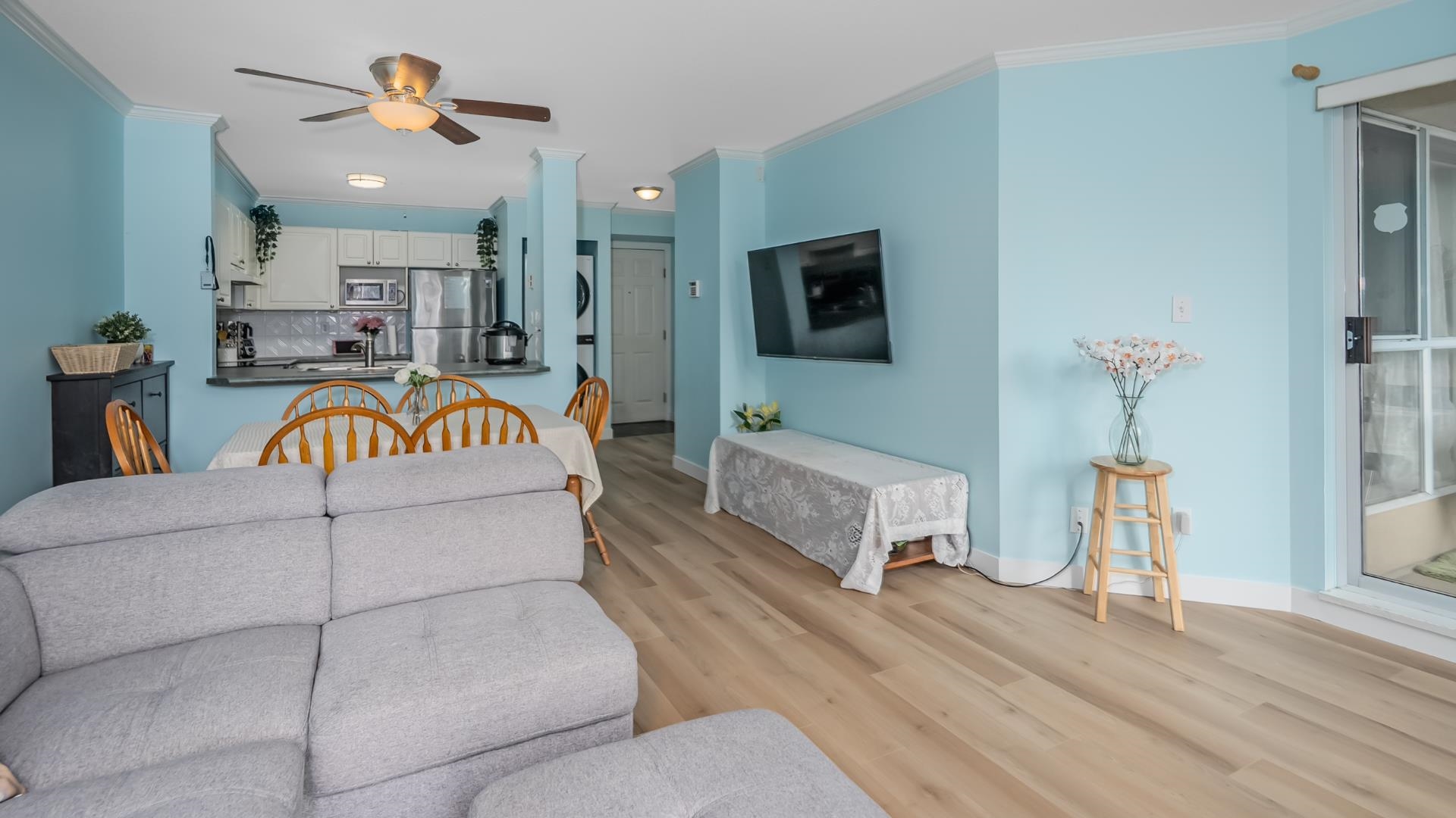 Welcome to King’s Court! This bright and spacious 2-bedroom, 2-bathroom home is ideally located on the quiet side of the building and features a private balcony perfect for relaxing. The unit has been recently /extensively updated with new appliances, new laminate flooring, and fresh paint, new garburator ,offering a move-in ready space. Enjoy the comfort of a cozy gas fireplace (gas included in strata fees) and the convenience of 1 parking stall and a storage locker. Residents have access to great amenitie...
