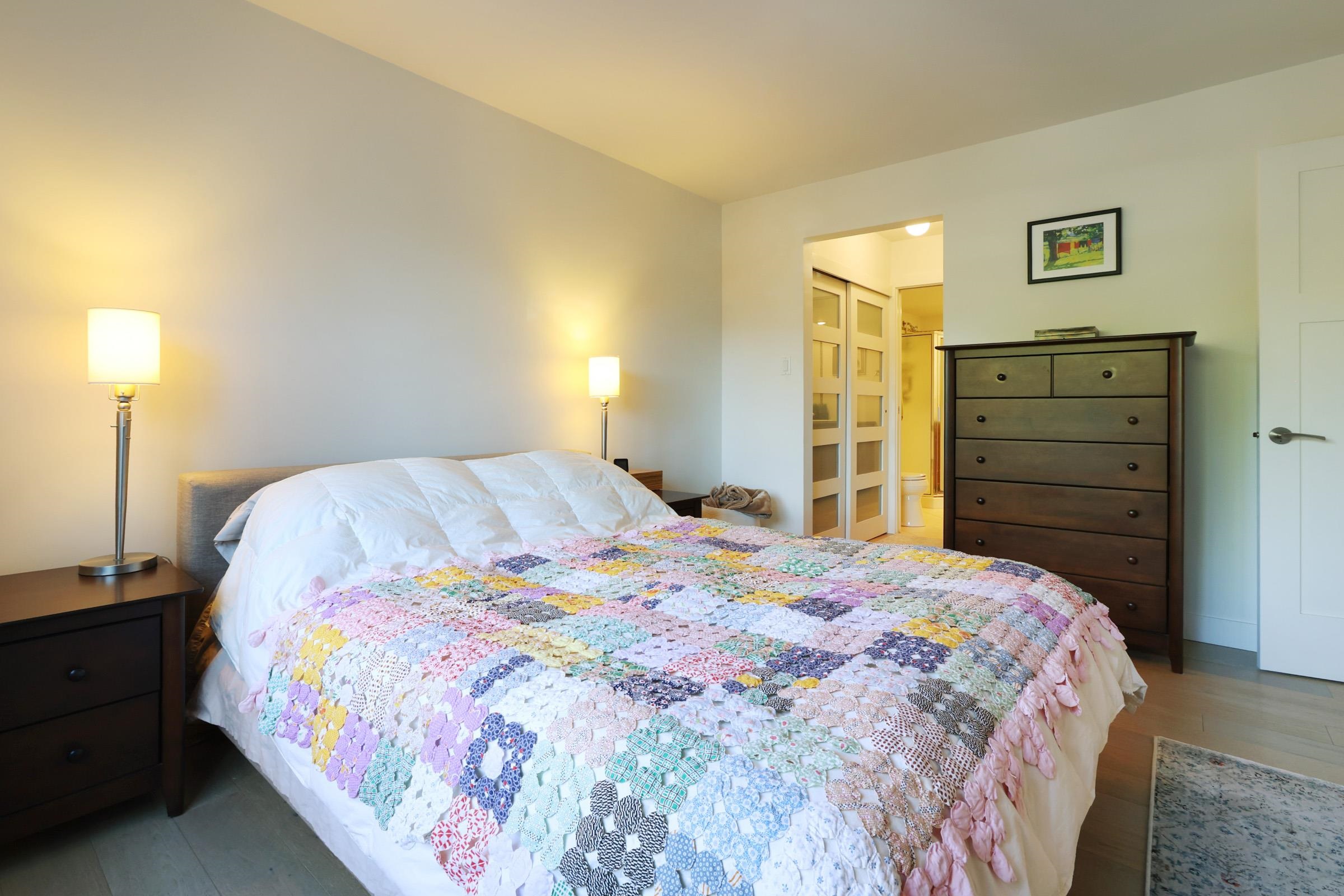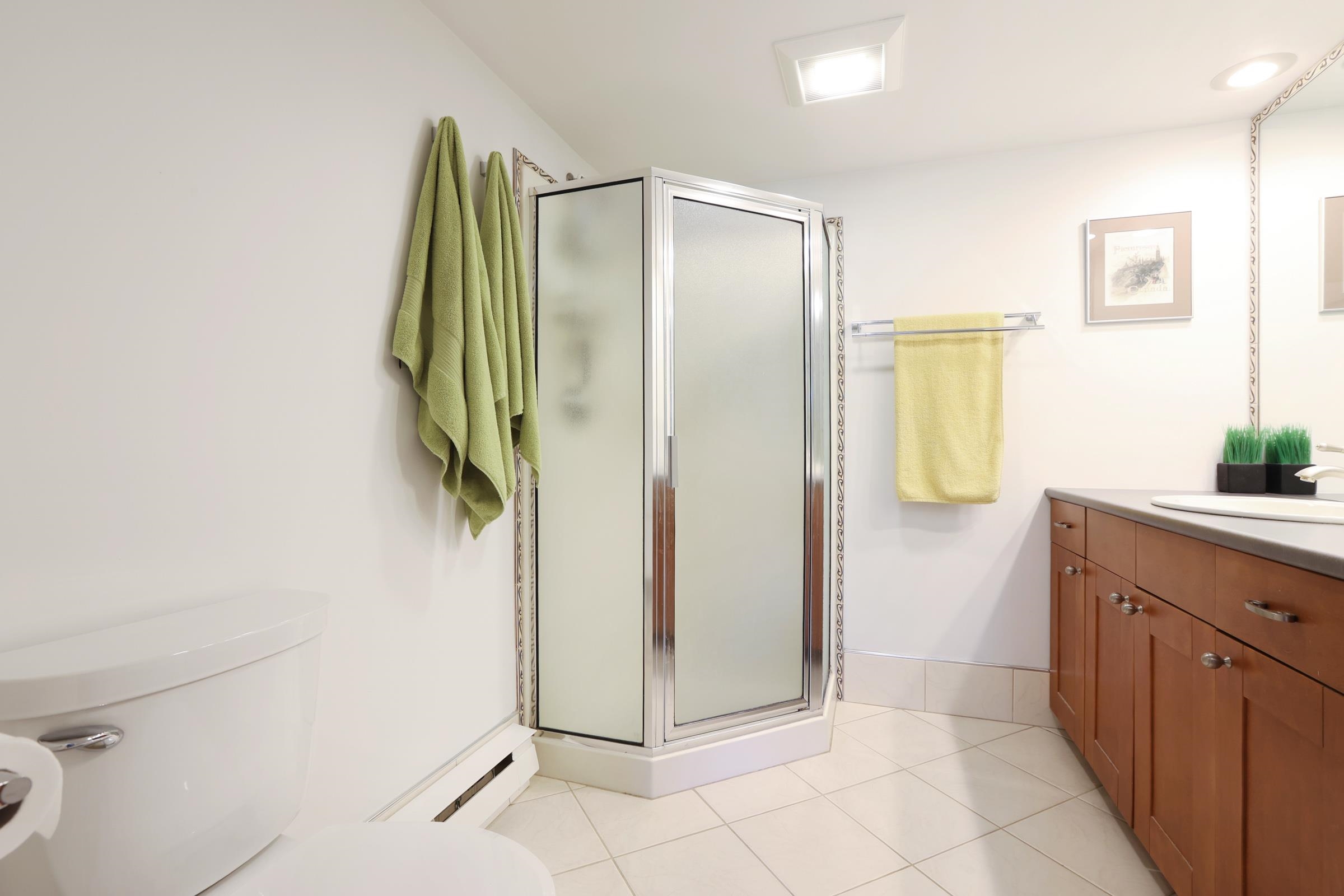 Exceptional Value! This beautifully renovated, quiet 1,100 sq. ft. 2-bedroom, 2-bathroom plus den (easily a 3rd bedroom) view home offers the perfect blend of comfort and functionality for families or downsizers alike. Enjoy a true house-like feel with a welcoming courtyard entry, spacious rooms that fit full-sized furniture, and an ideal open layout. Features include a large kitchen with built-in oven and cooktop, generous primary ensuite, ample storage, and a large covered balcony. Soak in city and mounta...