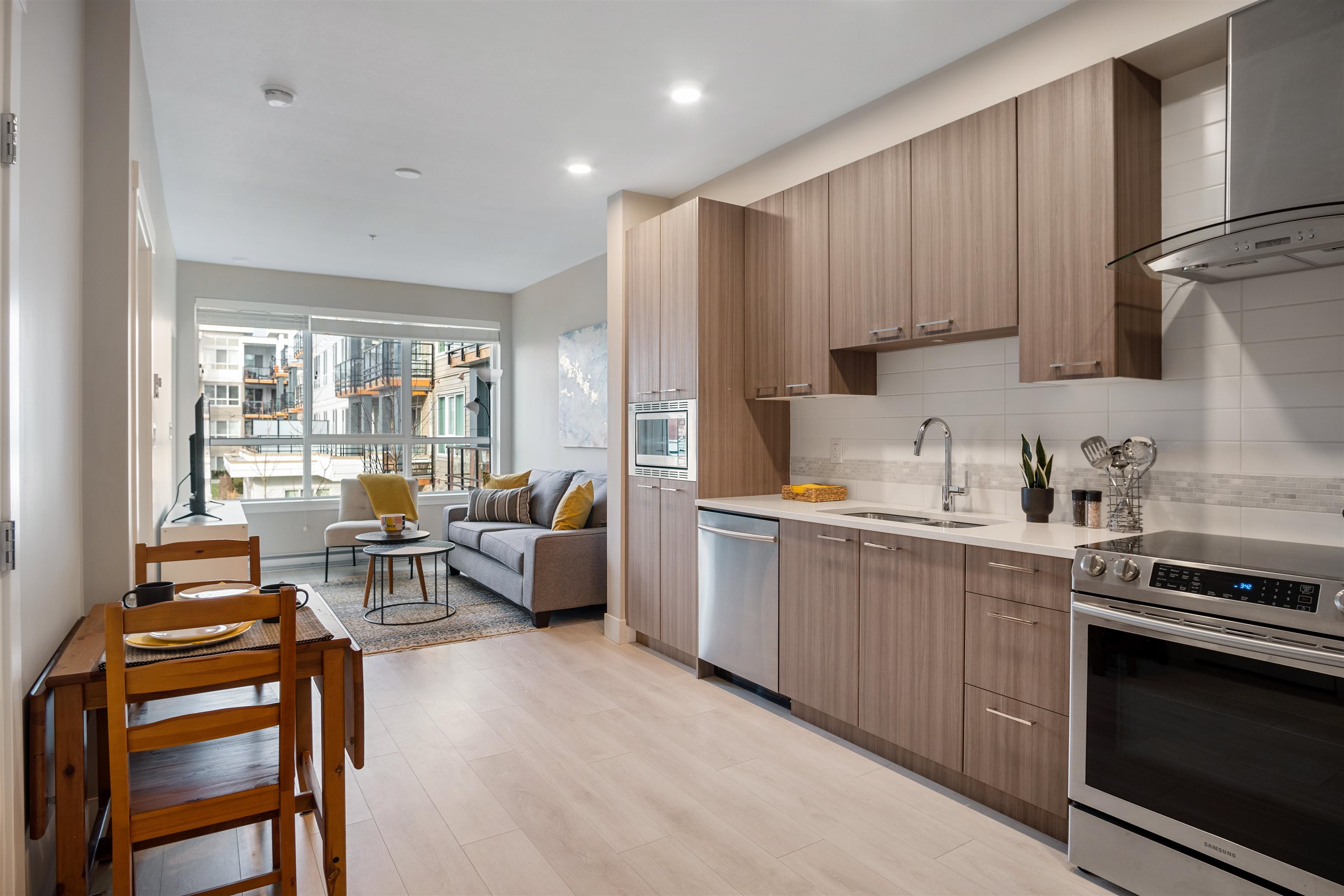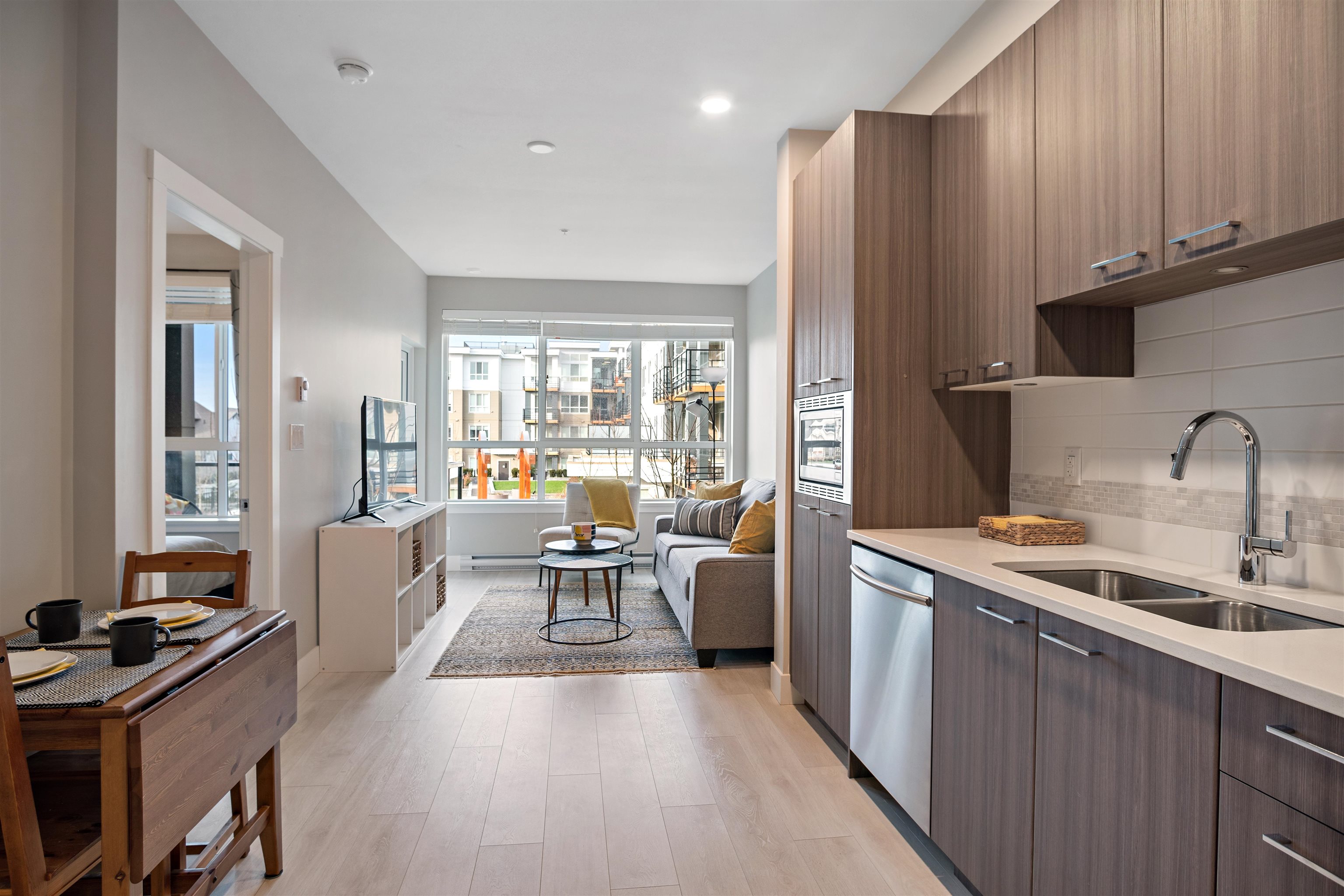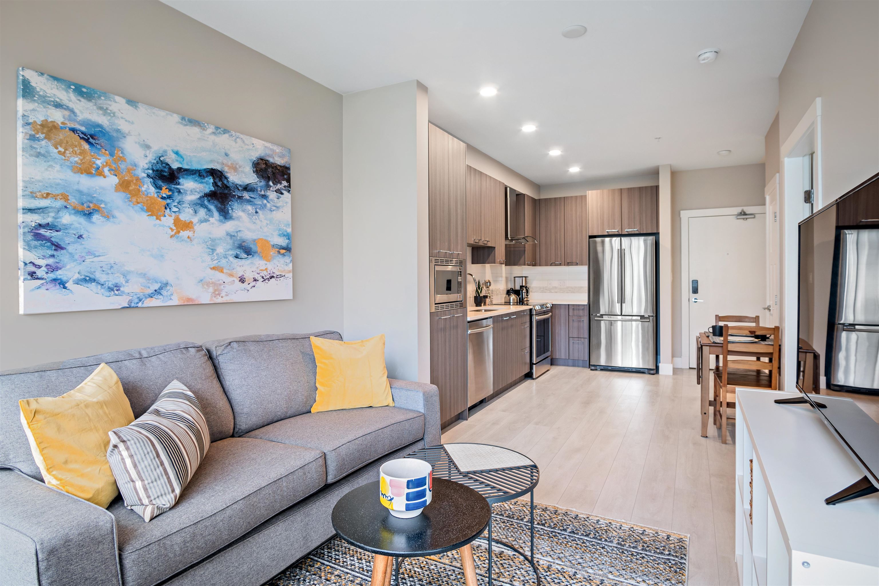 The perfect place to call home….. With an Unbeatable central location, this Fully Furnished, just over 5yr old, 508sf, modern 1 Bedroom (proper bedroom) and 1 Bath is for rent at the "Coast." This unit has a quiet peaceful outlook facing a beautifully landscaped courtyard. Fantastic open concept floor plan with good sized fully covered patio, Large bright windows to maximize natural light and peaceful living. Each room is a great size and space. Designer Paint with warm color scheme and wide plank laminate ...
