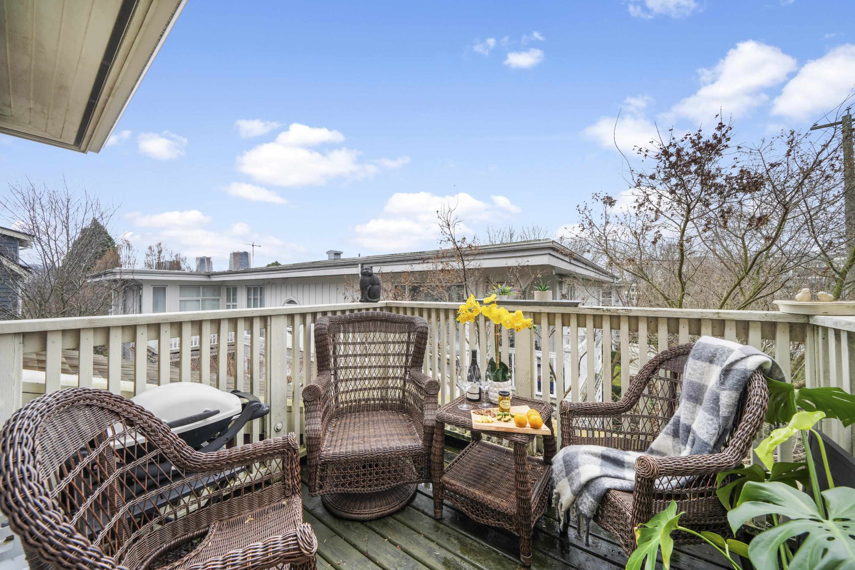 Rare opportunity to own the top level of the “Red Ruby” a Heritage-designated Gem in the Heart of Kitsilano. This spacious 1Bed + den home at the award-winning Greenwich by Polygon offers charm & privacy of detached living. West-facing w/ its own front porch, white picket fence & private garden, plus an East-facing balcony off the kitchen with French doors & peek-a-boo North Shore mountain views, & a West-facing Juliet balcony for sunsets & fireworks. Features incl engineered h/w floors, open-concept living...