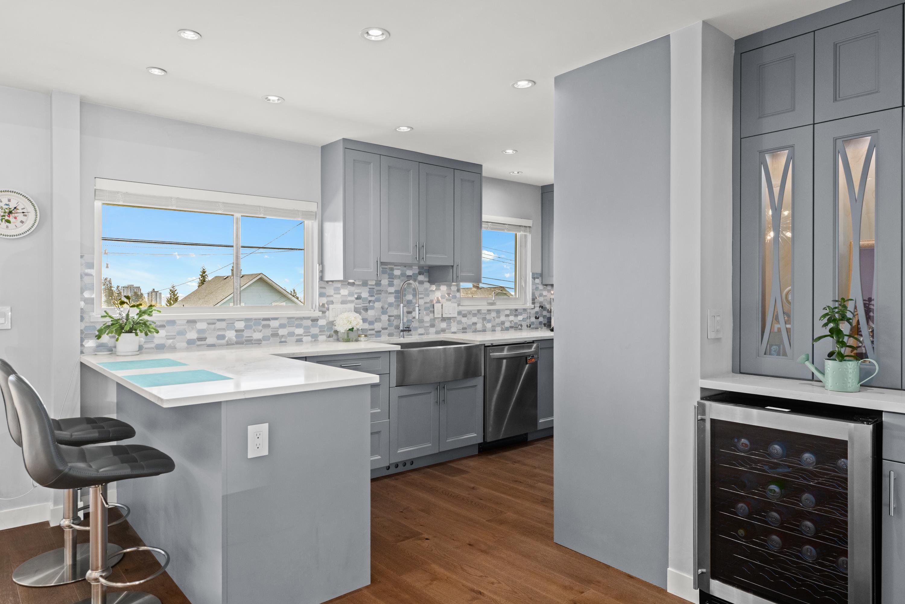Beautifully updated home in desirable Upper Lonsdale featuring a bright open-concept layout for modern living. Enjoy stunning Grouse Mountain views to the north and partial city views to the south. Bright living and dining areas flow into the kitchen with quartz countertops, perfect for everyday living and entertaining. Engineered hardwood floors add warmth and style throughout. Ideally located with quick access to Highway 1 and just moments to the new Harry Jerome Community Recreation Centre, parks, shoppi...