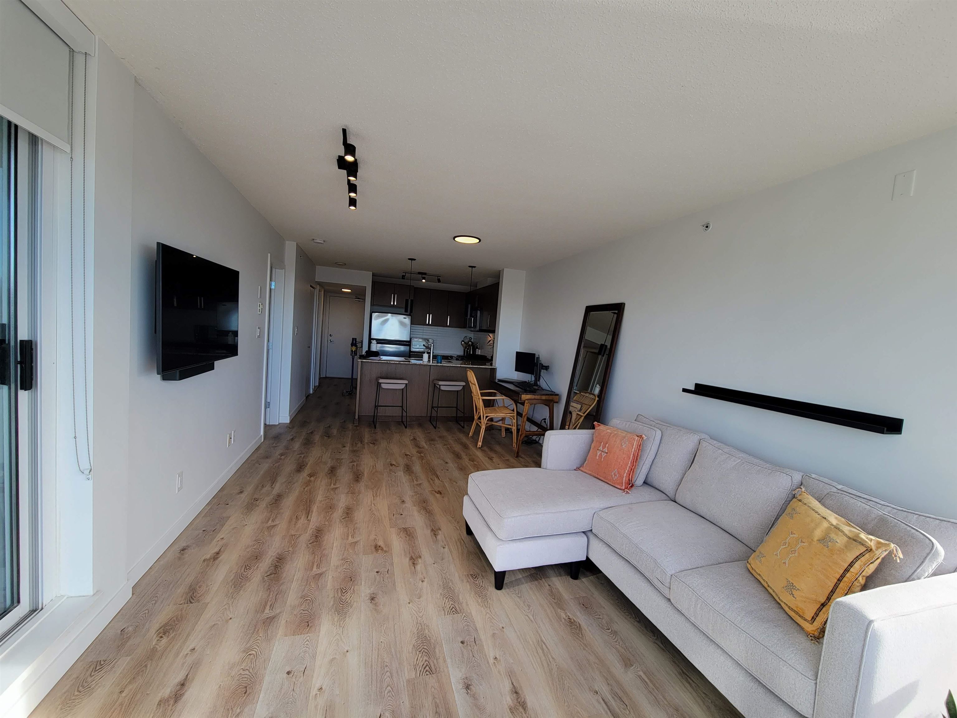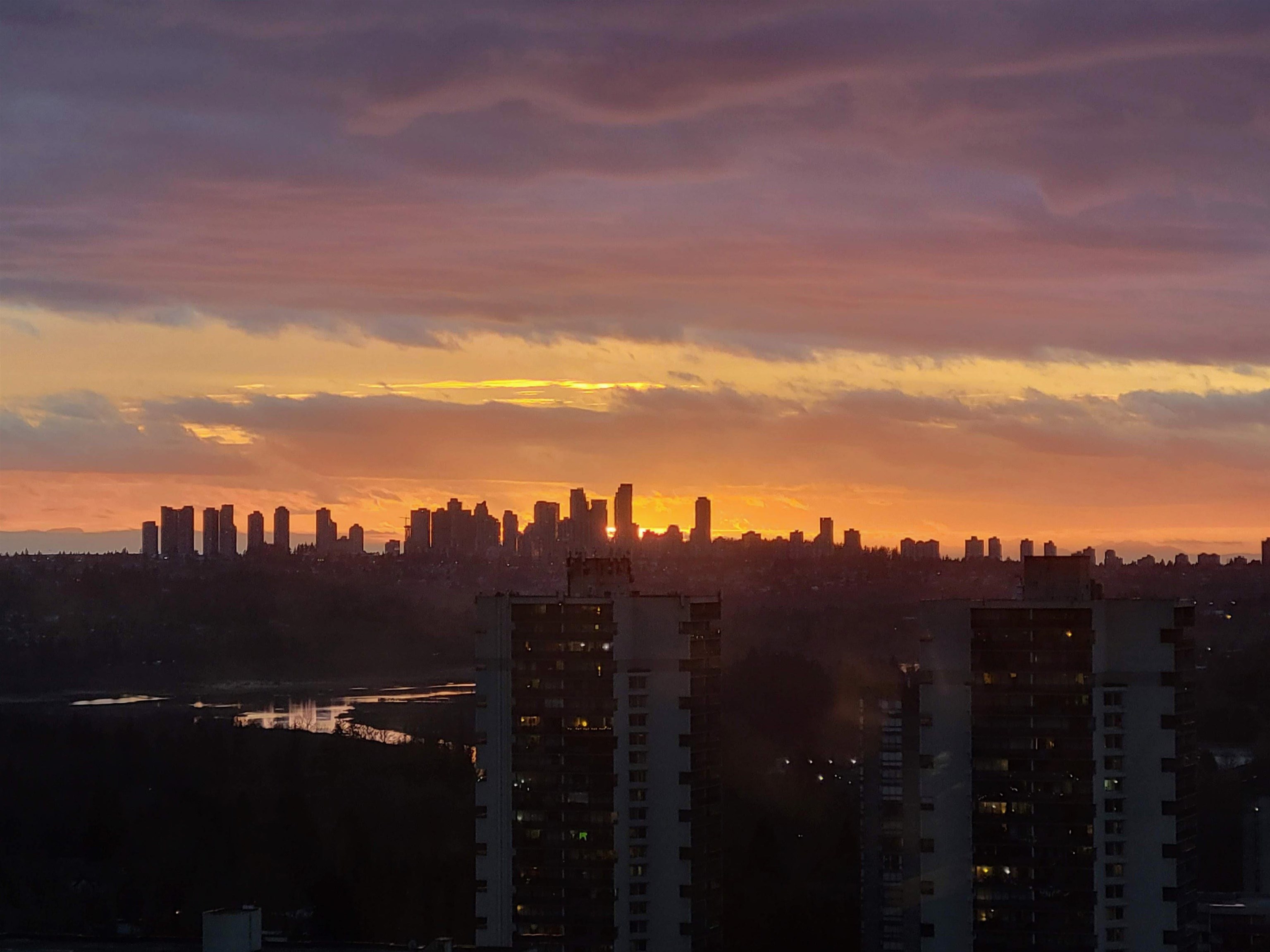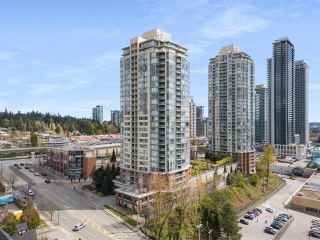 Welcome to this gorgeous west-facing 1 bedroom + generous den home offering approximately 700 sq ft of thoughtfully designed living space. Enjoy an open floor plan filled with natural light through floor-to-ceiling windows and stunning unobstructed views of the mountains, city skyline and Burnaby Lake, plus beautiful sunset vistas. Renovated with new vinyl flooring, fresh paint, updated lighting, new closets, drapes and a marble bathroom countertop. The kitchen features granite counters, stainless steel app...
