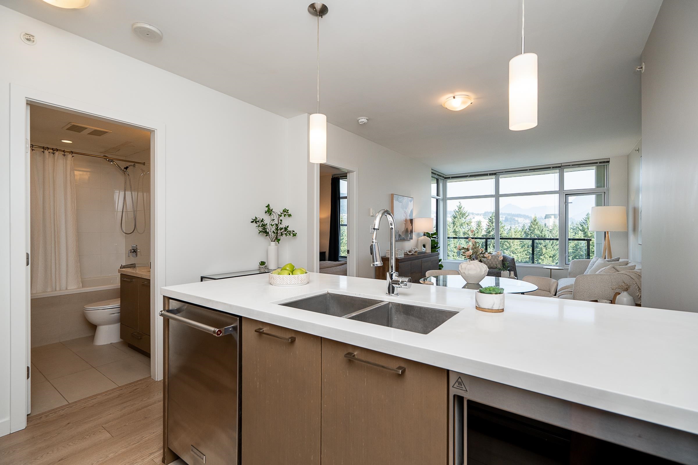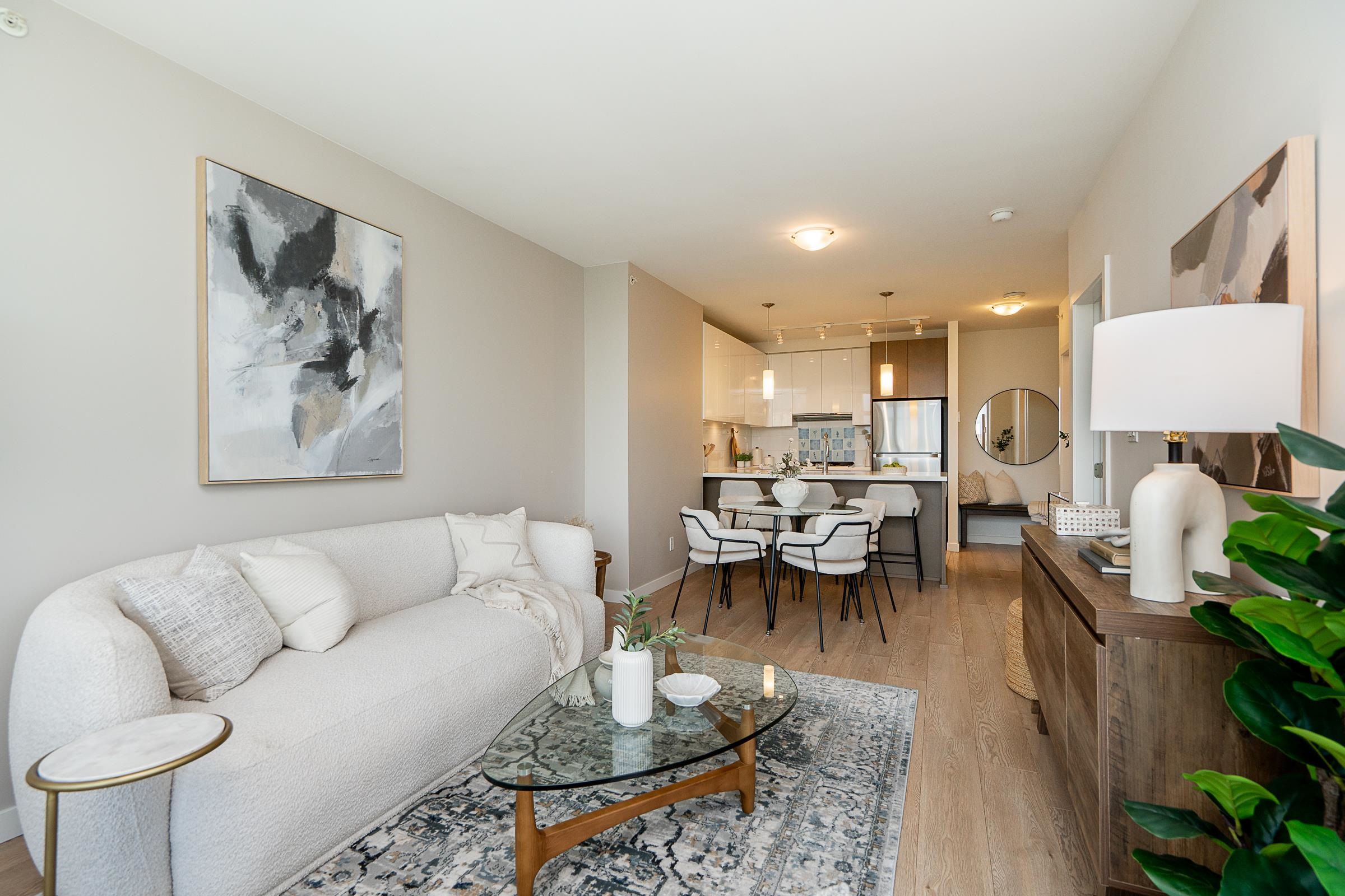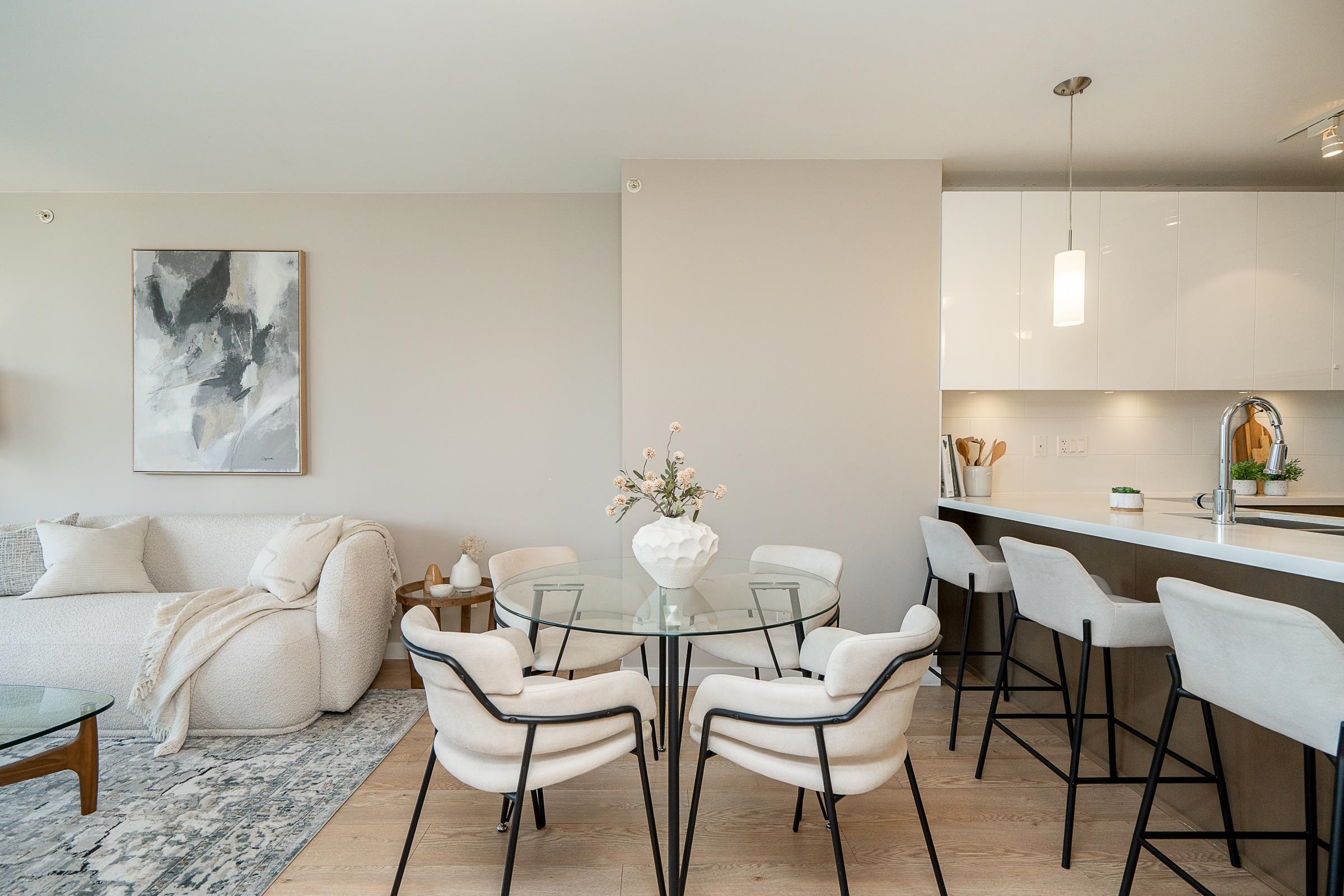 Sleek and sophisticated condo with UNOBSTRUCTED PANORAMIC VIEWS! This 1 bed home has a modern, functional design with over 600 sq ft of living space. Beautiful kitchen with gas cooktop, quartz countertops, peninsula seating, sleek cabinetry and heated floors. The dining and living seamlessly connect, and lead to a covered balcony with breathtaking views of Glen Park, mountains and city. The bedroom is roomy and the 4 piece bath has heated floors. Enjoy a dedicated foyer, laminate floors throughout the main ...