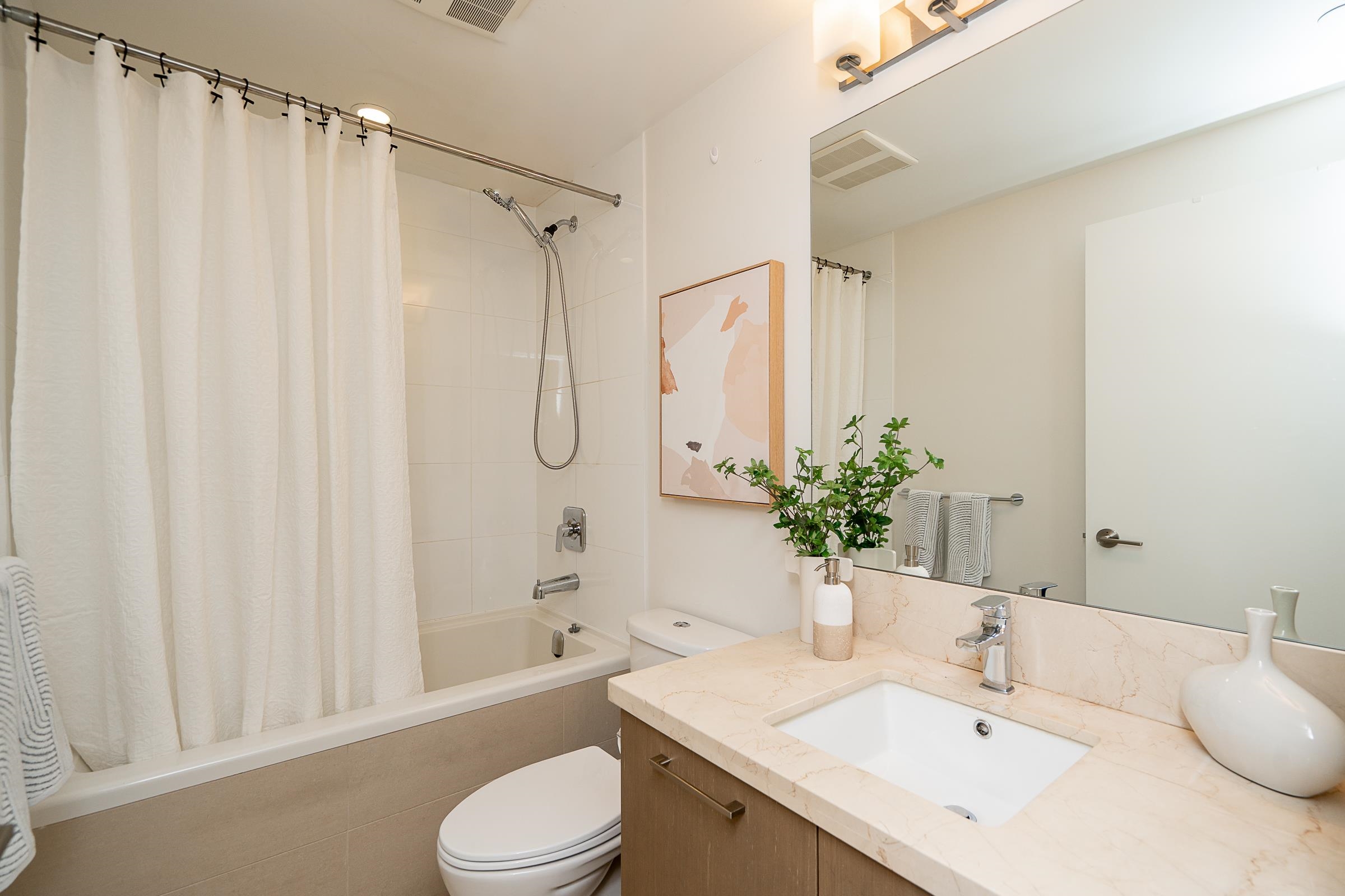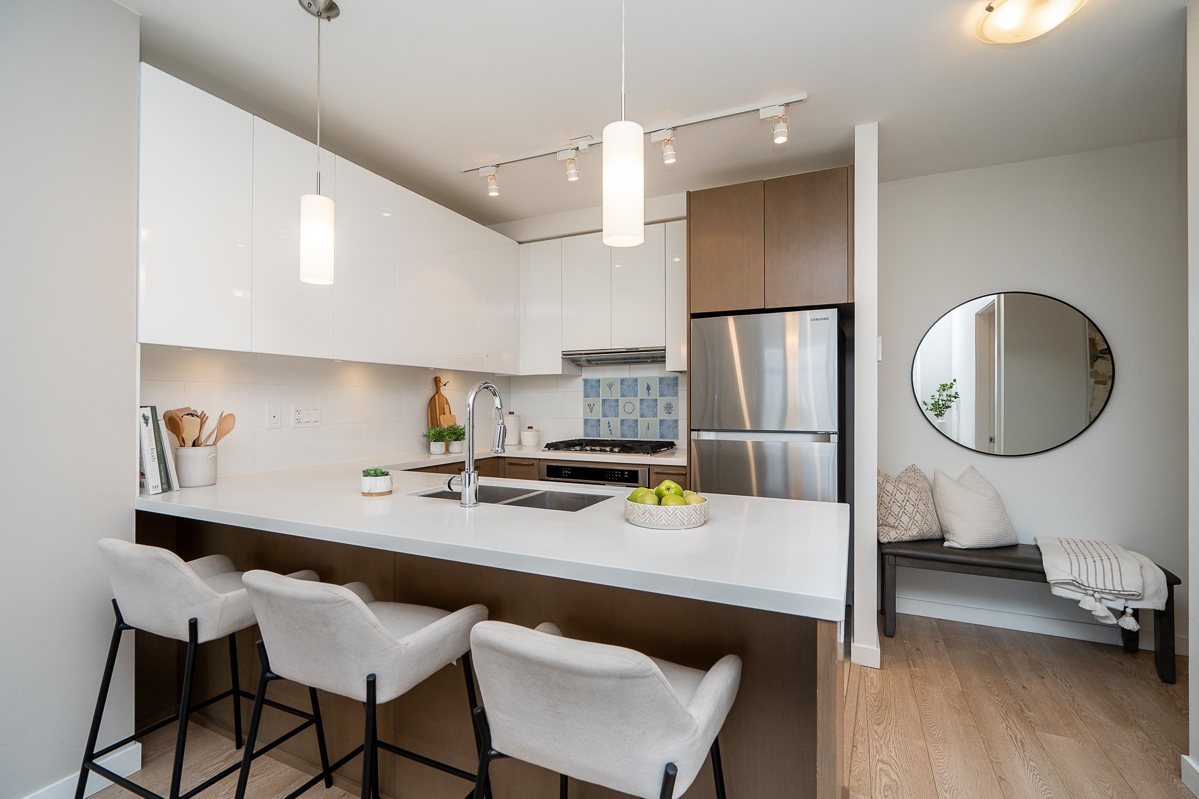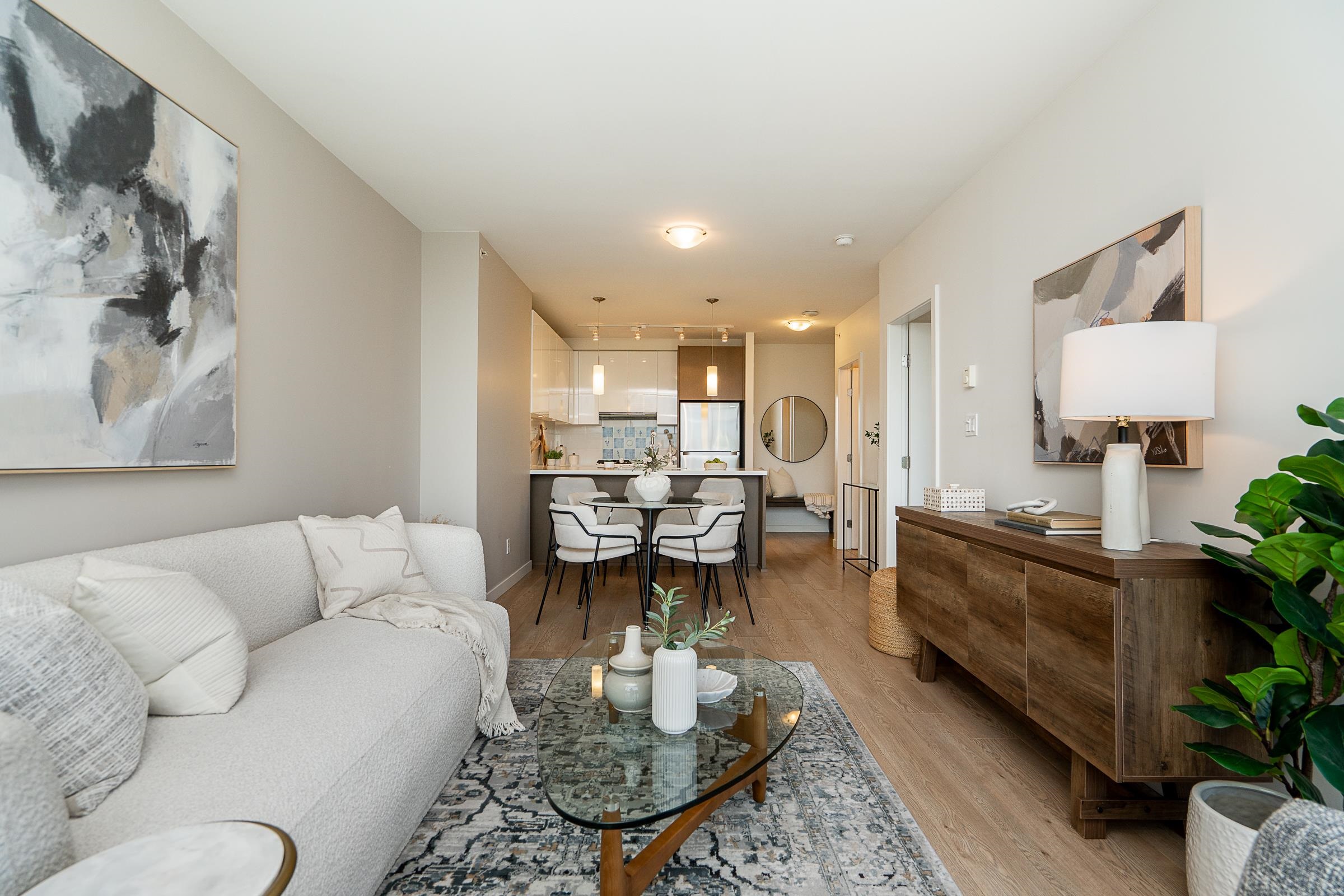 Sleek and sophisticated condo with UNOBSTRUCTED PANORAMIC VIEWS! This 1 bed home has a modern, functional design with over 600 sq ft of living space. Beautiful kitchen with gas cooktop, quartz countertops, peninsula seating, sleek cabinetry and heated floors. The dining and living seamlessly connect, and lead to a covered balcony with breathtaking views of Glen Park, mountains and city. The bedroom is roomy and the 4 piece bath has heated floors. Enjoy a dedicated foyer, laminate floors throughout the main ...