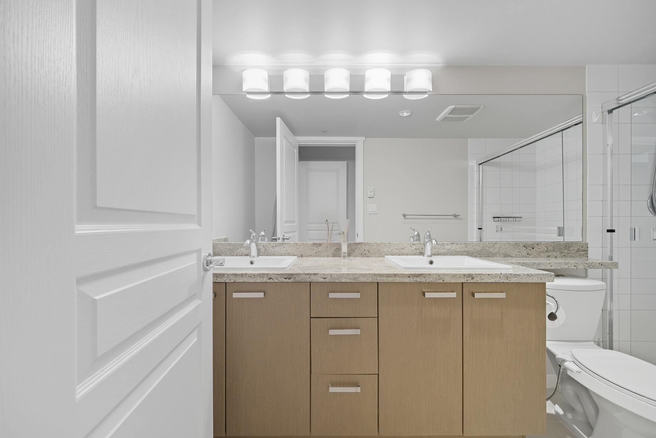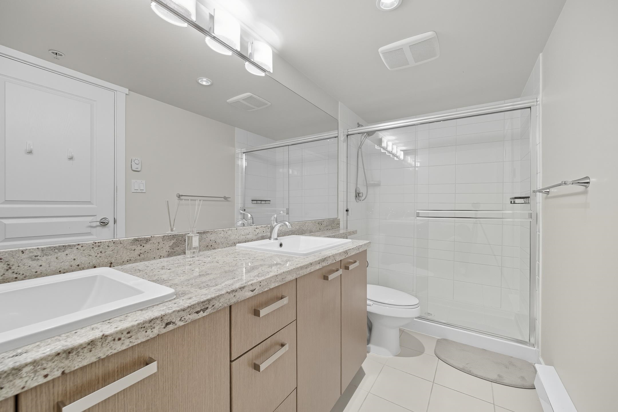 Welcome to Cambridge Park by Polygon! This quiet SE-facing 2 bed 2 bath home offers 879 sqft of thoughtfully designed living space with a spacious balcony. RENOVATED last year with upgraded kitchen appliances, new washer & dryer, laminate flooring throughout, and fresh paint. Features a functional U-shaped kitchen with granite countertops, stainless steel appliances, and a gas cooktop included in the low strata fee. Good-sized Master bedroom with walk-in closet and windows overlook the courtyard garden. Res...