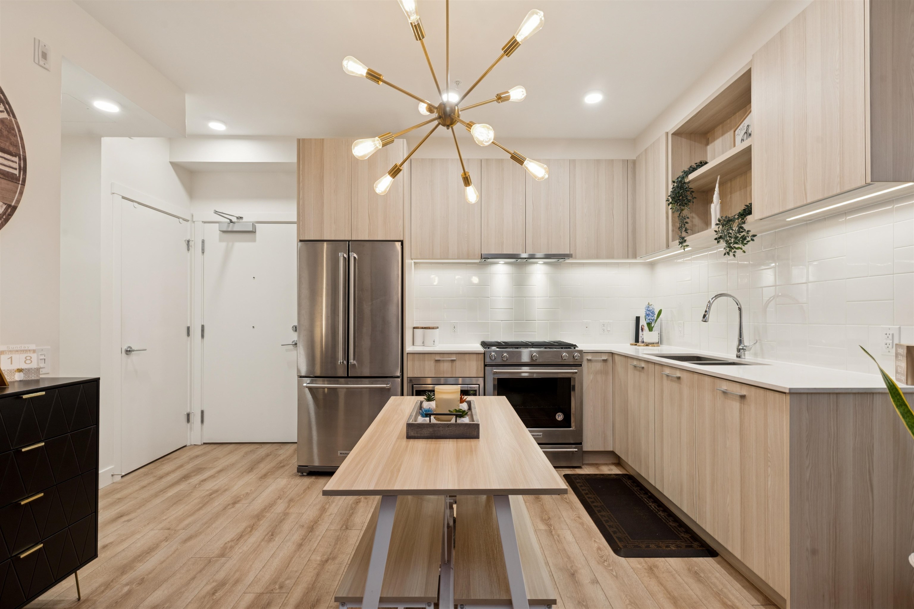 Introducing a quiet courtyard facing 1 bed, 1 bath condo at The Oaks. Inside, enjoy 9' ceilings in main areas, high-performance wide-plank laminate flooring, and a gourmet kitchen featuring soft-close laminate cabinetry, quartz countertops, and a premium KitchenAid appliance package. The spa-inspired bathroom offers quartz countertops, a deep soaker tub, and a Kohler quiet-close toilet. Building amenities are exceptional, including over 28,000 sq. ft. of private indoor/outdoor space, a fully outfitted fitne...