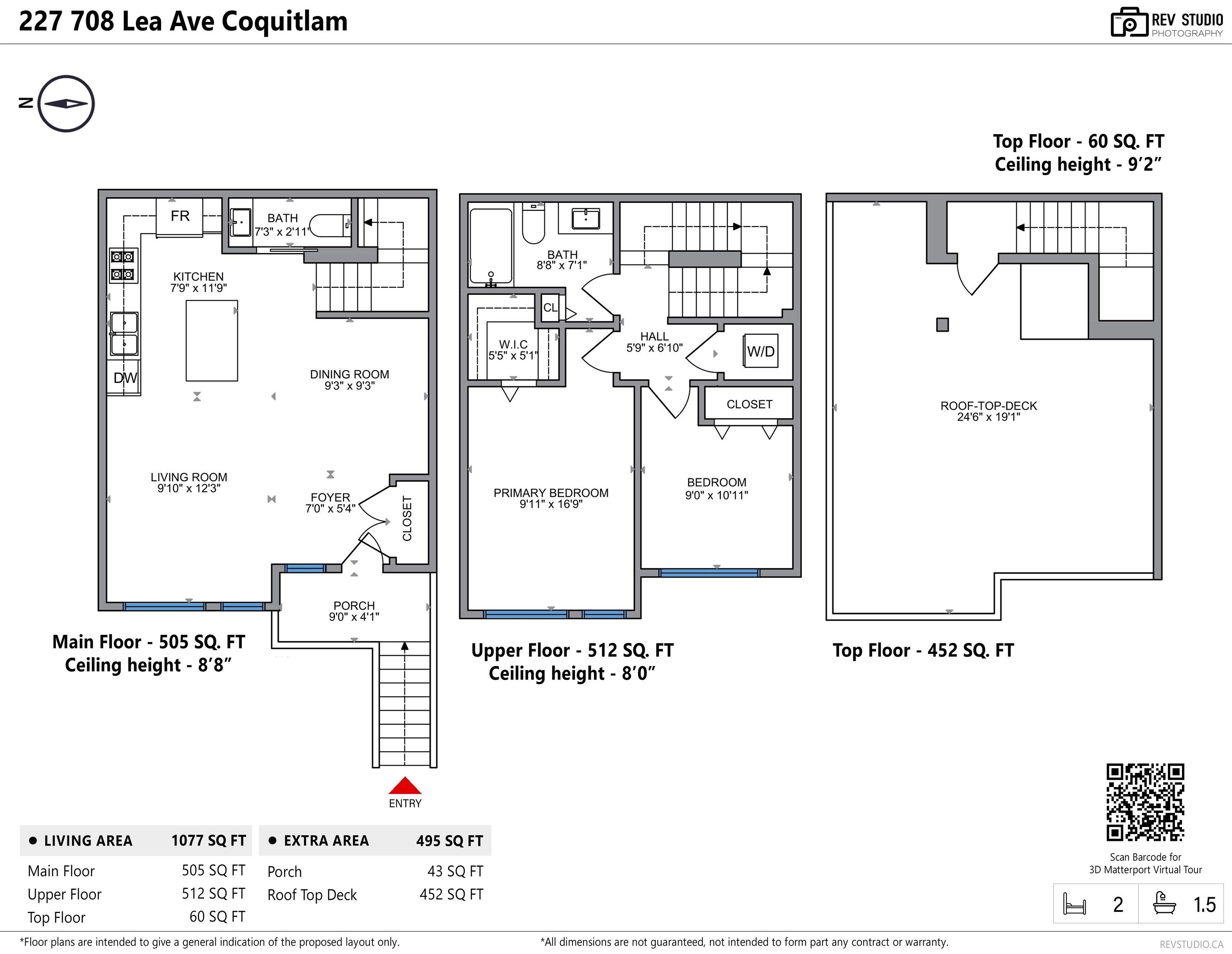 Duet II Cityhome of 2 Bedrooms Townhouse with massive 405 SQF Rooftop patio with absolutely beautiful mountain views. Located at the heart of Burquitlam in west Coquitlam, just walking distance to skytrain station, shopping center and parks. Built with Mas timber wood by very well known developer ADERA. High Quality Laminate floor, Quartz Counters, Stainless Appliances. Parking and 2 Storages. Main Floor offers open concept floorplan with large Living room , Formal Dining room, Gourmet Kitchen and lots of n...