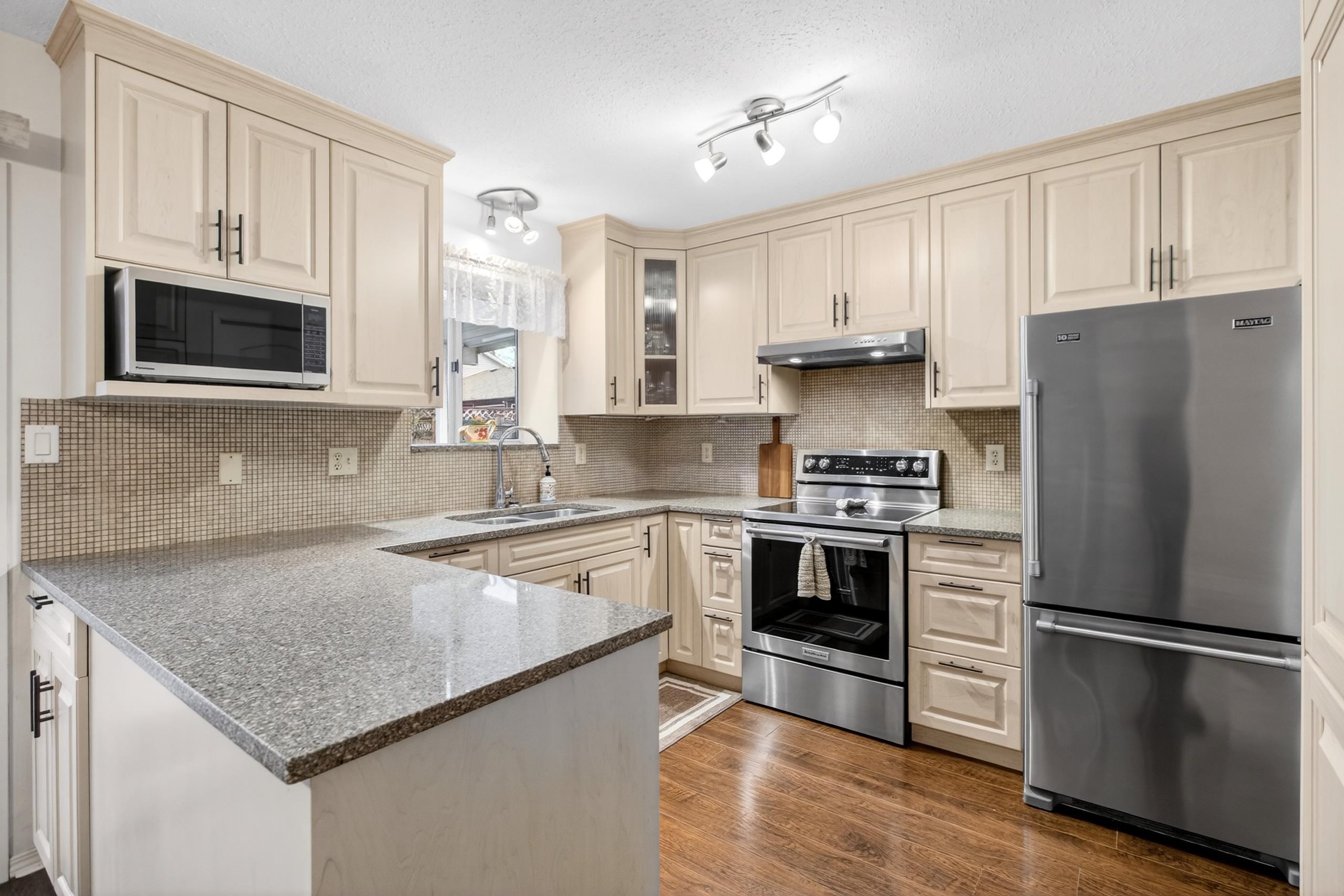 Welcome to this charming 3-bedroom, 1.5-bath rancher offering over 1,200 sqft of comfortable living on a nearly 6,000 sqft lot in a fantastic Maple Ridge neighbourhood. The semi-open living space is bright and inviting, featuring a cozy gas fireplace perfect for relaxing evenings. The updated kitchen showcases stainless steel appliances, ample counter space, and plenty of cabinetry, flowing seamlessly into the dining area. Step outside to a spacious covered deck with skylights—ideal for year-round entertain...