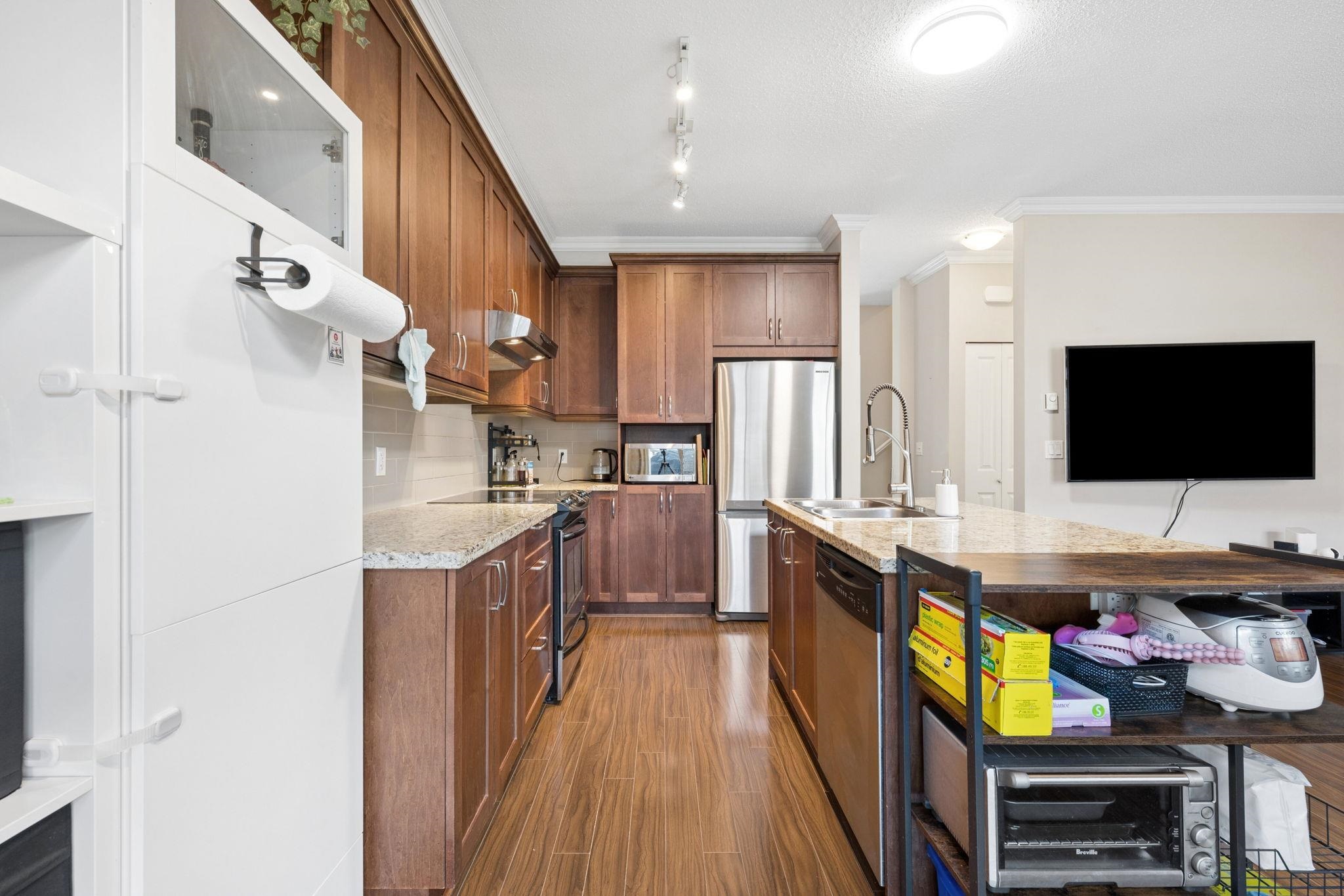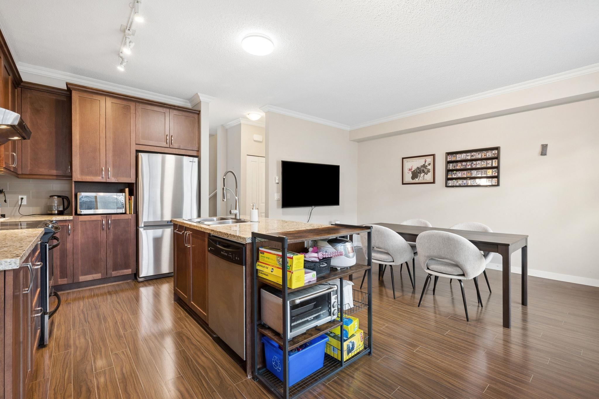 CARDINAL POINT in DELSOM VILLAGE by POLYGON HOMES. This executive townhome features 4 bedrooms, 4 bathrooms, side by side double garage and a fenced yard. The floorplan is perfect for a growing family... the open plan kitchen features sleek stainless steel appliances, floor to ceiling cabinetry and functional island, opening into the informal and formal dining spaces and living room. Appreciate over-height ceilings, crown moulding and a patio for summer BBQs. Upstairs are 3 sizeable bedrooms including prima...