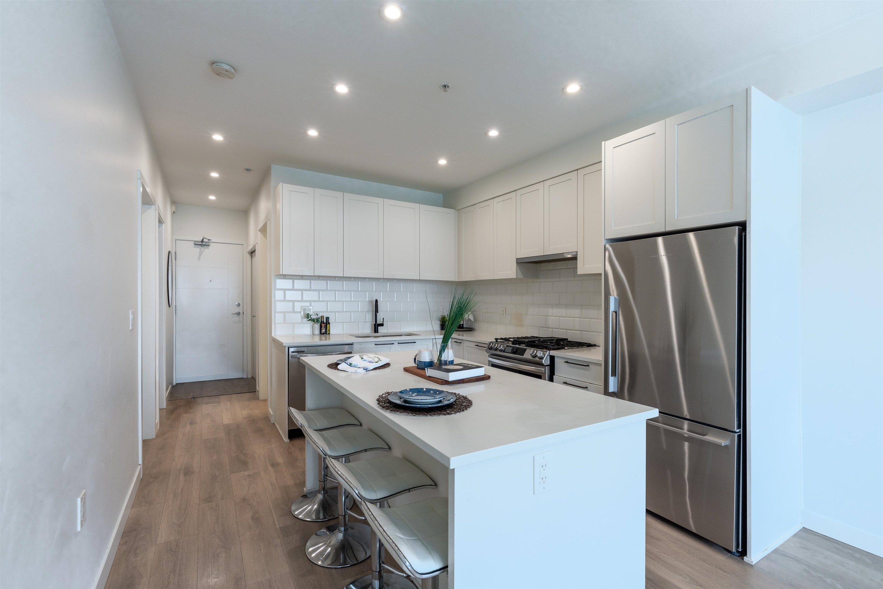 Welcome to the Audley! A beautiful west coast style condominium proudly built by REDDALE. This 2 bedroom 2 bathroom home feat. 1 Parking no storage. Fisher & Paykel fridge, Samsung 5 burner GAS RANGE, frameless glass shower and quartz counters throughout. Dramatic ext. details incl, durable Hardi board siding and brick. Energy-efficient windows & glass doors. Entertain in style in the stunning landscaped courtyard feat: BBQ area, firepit, seating, childrens play area and comm. garden. Cent. location closet ...