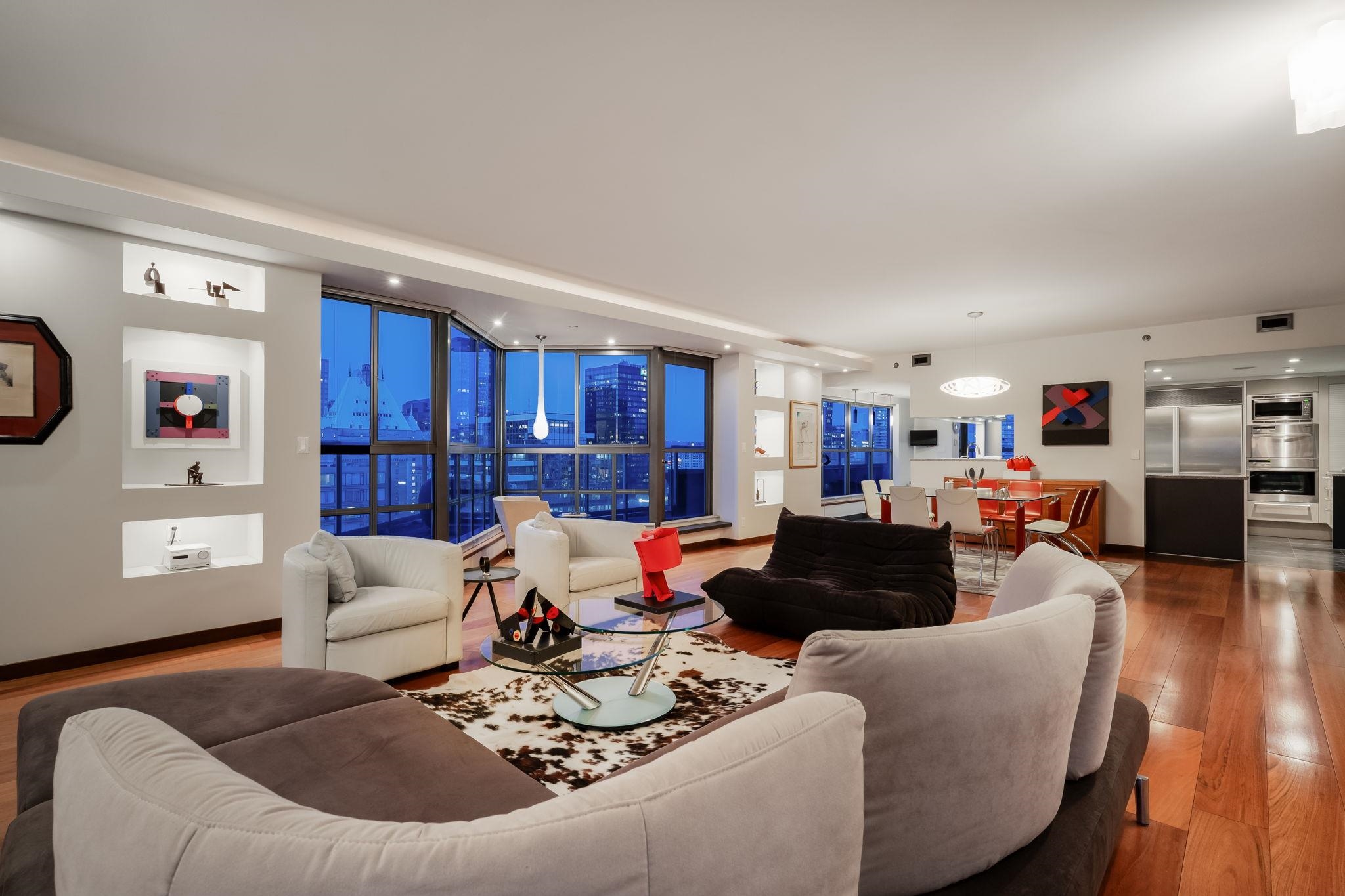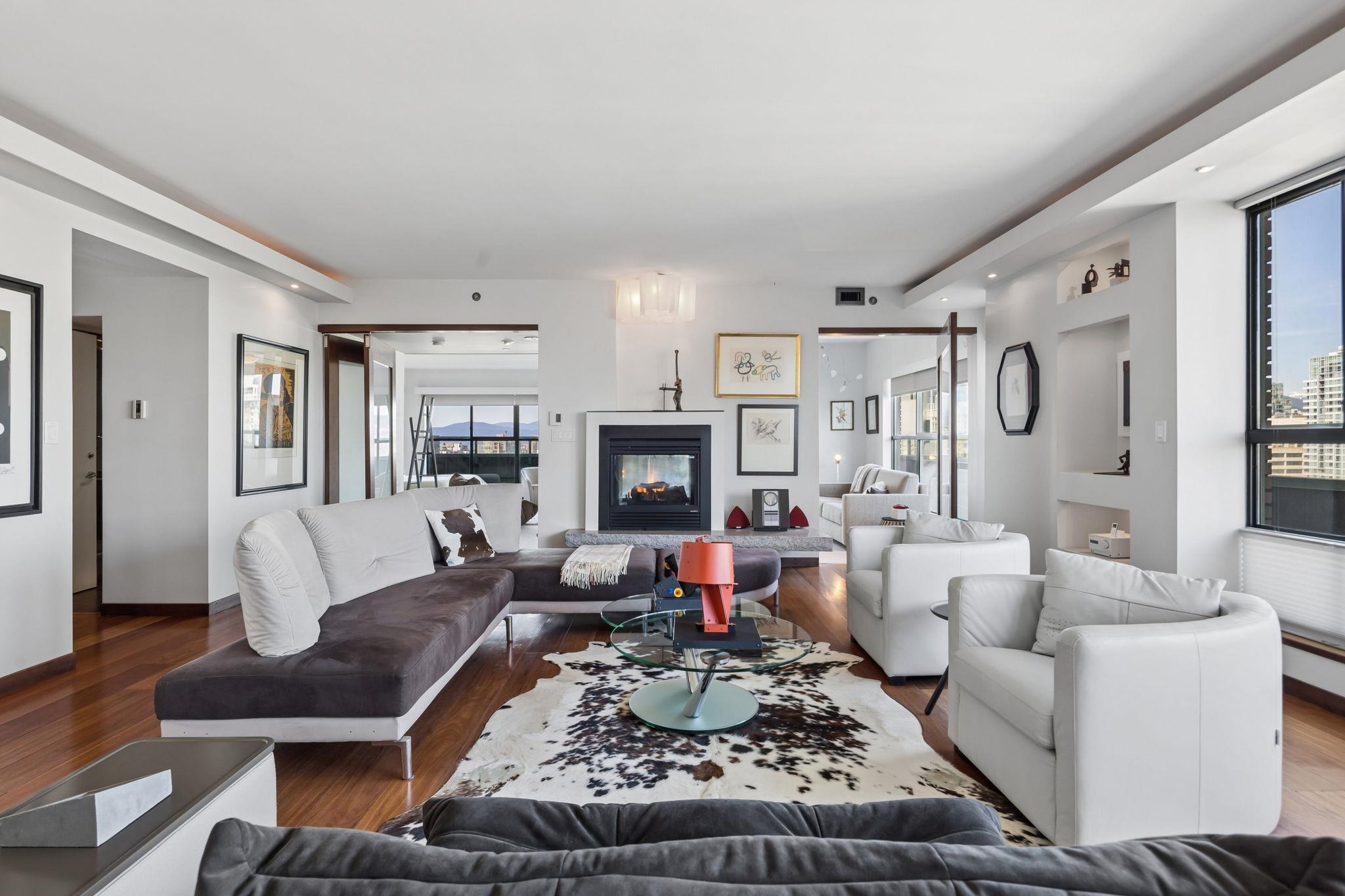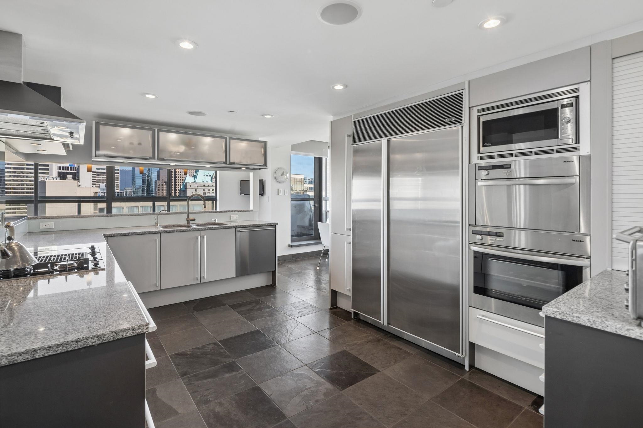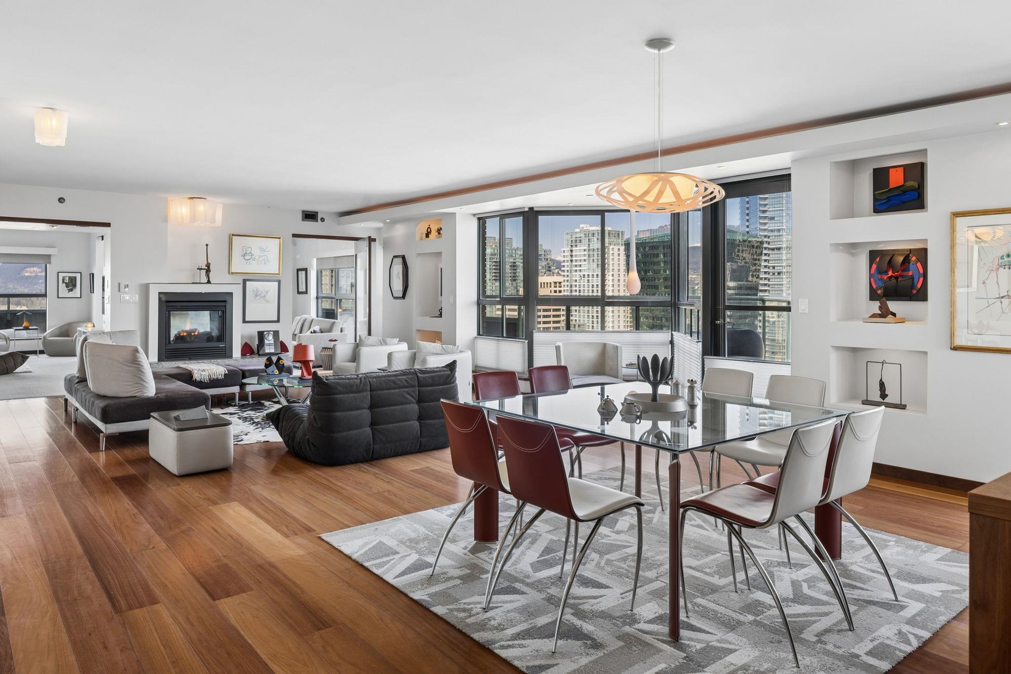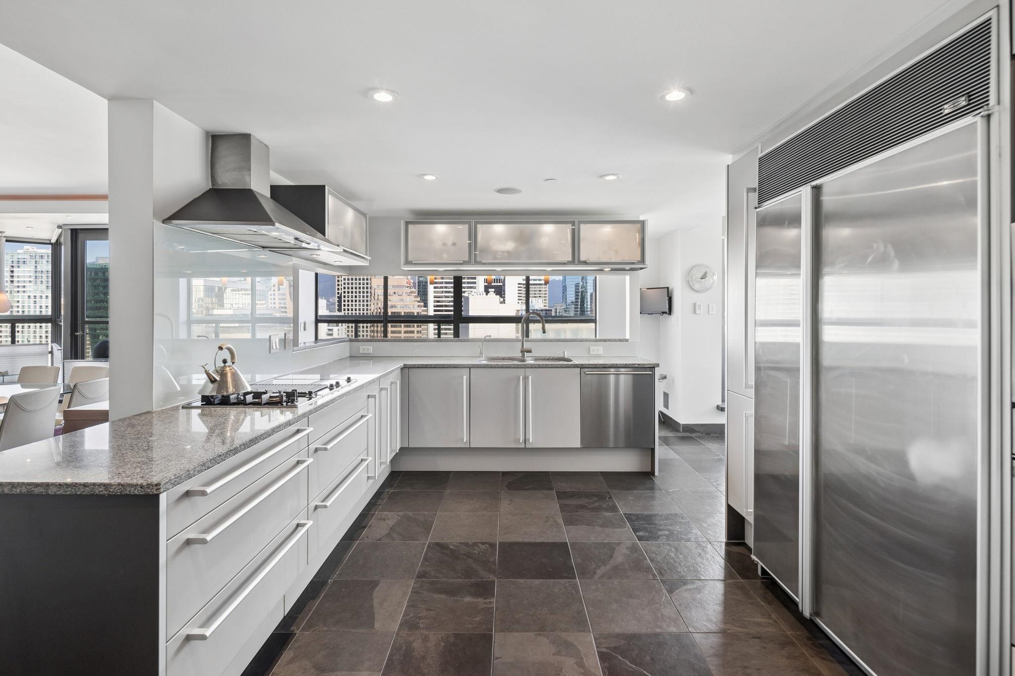 Rare 2,783 sqft sub-penthouse at Vancouver Tower with only 2 homes per floor, offering exceptional privacy, space and luxury. This 3 bedroom + den, 4 bath home has undergone extensive Reno's featuring Poggenpohl cabinetry, Miele and Sub-Zero appliances, walnut flooring, heated tile floors, air conditioning and prewired built-in sound. Rare loft style open living with entertainment sized principal rooms and all bedrooms with ensuite baths. Large wrap around balcony almost 600 sqft captures north facing city ...