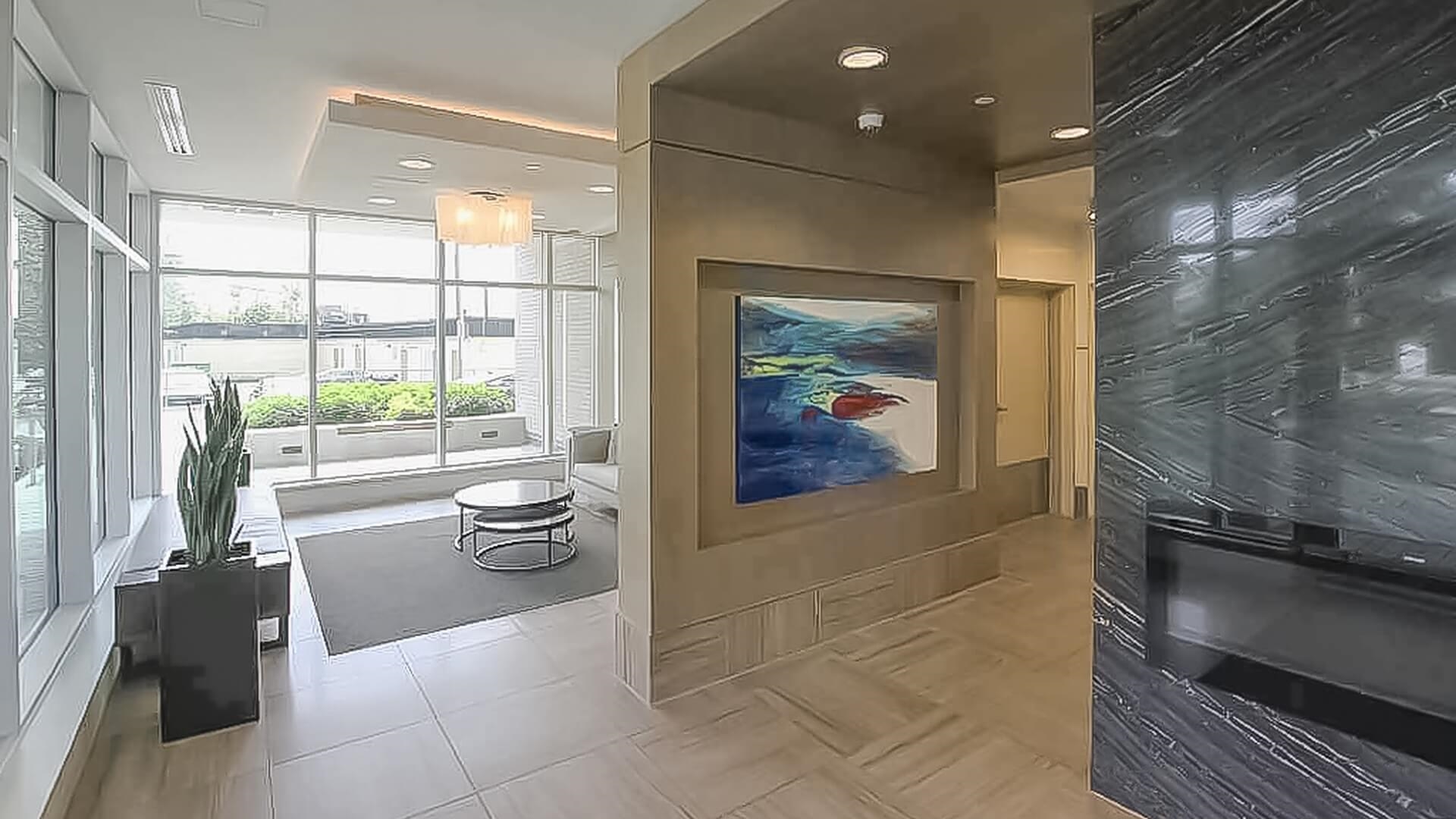 This NorthWest corner suite features 757 Sq.ft, with 120 Sq.ft big mountain-view-balcony , 2 bedrooms & 1 bath with lots of natural light, oversized windows, wide plank engineered hardwood flooring throughout living, dining room, and kitchen and workstation corner, with mountain and city view. No Pet. Pictures taken on 2017. 1 parking, 1 locker. All measurements are approximate. Tenant or tenant’s agent to verify if deemed important.
