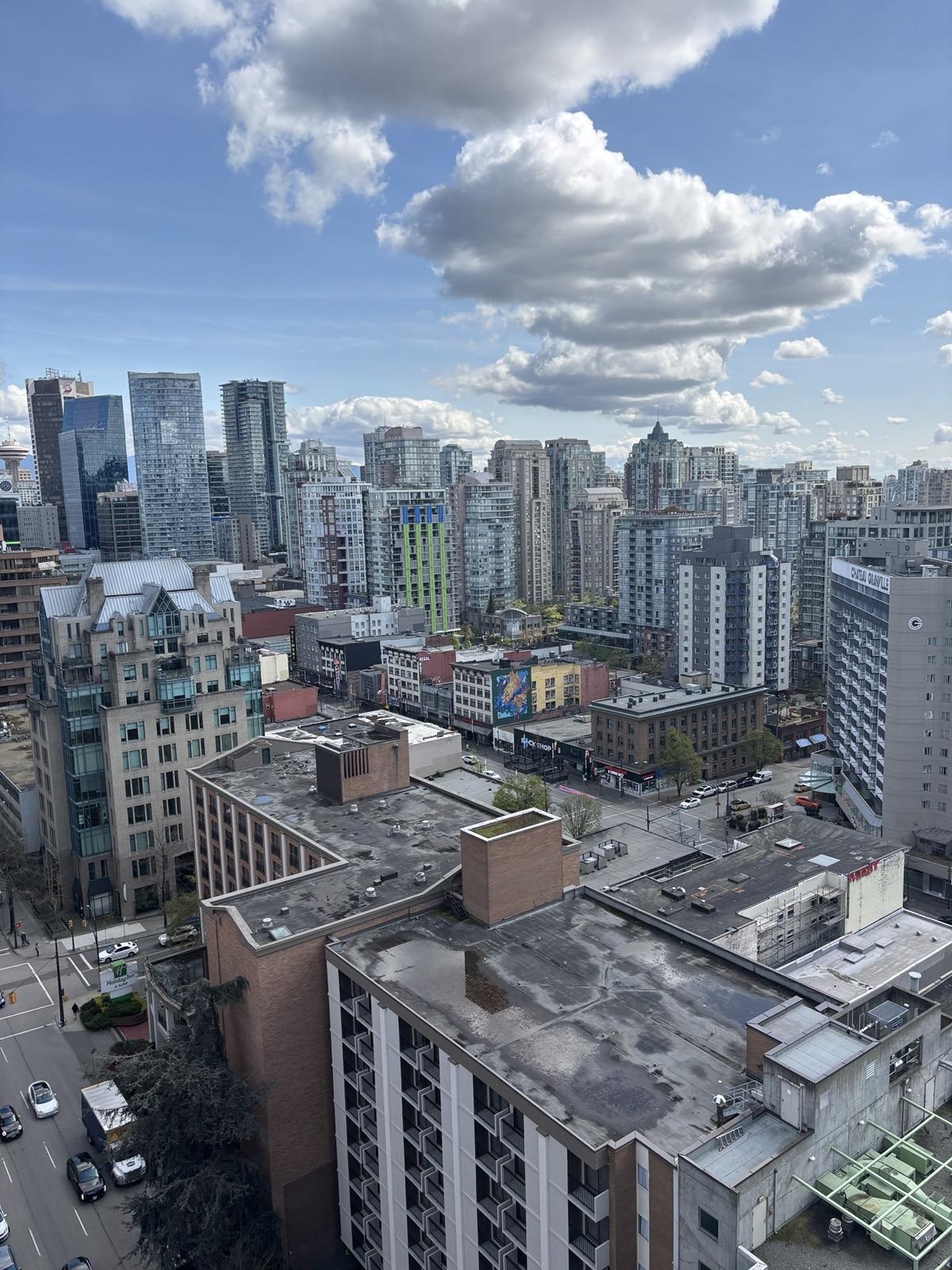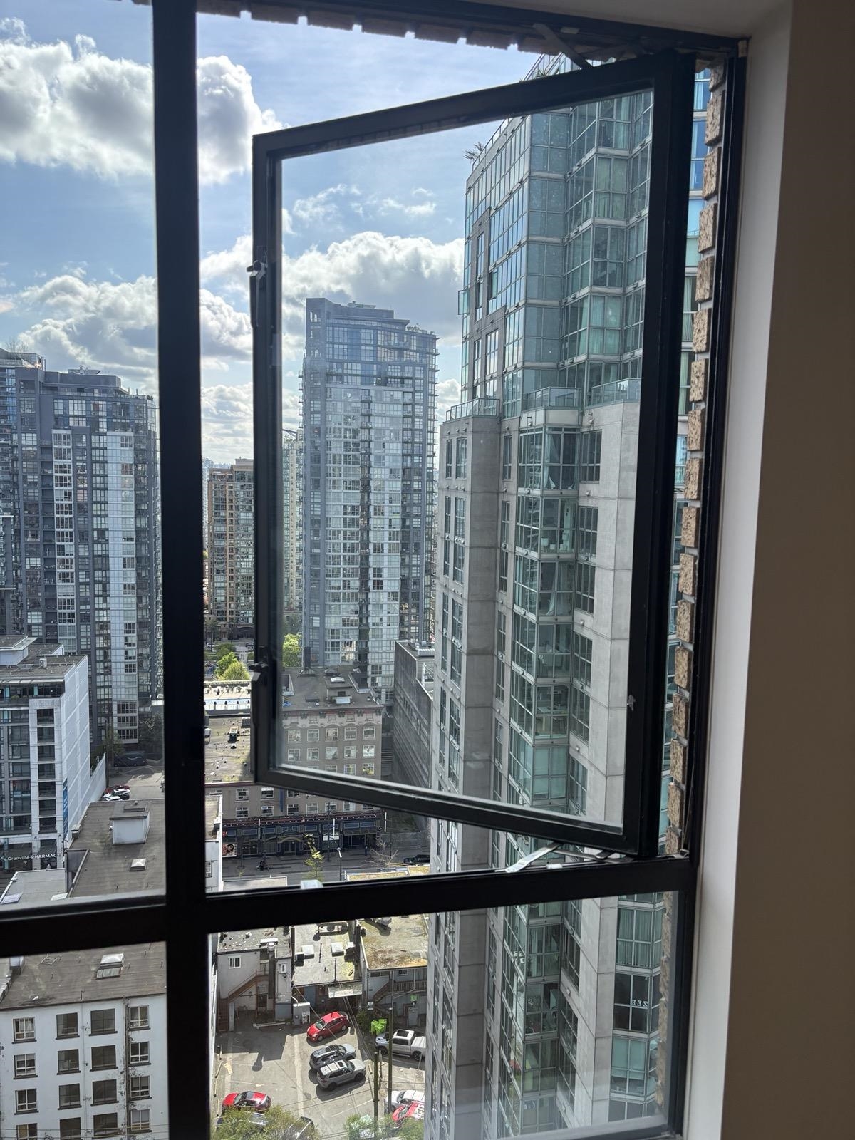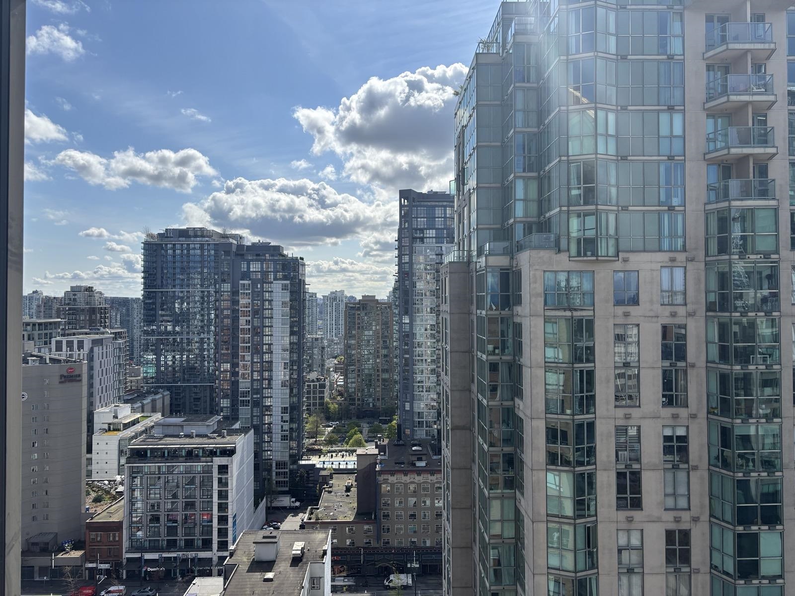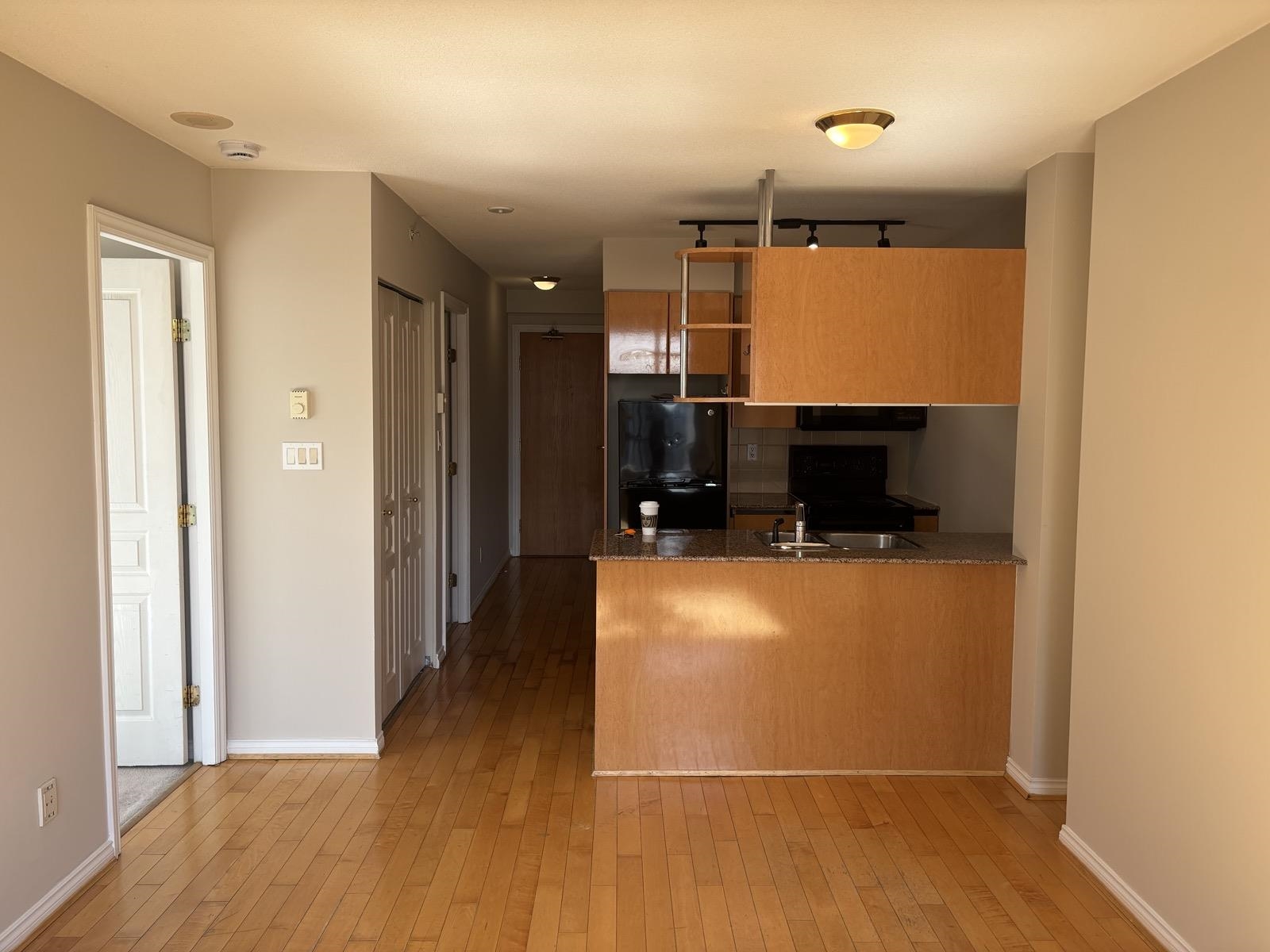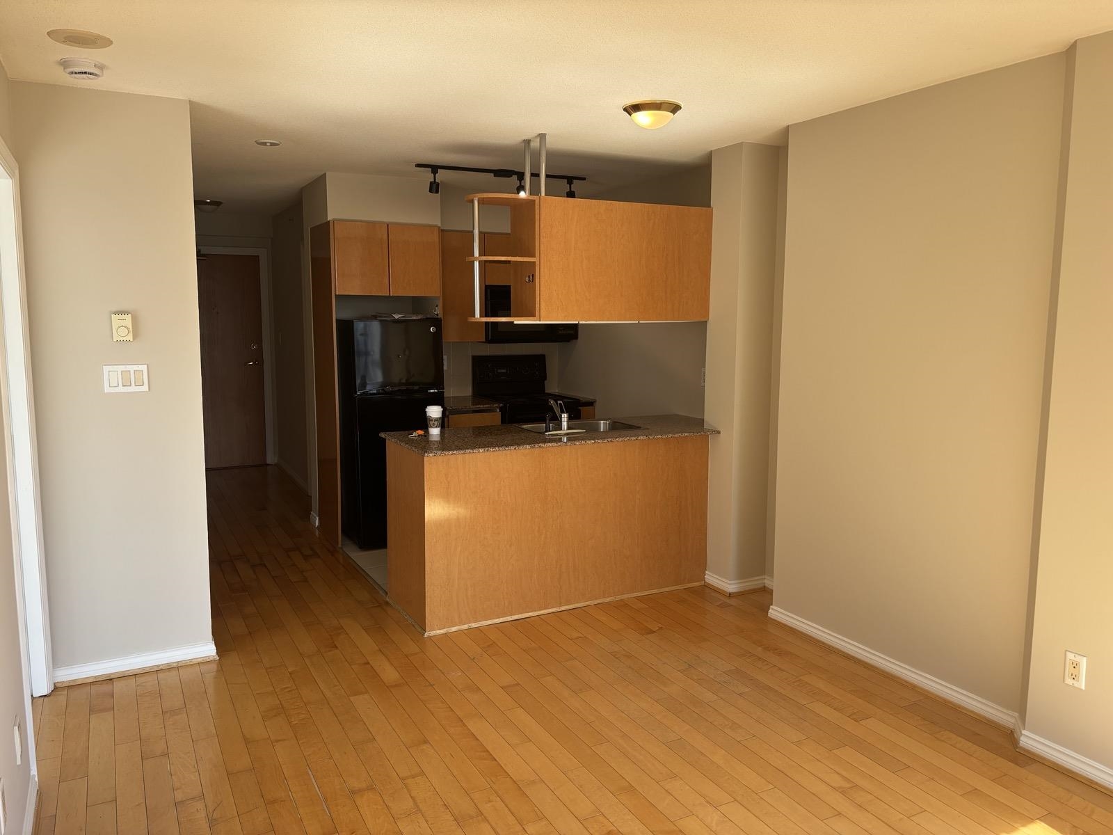 1 bed + den, 1 bath condo with a simple, functional layout and good natural light. Nice city views and a small balcony. Kitchen is open-concept with full appliances (fridge, stove, microwave, dishwasher). In-suite washer and dryer included. Den works well as a home office or extra space. • 1 parking stall included • No pets • No smoking