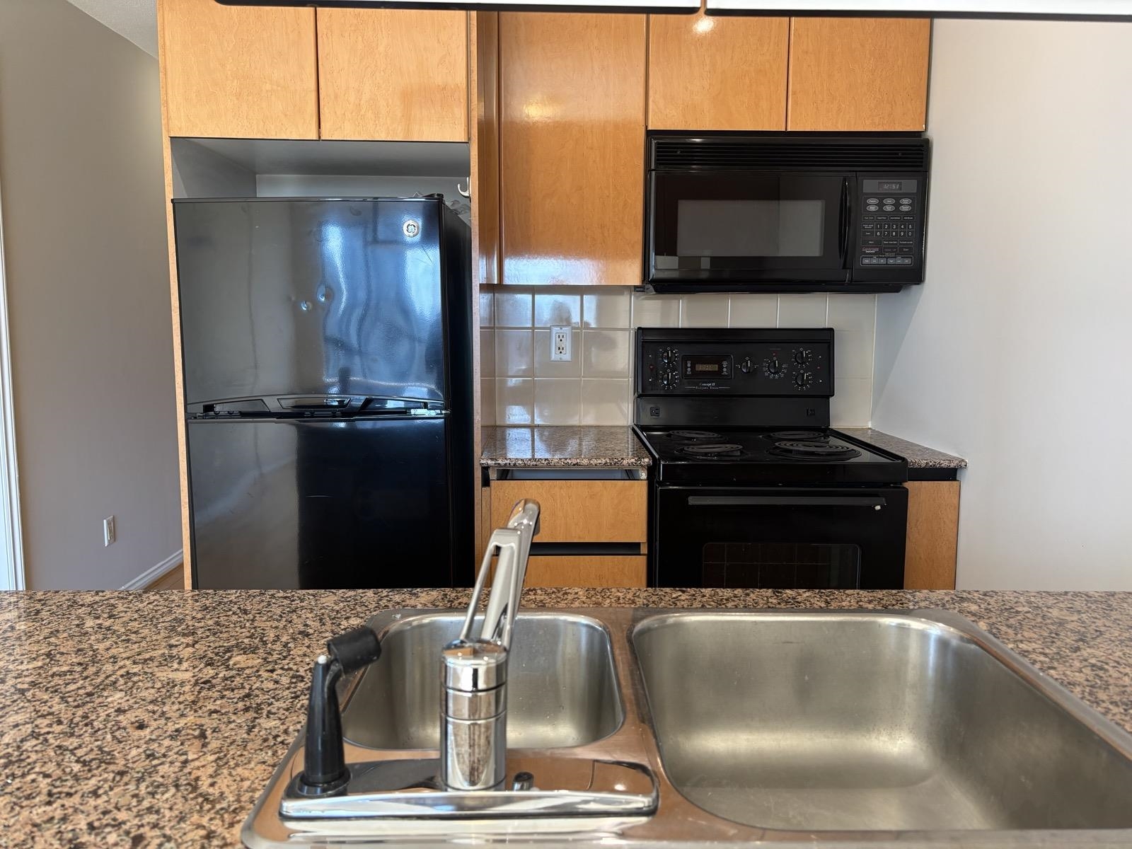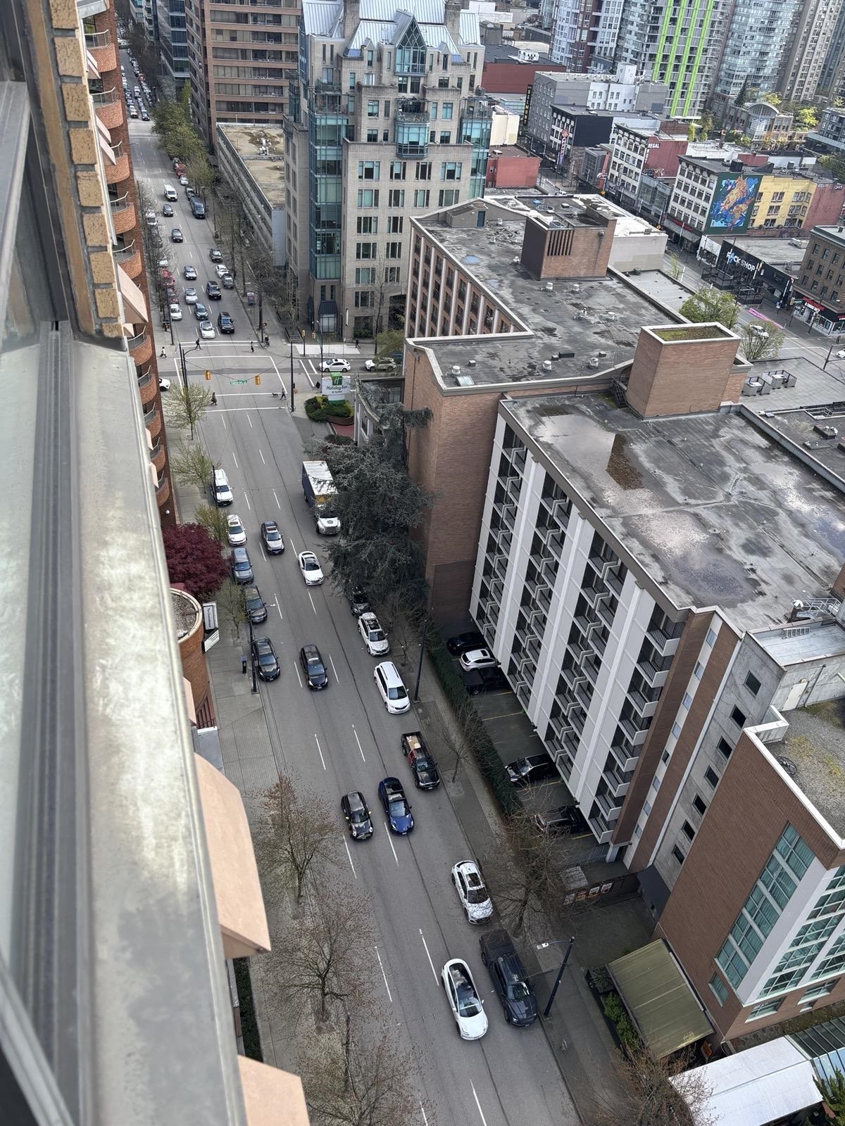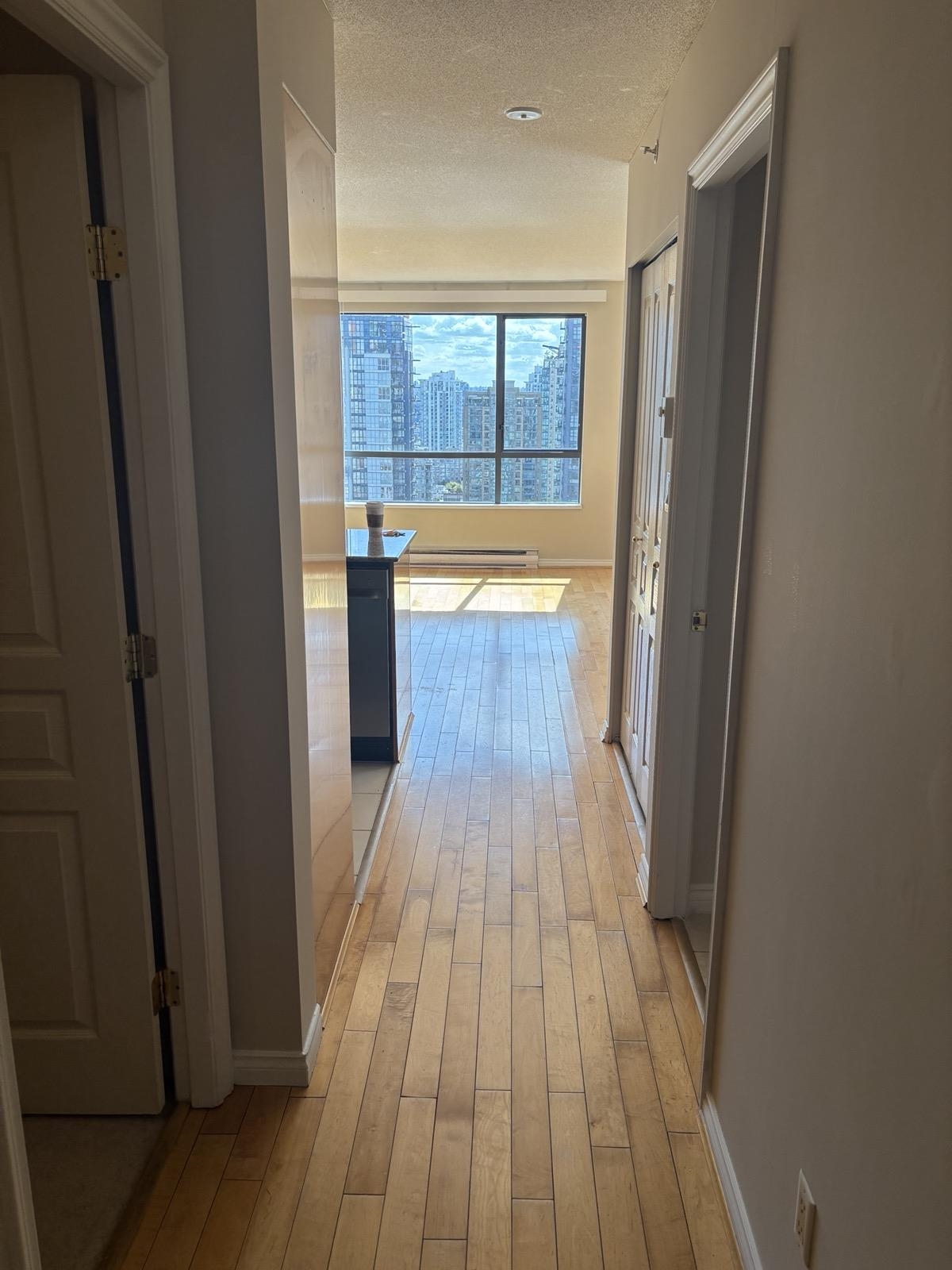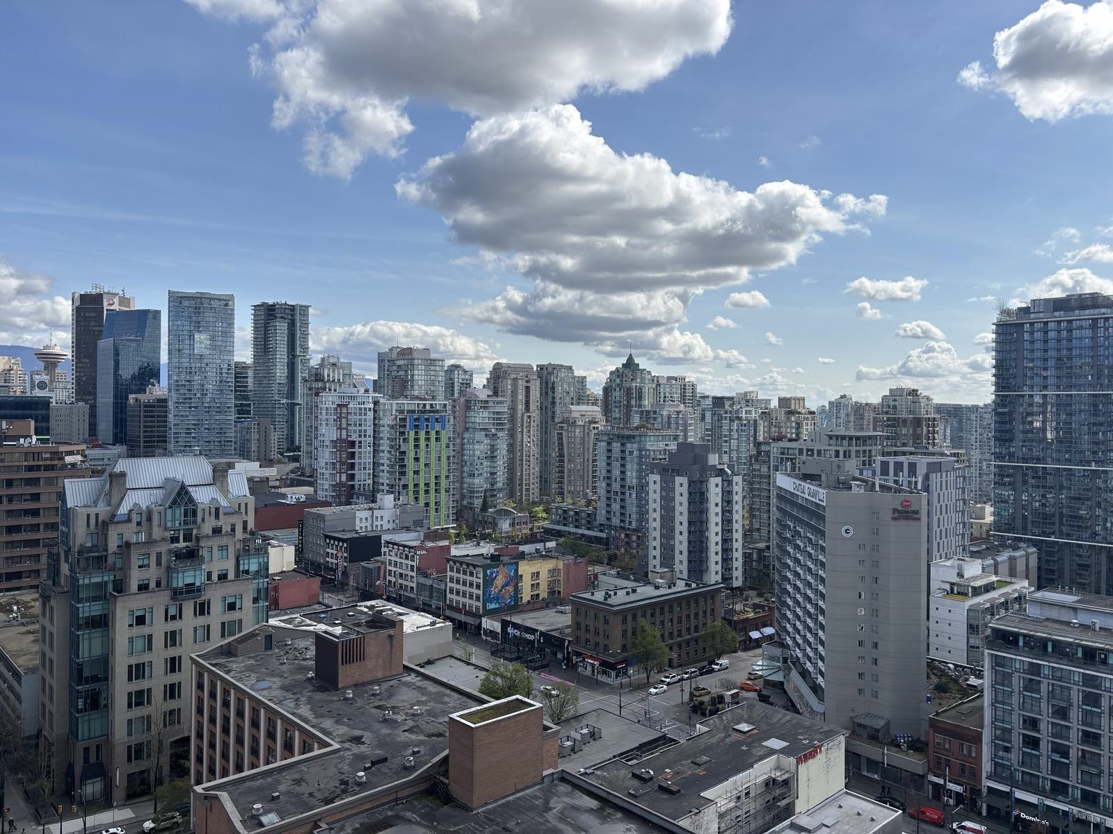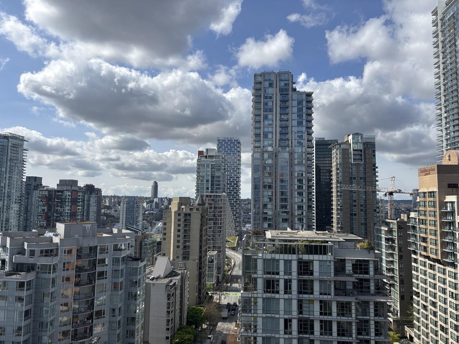 1 bed + den, 1 bath condo with a simple, functional layout and good natural light. Nice city views and a small balcony. Kitchen is open-concept with full appliances (fridge, stove, microwave, dishwasher). In-suite washer and dryer included. Den works well as a home office or extra space. • 1 parking stall included • No pets • No smoking